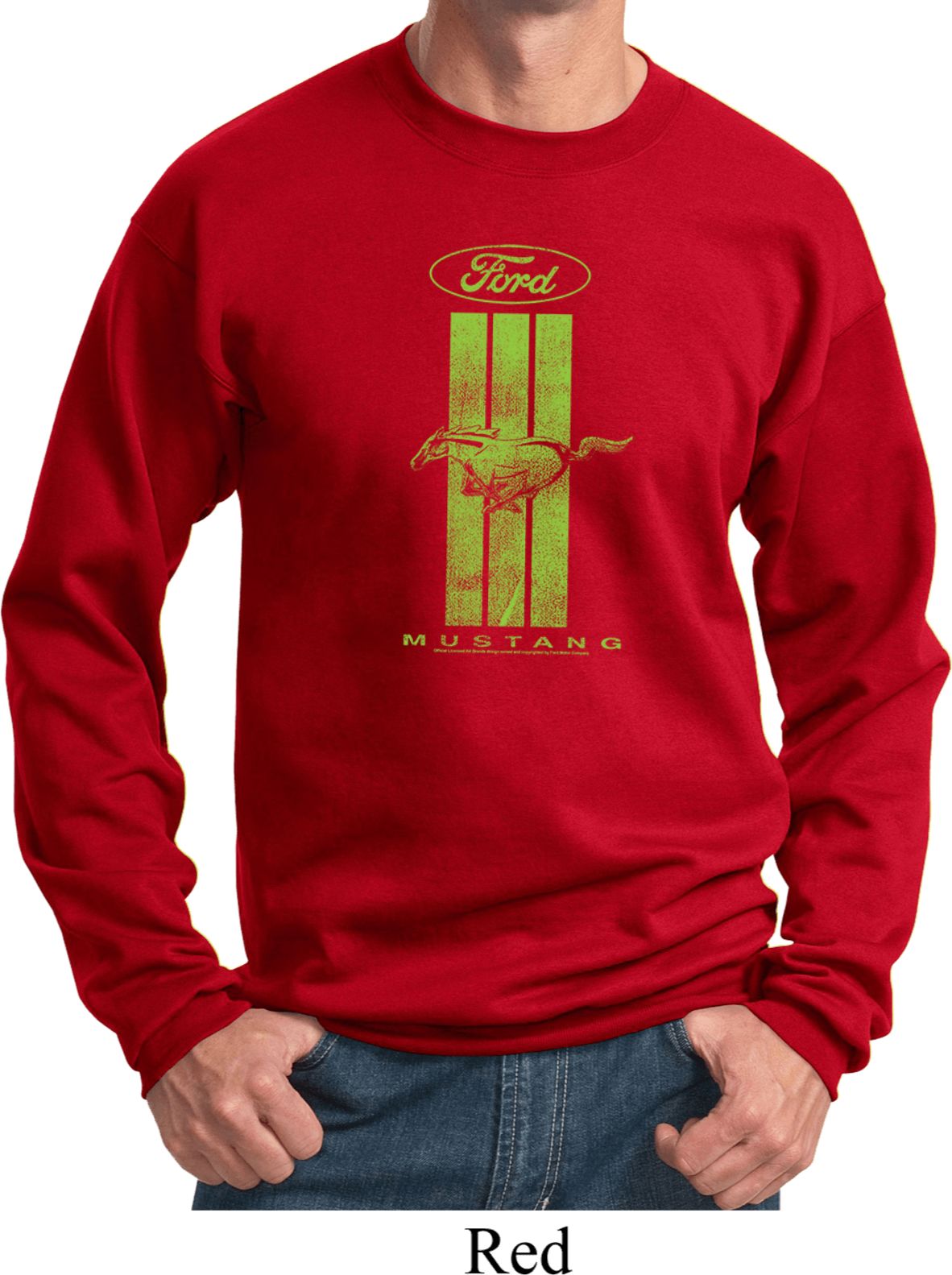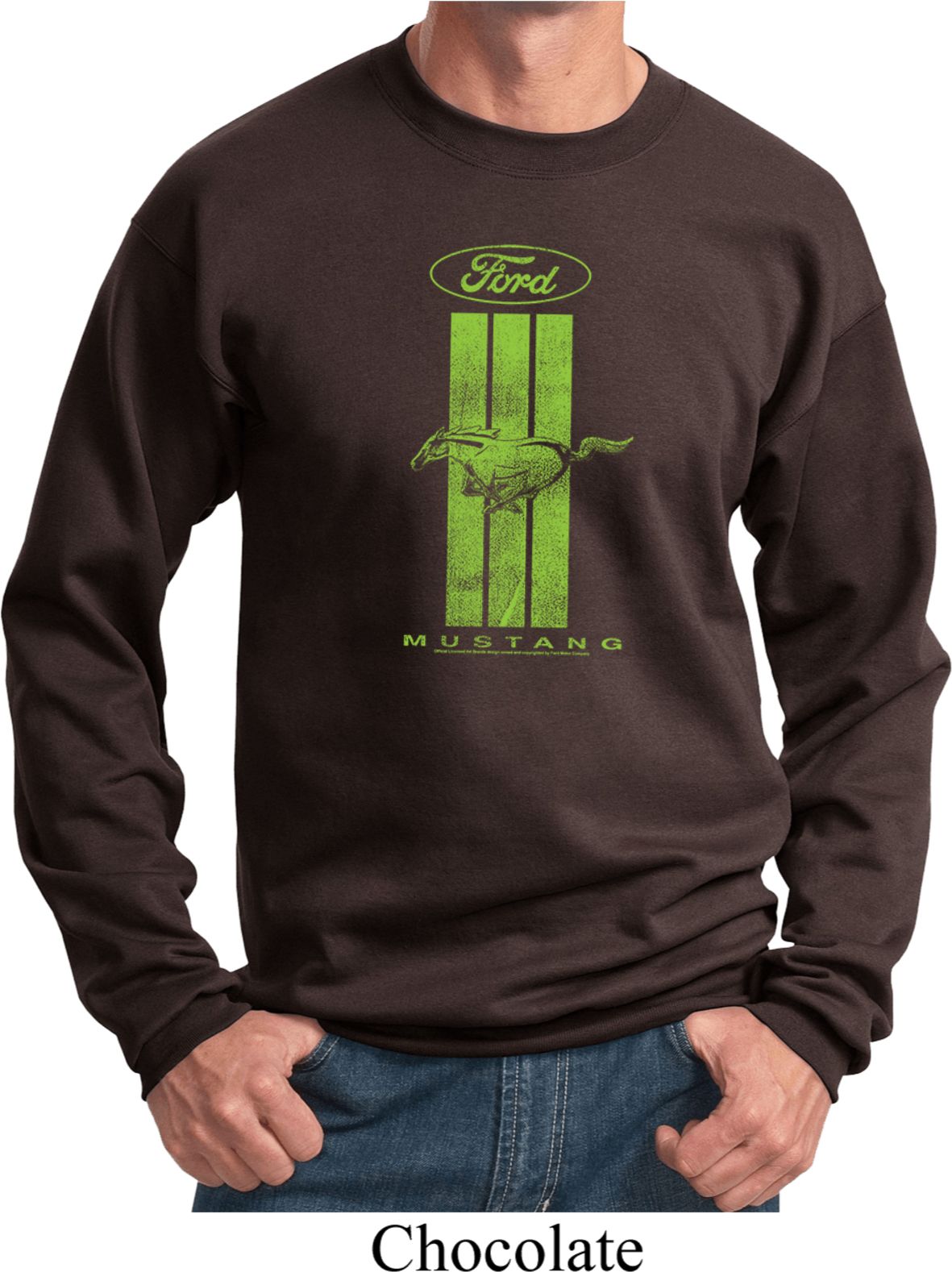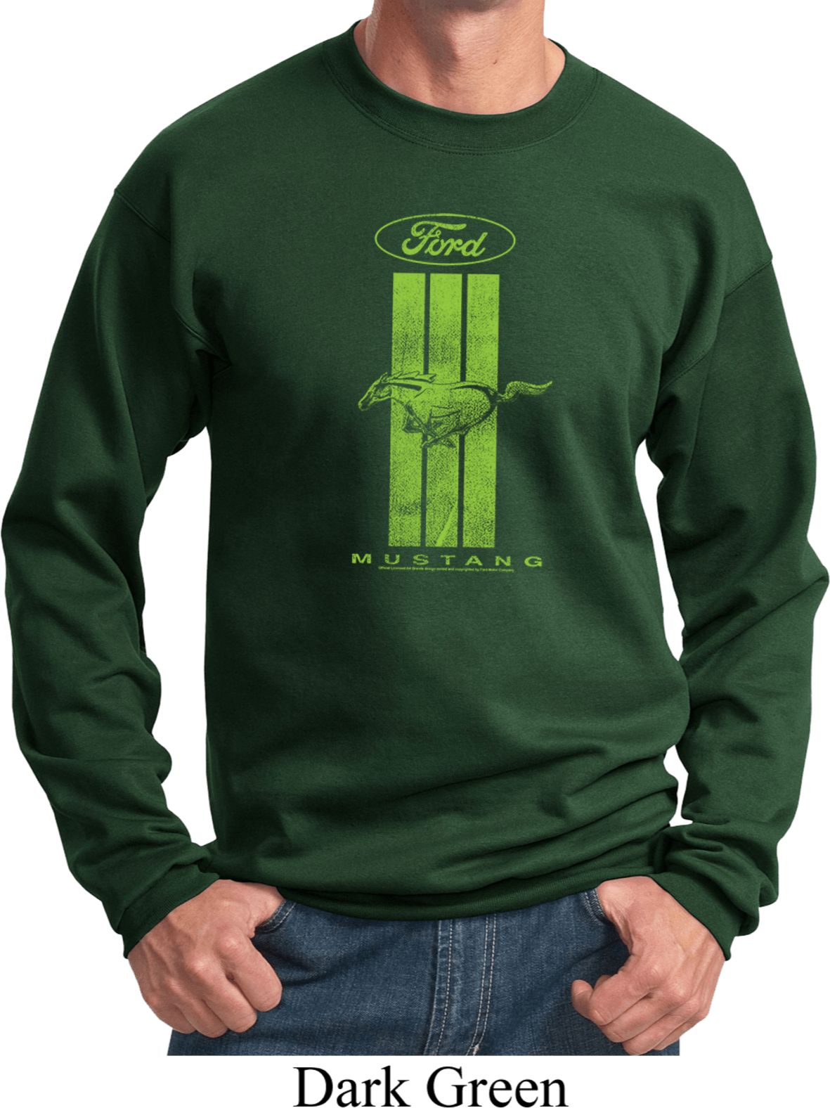| | Ford Sweatshirt Green Mustang Stripe Sweat ShirtA mens sweatshirt featuring a green Ford Mustang Stripe. Our mens sweatshirt is made with a blend of cotton/poly. A perfect gift for all who drive Ford Mustangs! Available in sizes Small through 4XL. Machine wash cold with like colors; dry low heat. ![]() |