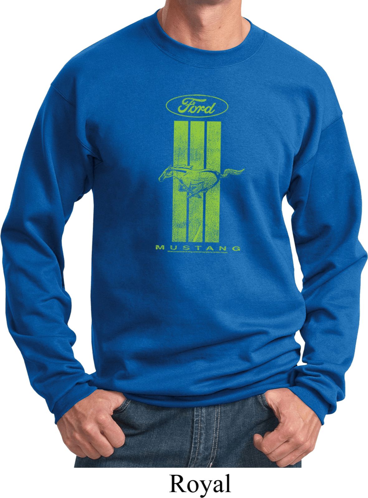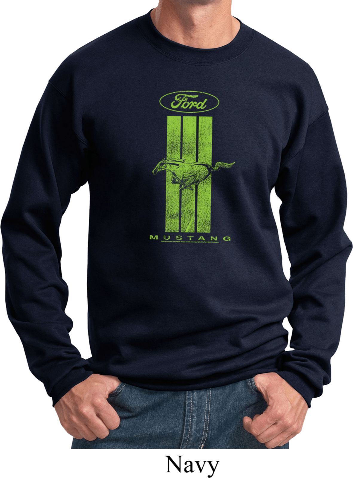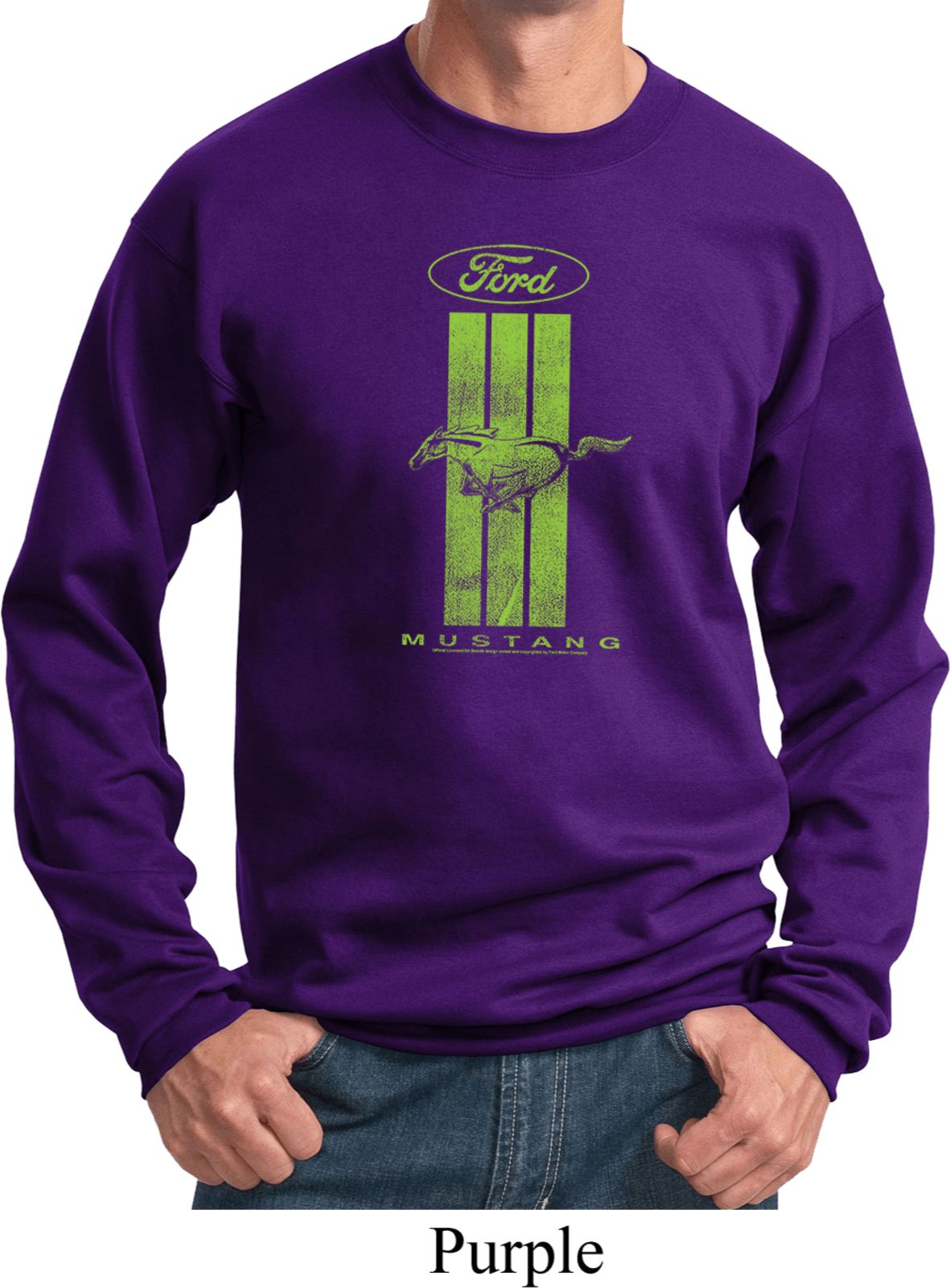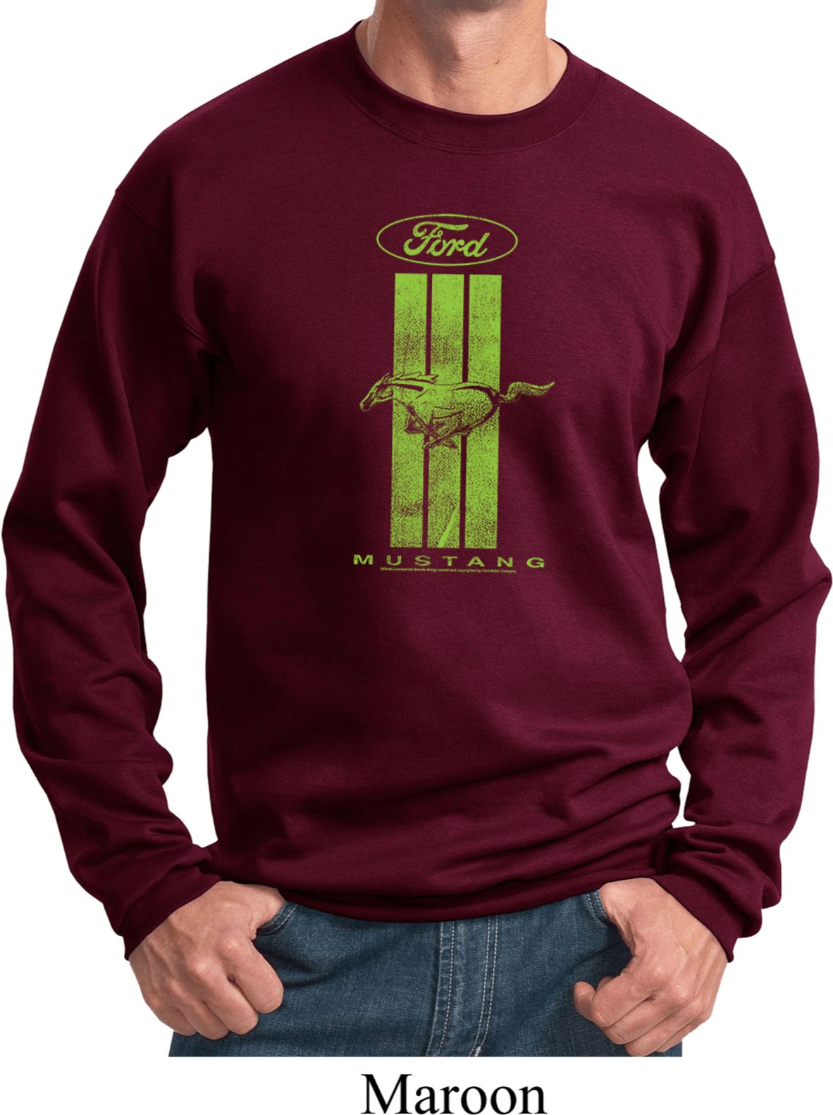 | | Ford Sweatshirt Green Mustang Stripe Sweat ShirtA mens sweatshirt featuring a green Ford Mustang Stripe. Our mens sweatshirt is made with a blend of cotton/poly. A perfect gift for all who drive Ford Mustangs! Available in sizes Small through 4XL. Machine wash cold with like colors; dry low heat. ![]() |