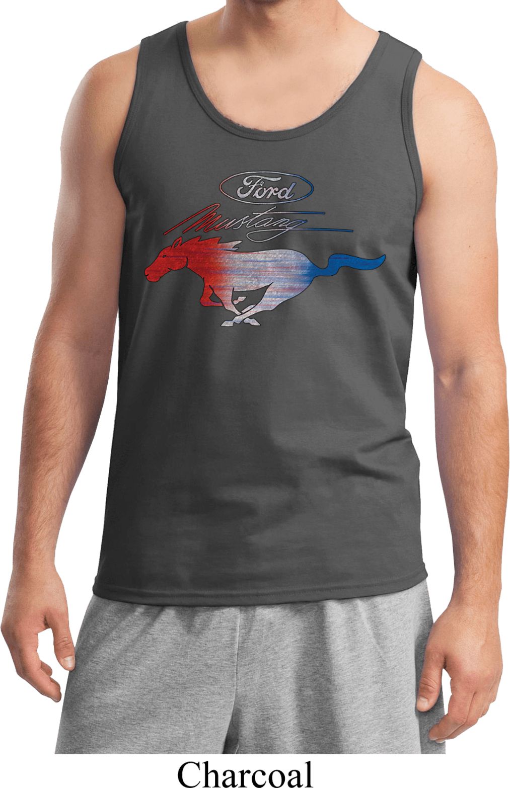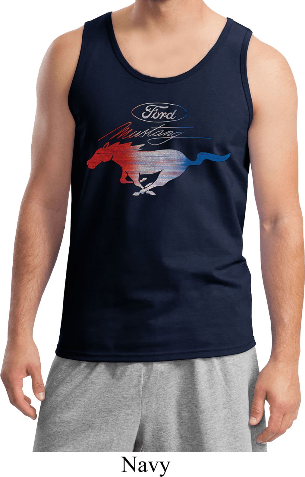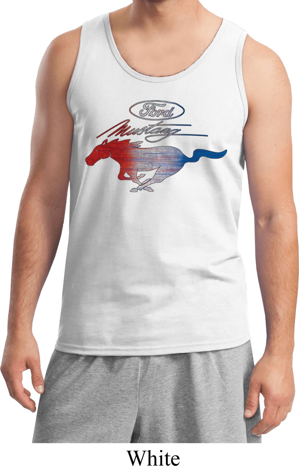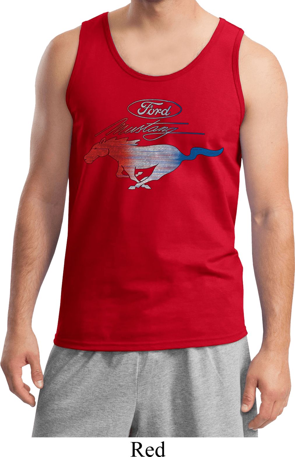 | | Ford Tank Top Mustang Red White and Blue TanktopA mens tanktop featuring a distressed Ford Mustang Logo in red, white, and blue. Our mens tank top is made of 100% cotton. (Ash and Sports Grey are made with a blend of cotton/poly) A perfect gift for all Ford Car Enthusiasts! Available in sizes Small through 2XL. Machine wash cold with like colors; dry low heat. ![]() |