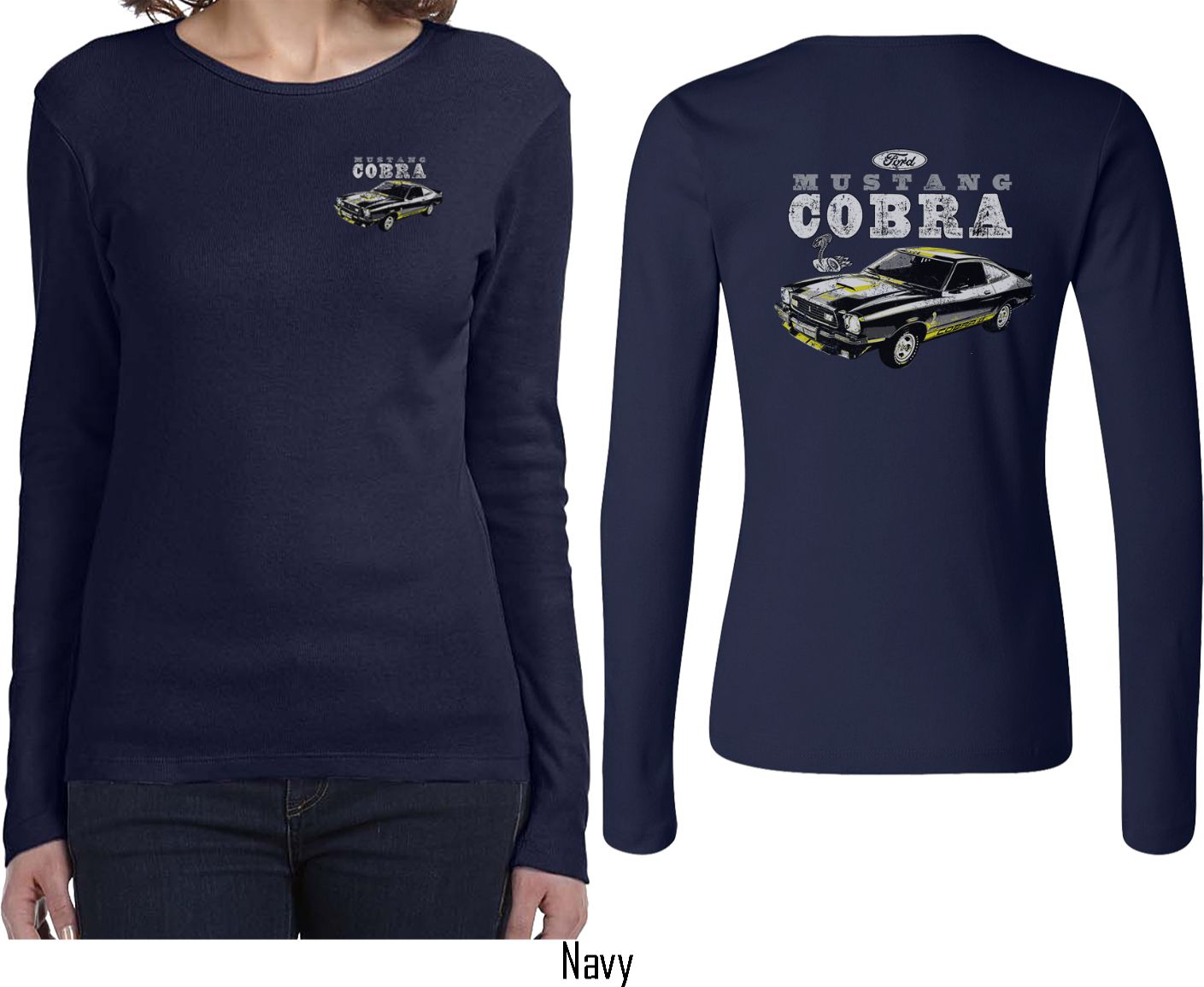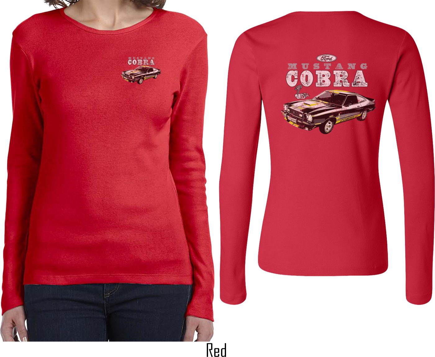 | | Ford Tee 1974 Cobra Profile (Front & Back) Ladies Long SleeveA ladies long sleeve featuring a vintage 1974 Ford Cobra on the front and back. This cool tee makes an awesome gift for Ford car enthusiasts! Our ladies shirt is made of 100% cotton. Available in sizes Small through 2XL. Machine wash cold with like colors; dry low heat. ![]() |