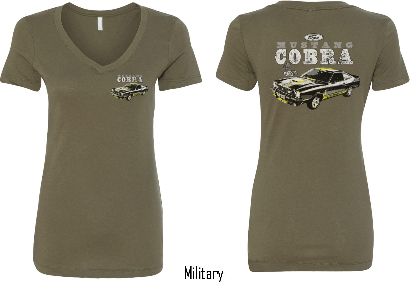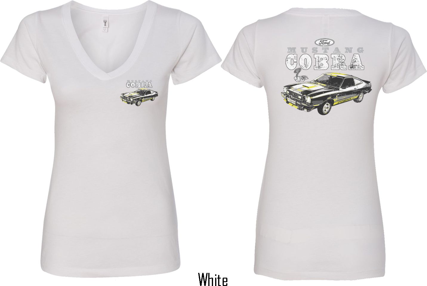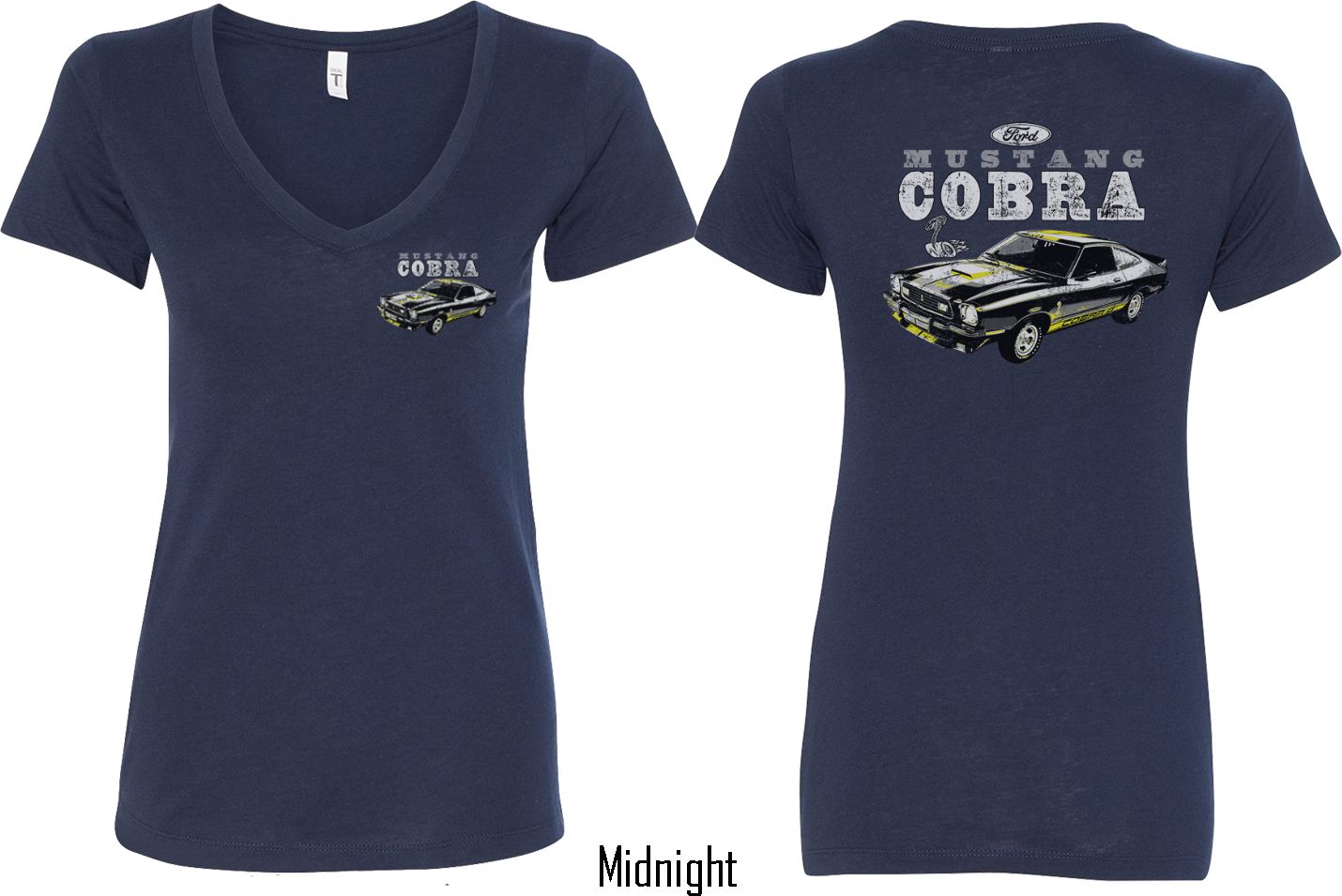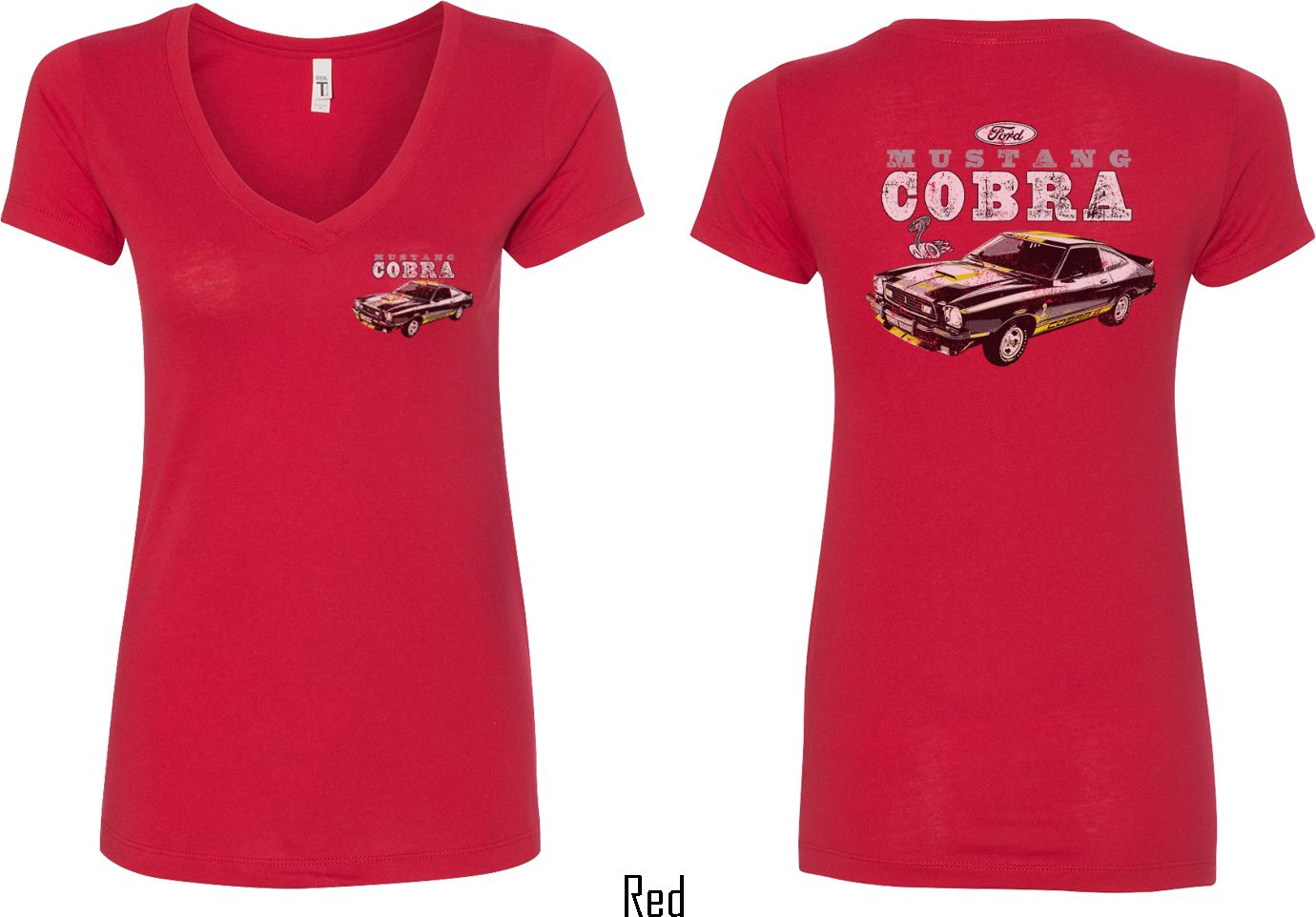 | | Ford Tee 1974 Cobra Profile (Front & Back) Ladies V-neckA fitted ladies v-neck featuring a vintage 1974 Ford Cobra on the front and back. This cool tee makes an awesome gift for Ford car enthusiasts! Our ladies shirt is made with a blend of cotton/poly. Available in sizes Small through 2XL. Machine wash cold with like colors; dry low heat. ![]() |