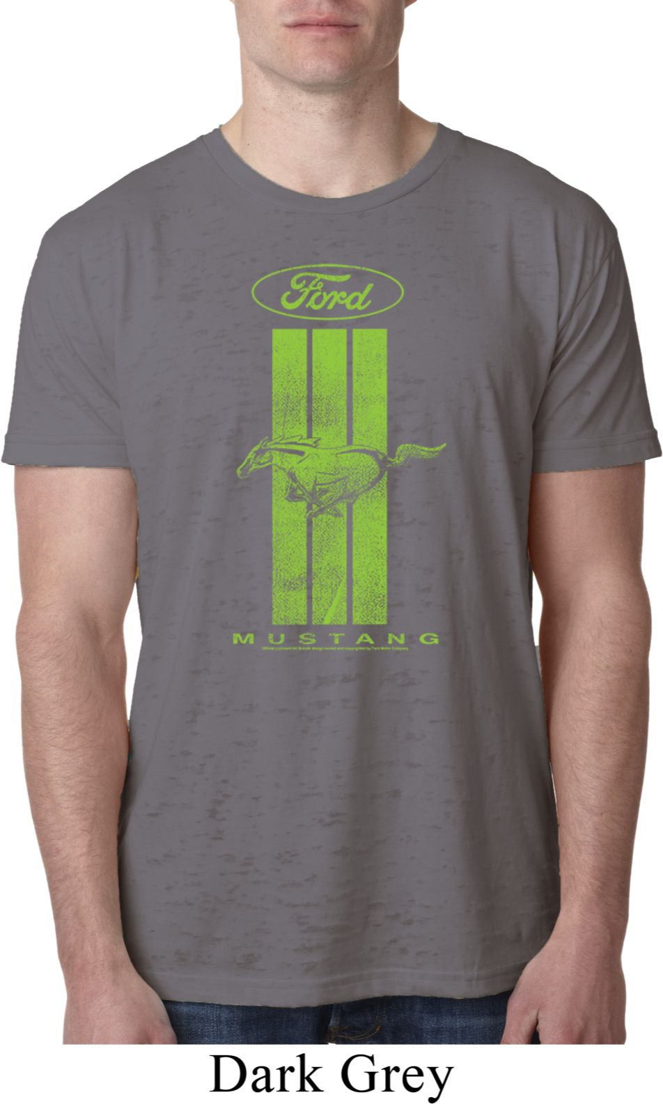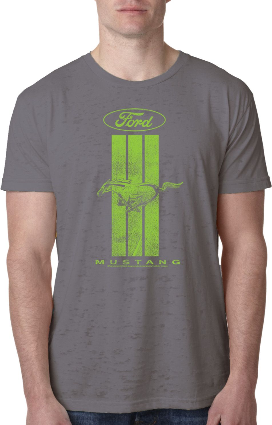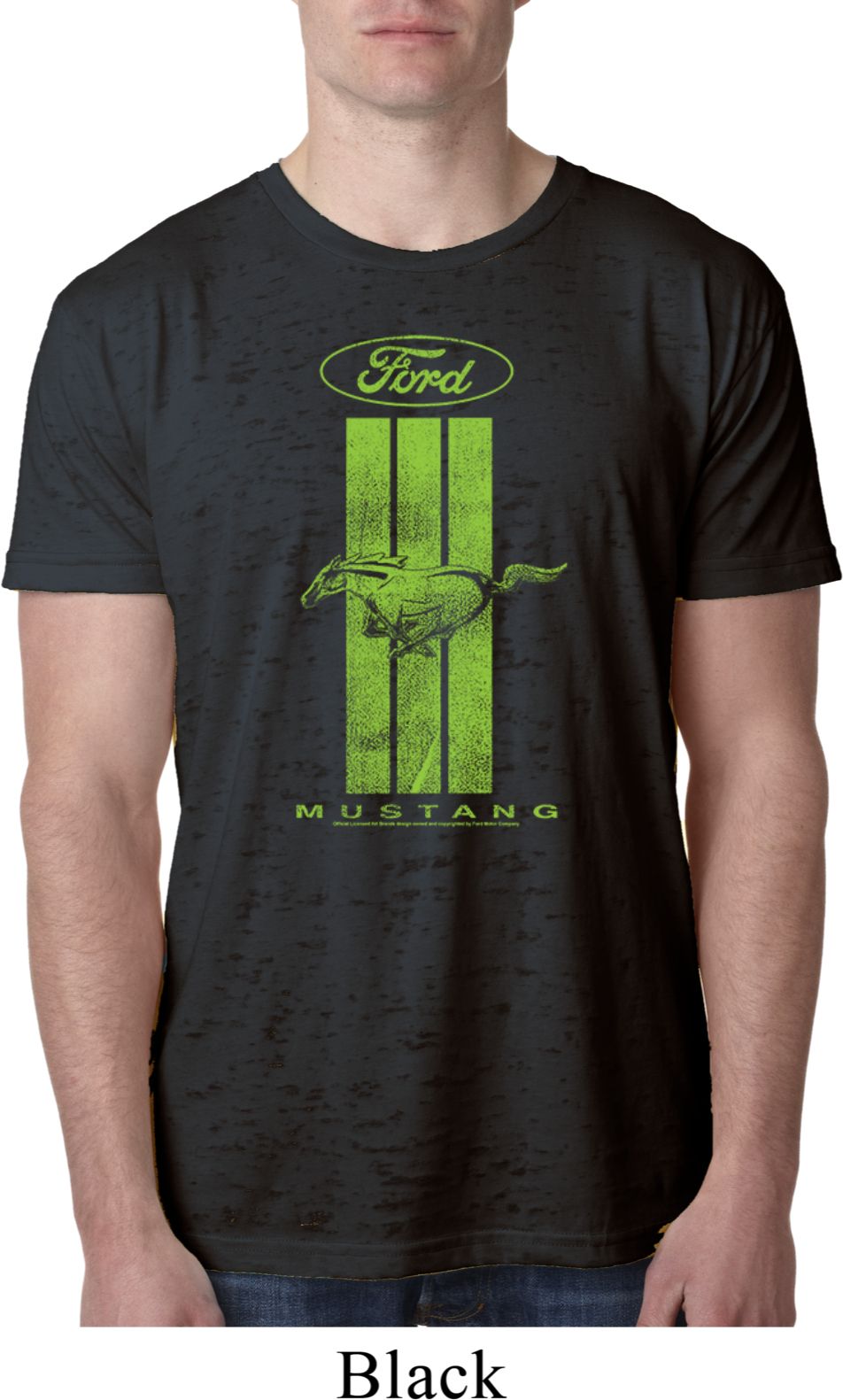 | | Ford Tee Green Mustang Stripe Burnout ShirtA mens burnout tee featuring a green Ford Mustang Stripe. Our mens shirt is made with a blend of cotton/poly. A perfect gift for all who drive Ford Mustangs! Available in sizes Small through 2XL. Machine wash cold with like colors; dry low heat. ![]() |