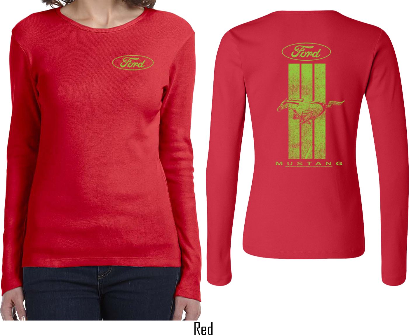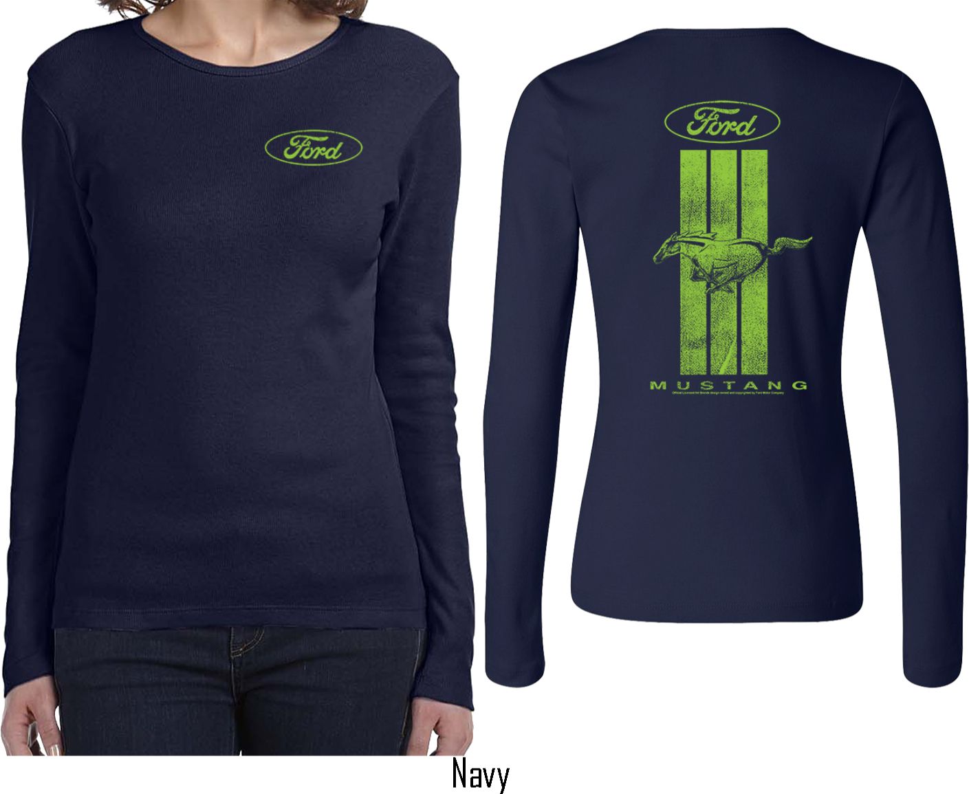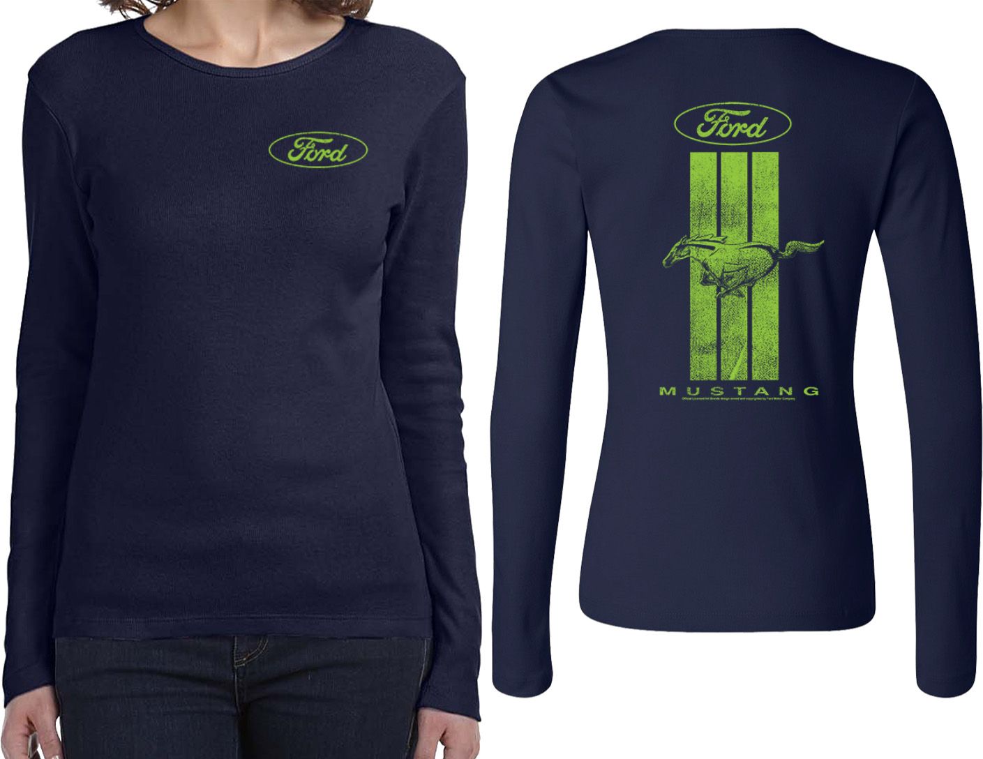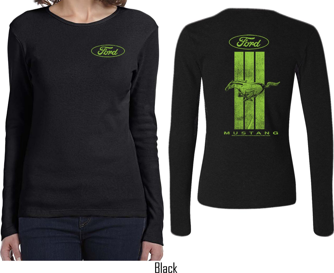 | | Ford Tee Green Mustang Stripe (Front & Back) Ladies Long SleeveA ladies long sleeve featuring a green Ford Logo on the front and a green Ford Mustang Stripe on the back. This cool tee makes an awesome gift for all Ford Mustang enthusiasts! Our ladies shirt is made of 100% cotton. Available in sizes Small through 2XL. Machine wash cold with like colors; dry low heat. ![]() |