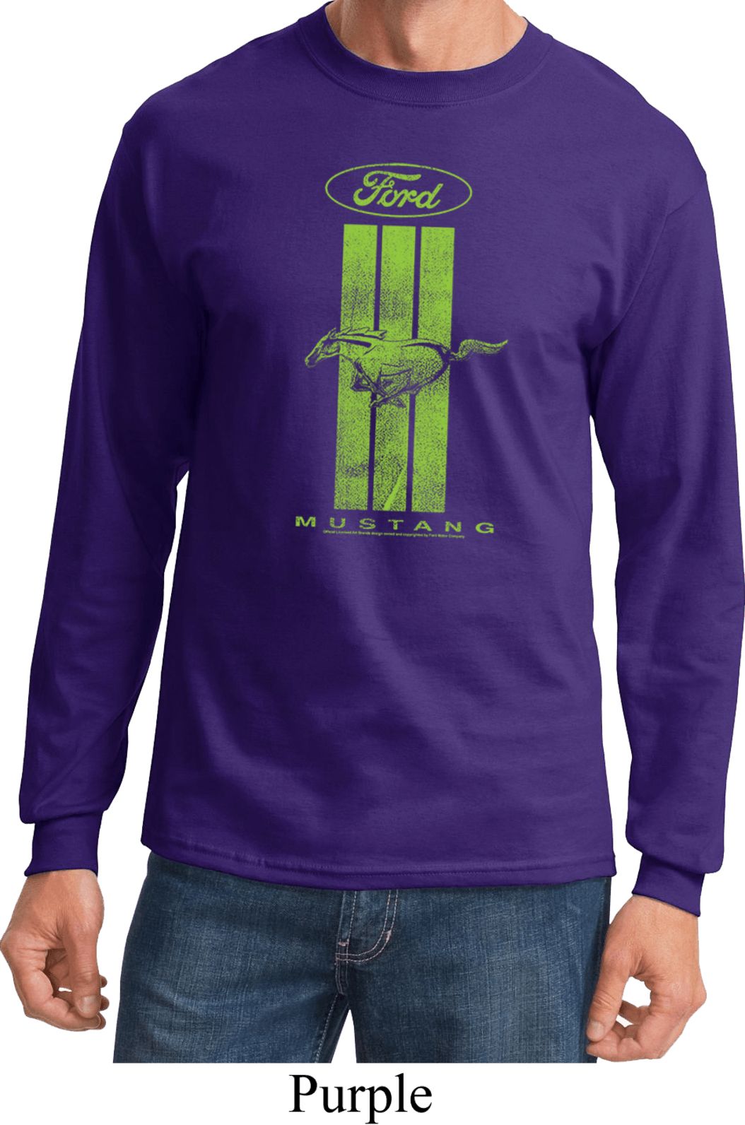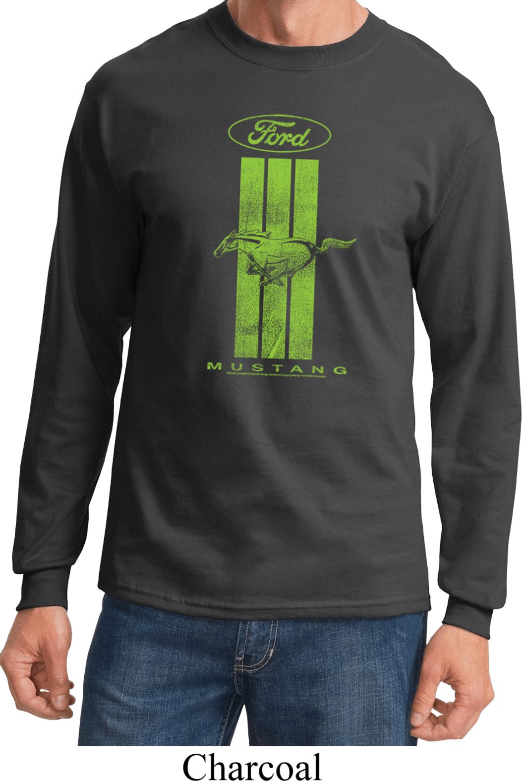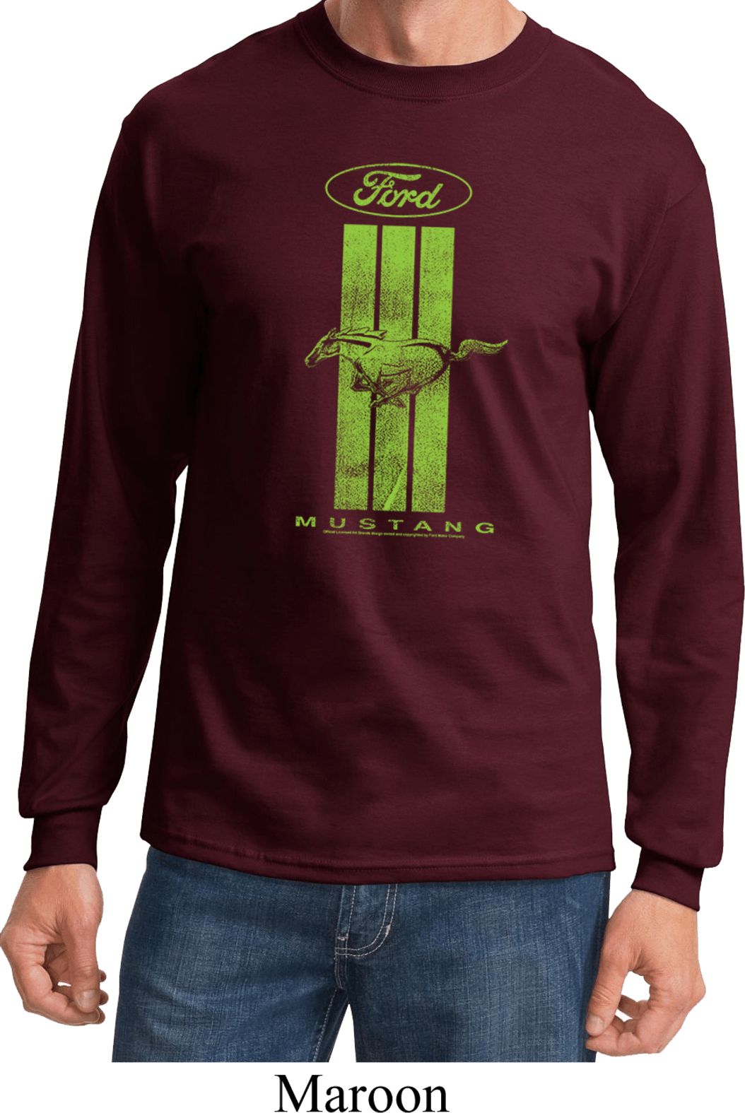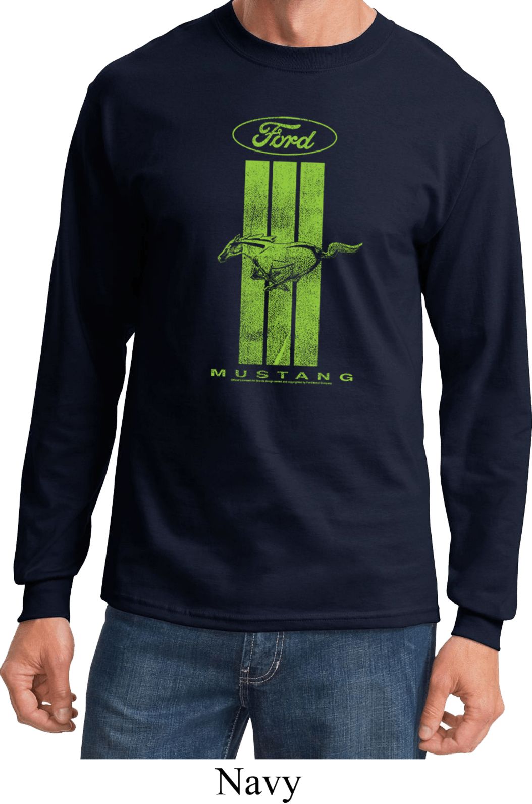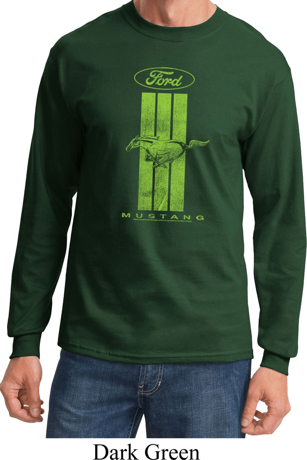 | | Ford Tee Green Mustang Stripe Long SleeveA mens long sleeve featuring a green Ford Mustang Stripe. Our mens tee is made of 100% cotton. (Ash and Athletic Heather are made with a blend of cotton/poly) A perfect gift for all who drive Ford Mustangs! Available in sizes Small through 4XL. Machine wash cold with like colors; dry low heat. ![]() |