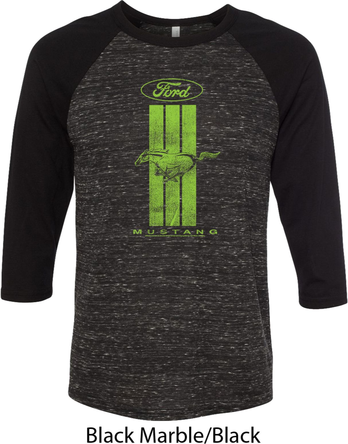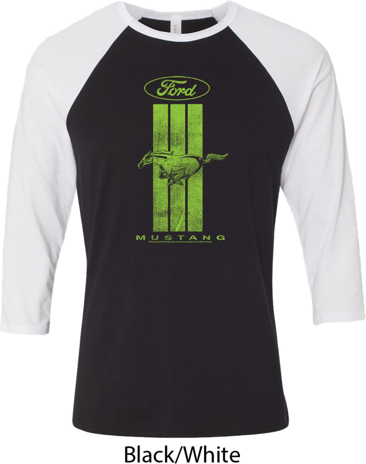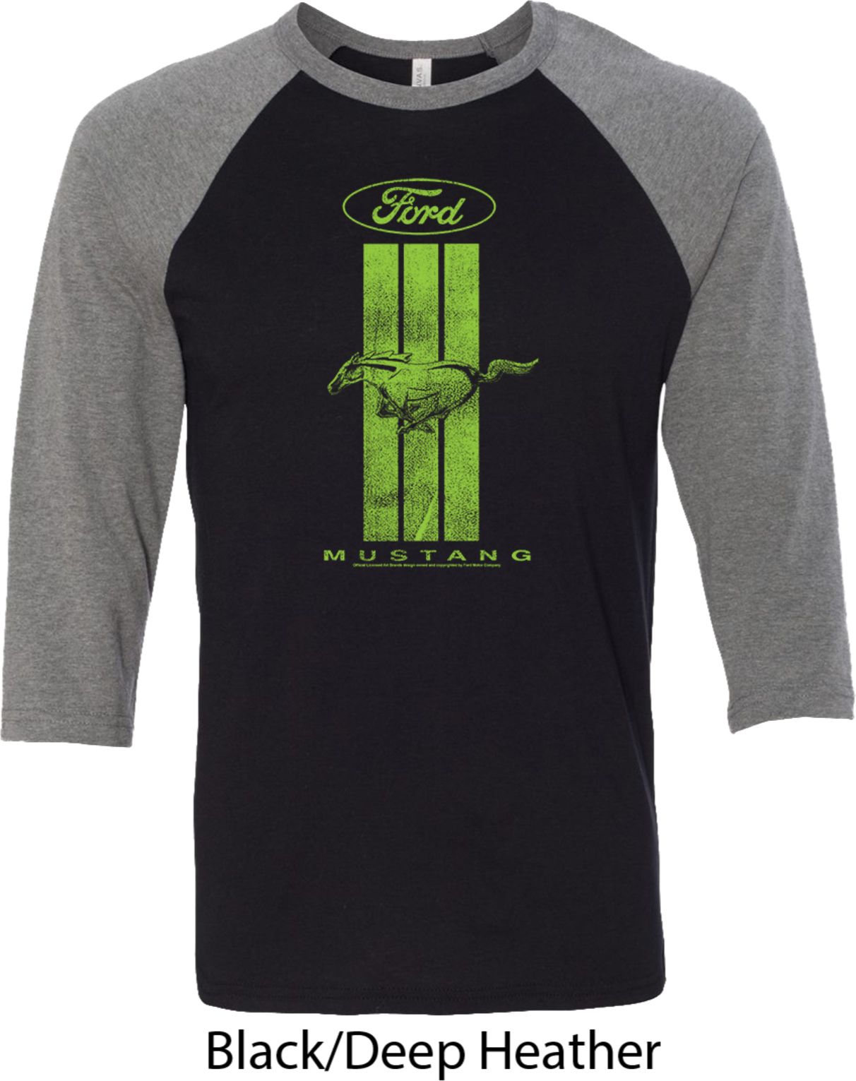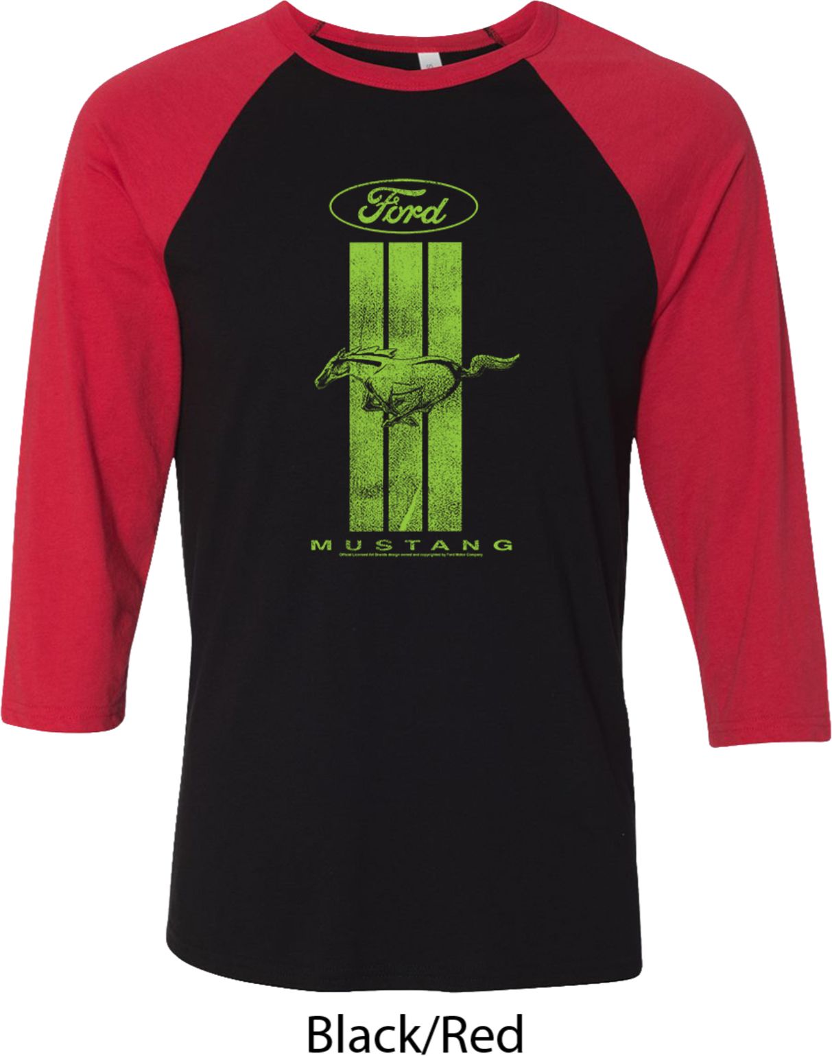 | | Ford Tee Green Mustang Stripe Raglan ShirtA mens 3/4 sleeve shirt with color block sleeves featuring a green Ford Mustang Stripe. Our mens shirt is made with a blend of cotton/poly. (Tri blends are made with a blend of cotton/poly/rayon) A perfect gift for all who drive Ford Mustangs! Available in sizes Small through 2XL. Machine wash cold with like colors; dry low heat. ![]() |