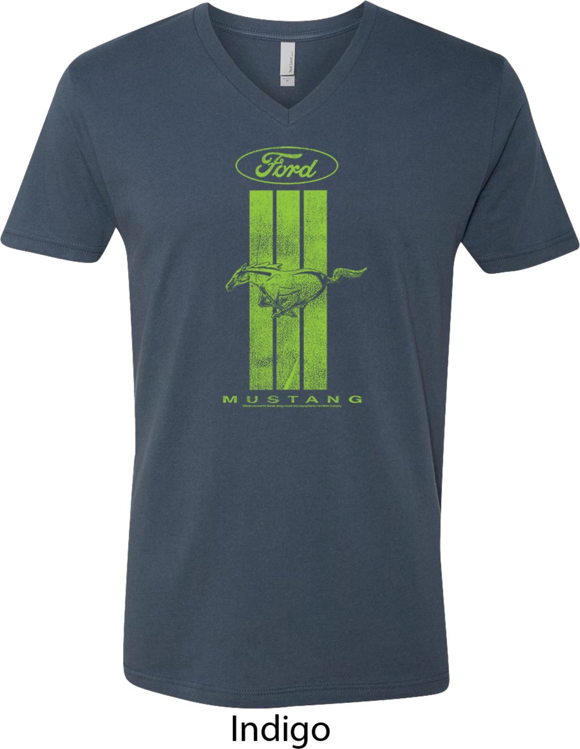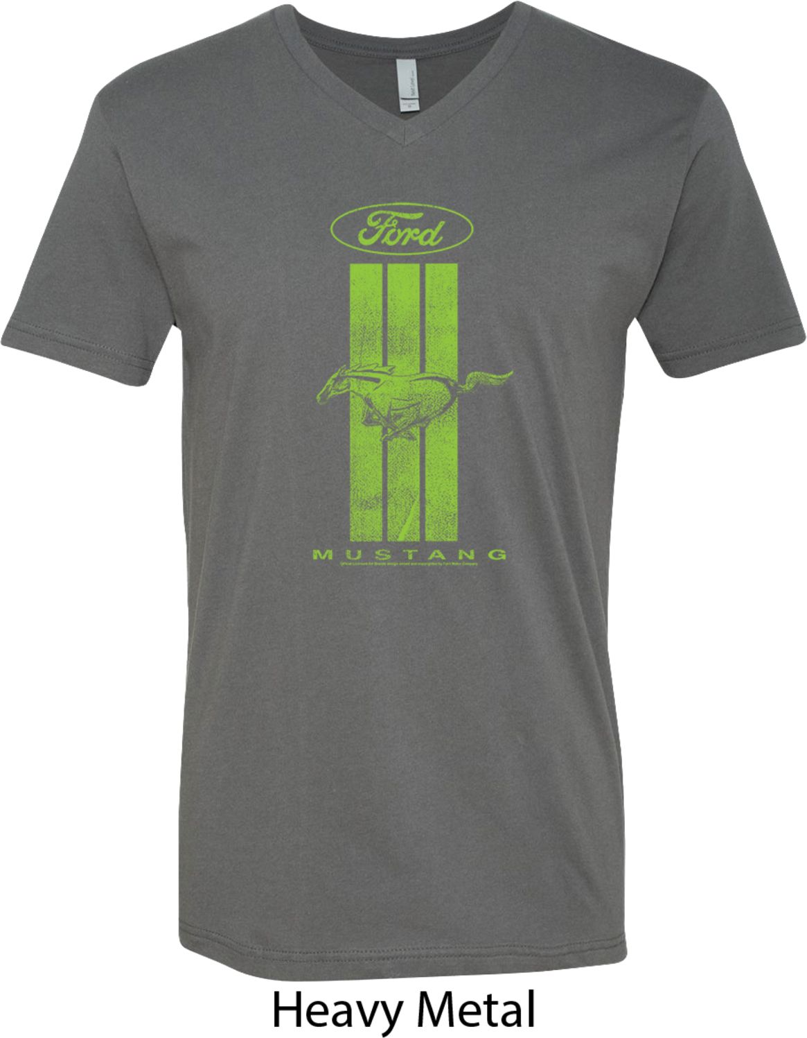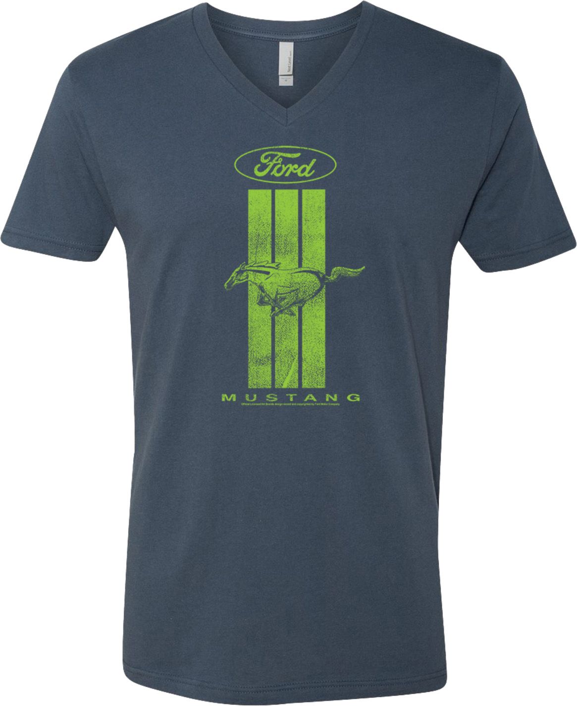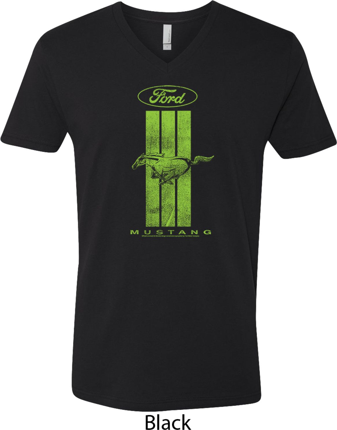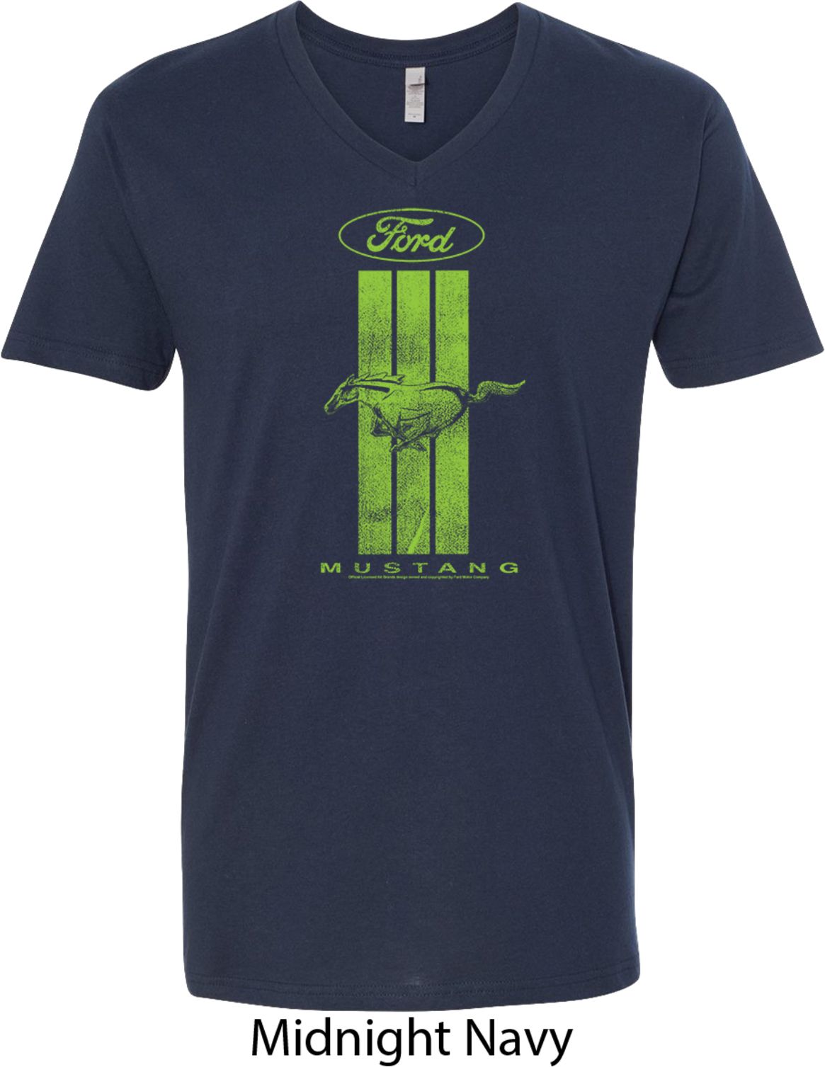 | | Ford Tee Green Mustang Stripe V-neckA mens v-neck featuring a green Ford Mustang Stripe. Our mens tee is made of 100% cotton. (Heather Grey is made with a blend of cotton/poly) A perfect gift for all who drive Ford Mustangs! Available in sizes Small through 2XL. Machine wash cold with like colors; dry low heat. ![]() |