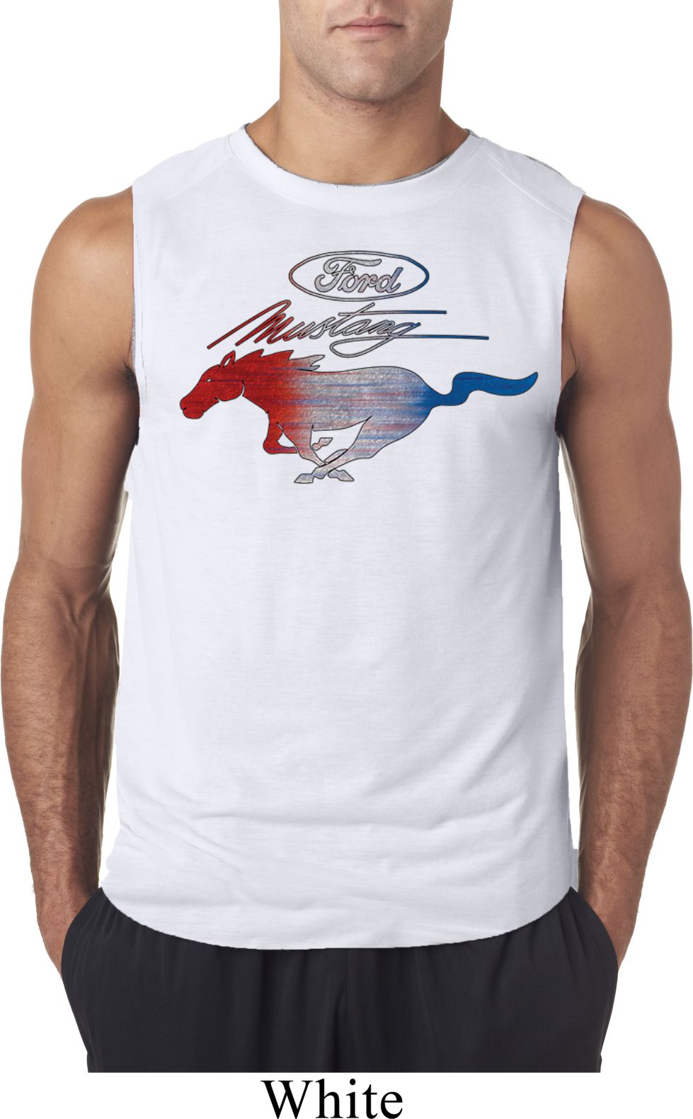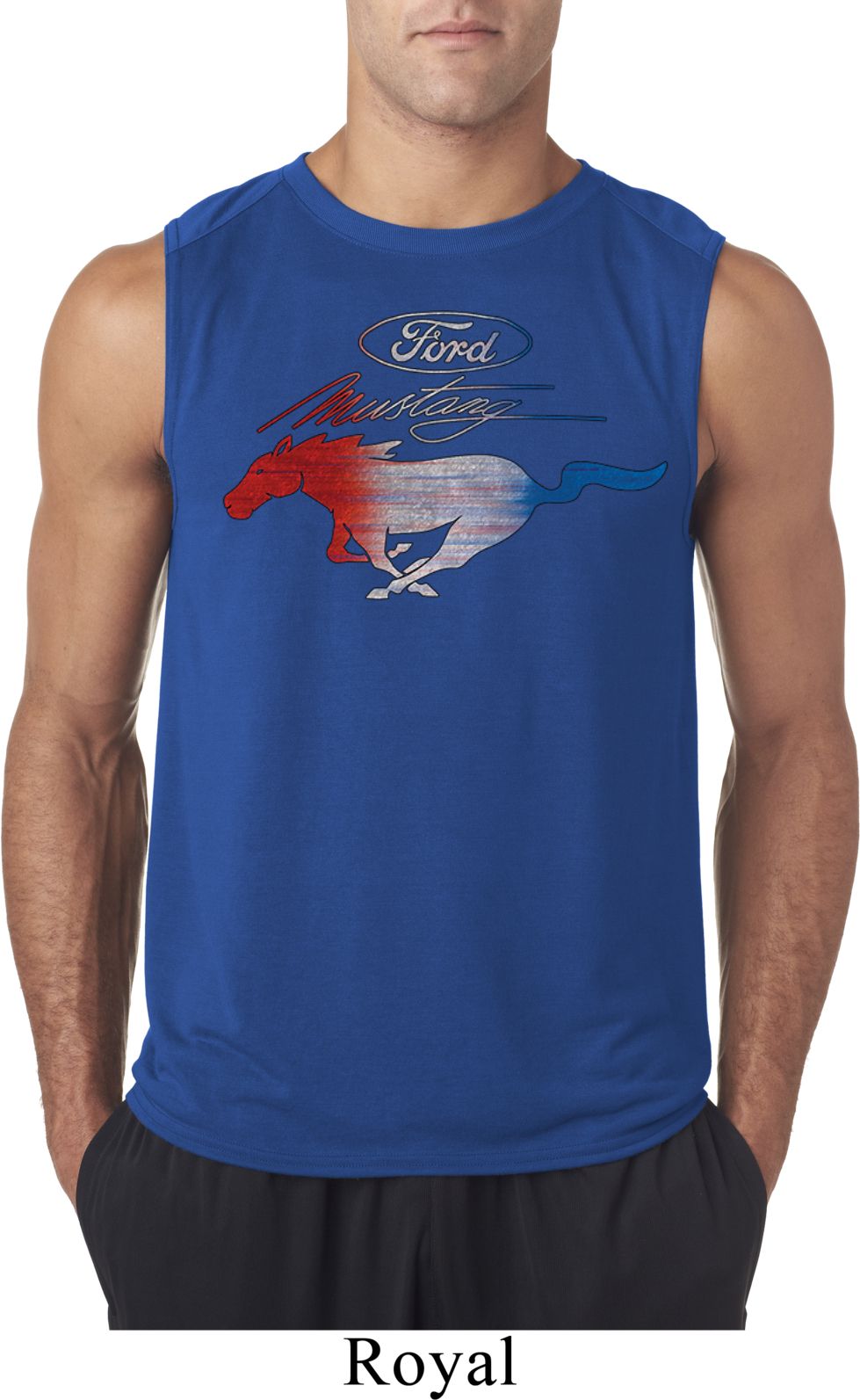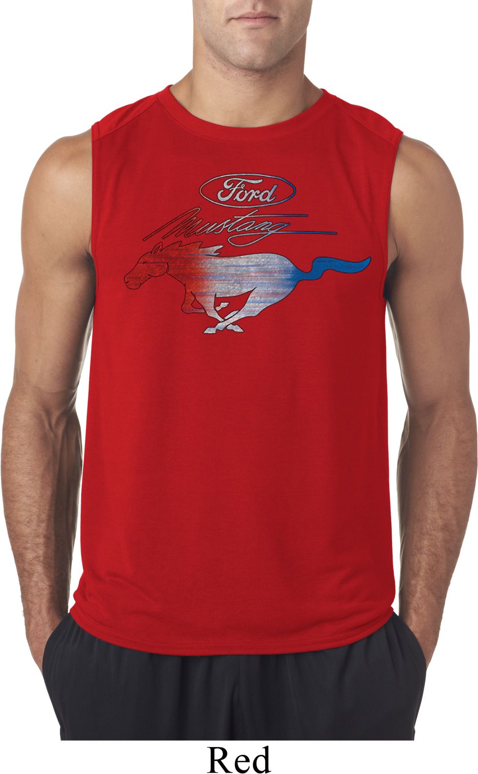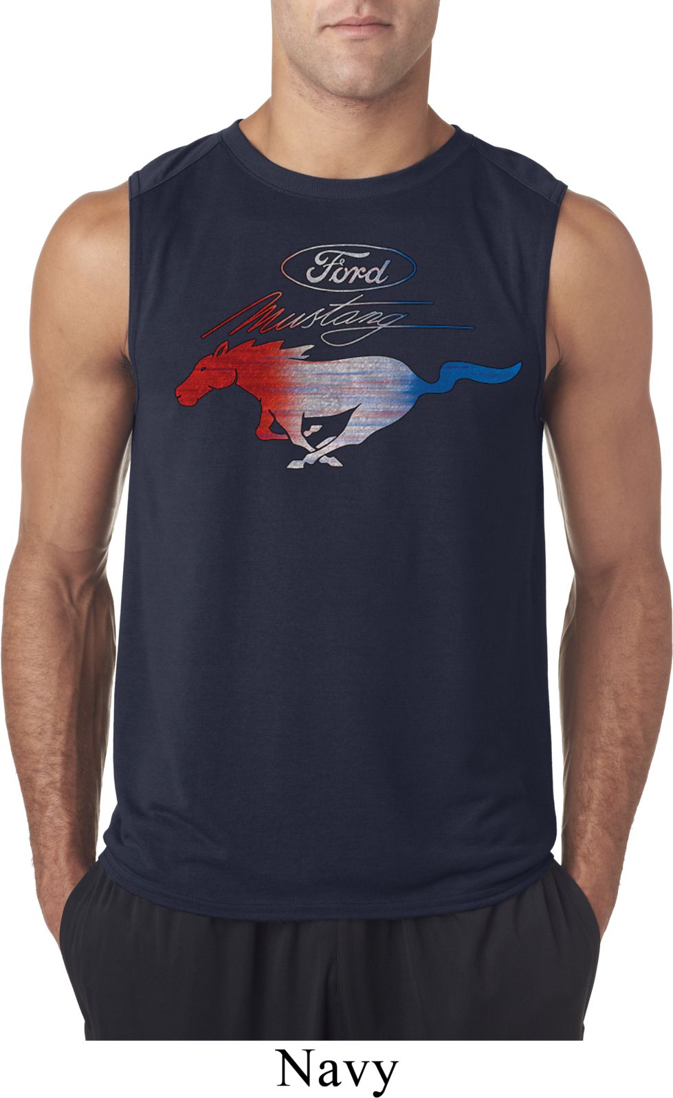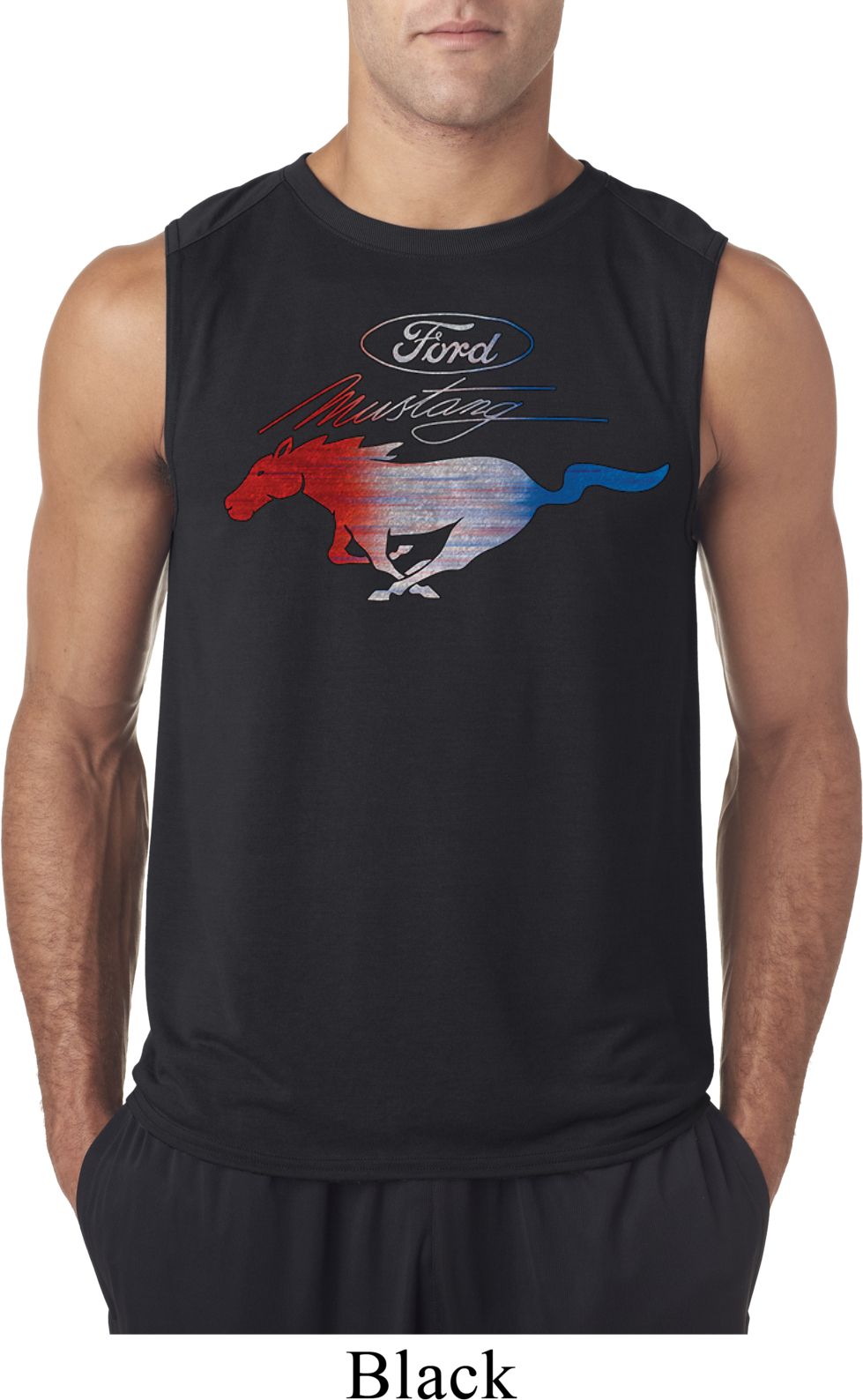 | | Ford Tee Mustang Red White and Blue Sleeveless ShirtA mens dry wicking muscle shirt featuring a distressed Ford Mustang Logo in red, white, and blue. Our mens tee is made of 100% polyester. A perfect gift for all Ford Car Enthusiasts! Available in sizes Small through 2XL. Machine wash cold with like colors; dry low heat. ![]() |