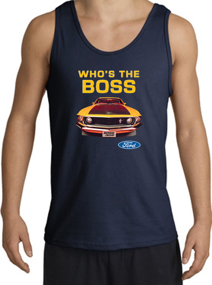 Ford Mustang Boss Tank Top - Who's The Boss 302 Adult Navy Tanktop