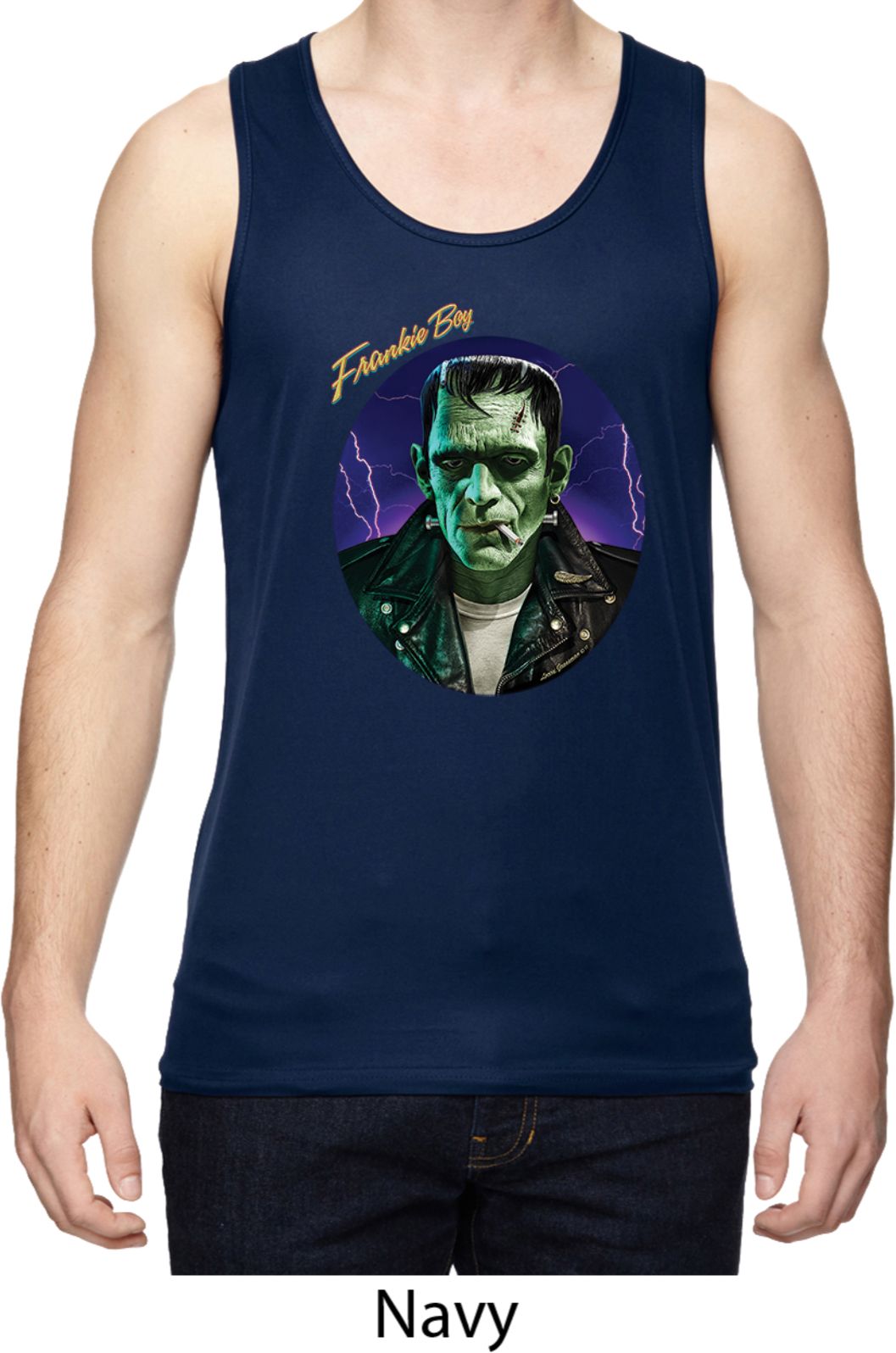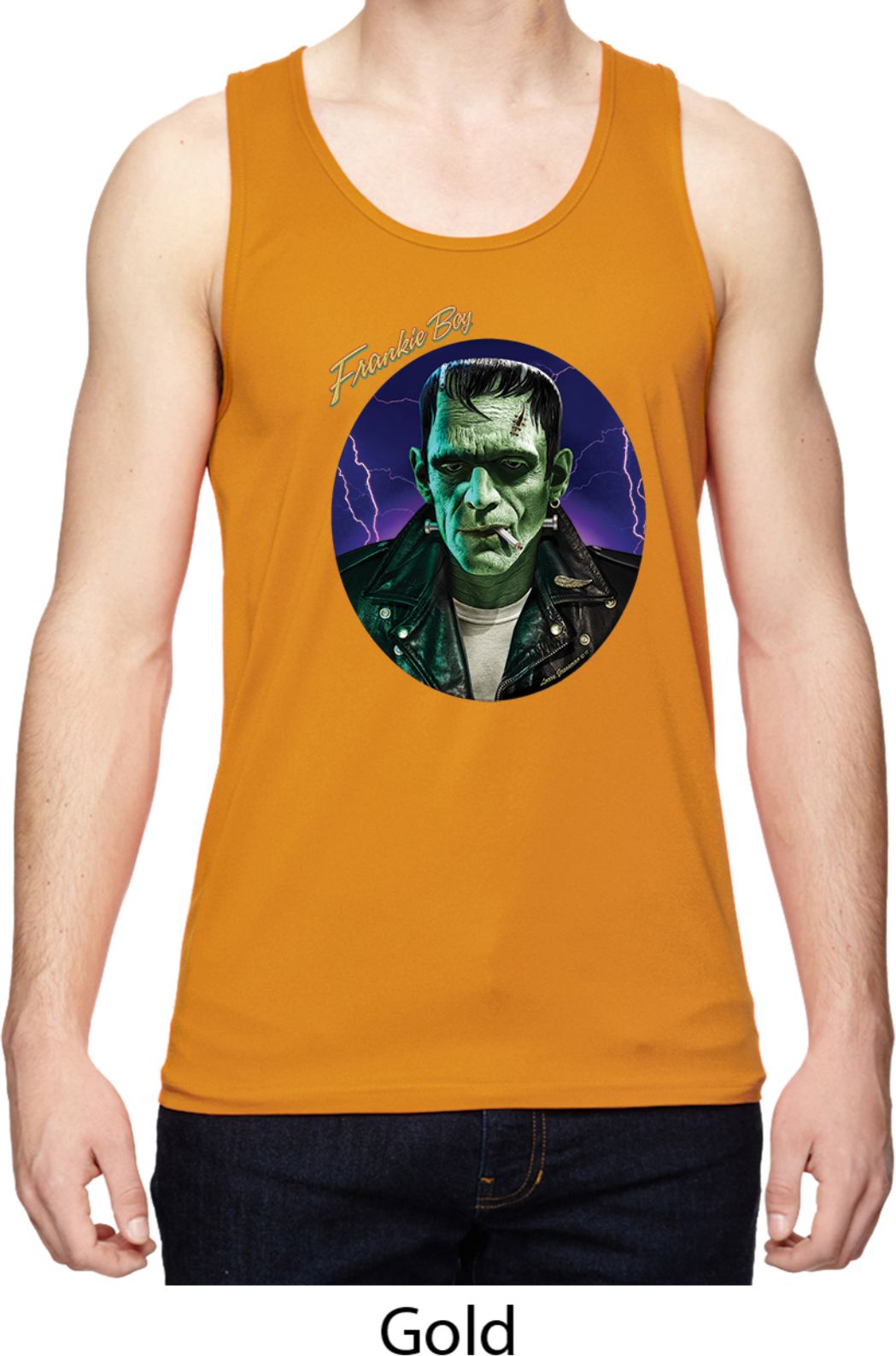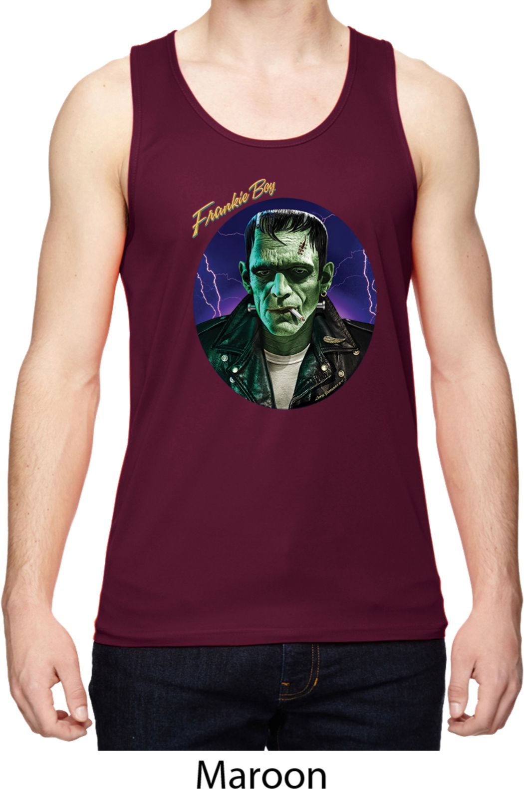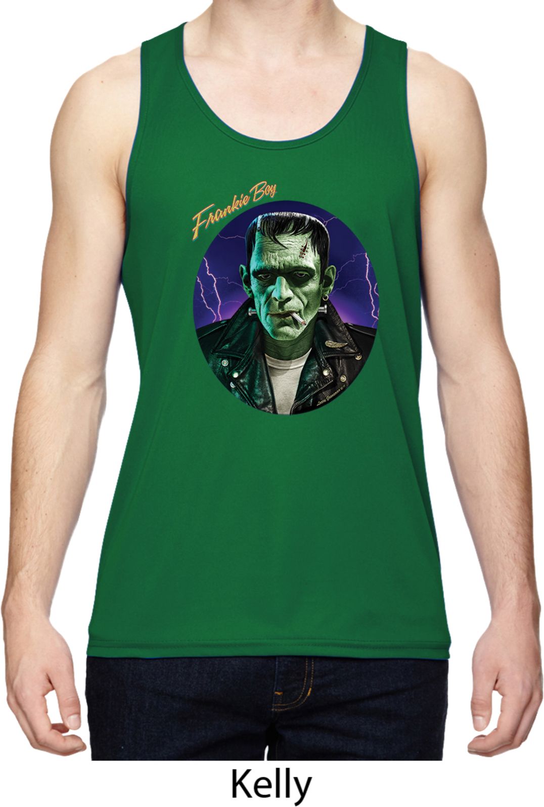 | | Frankenstein Tank Top Frankie Boy Dry Wicking TanktopA mens moisture wicking tanktop featuring a cool portrait of Frankie Boy smoking his cigarette and lightning in the distance. Our mens tank top is made of 100% polyester. A perfect gift for all Frankenstein fans! Available in sizes Small through 3XL. Machine wash cold with like colors; dry low heat. |