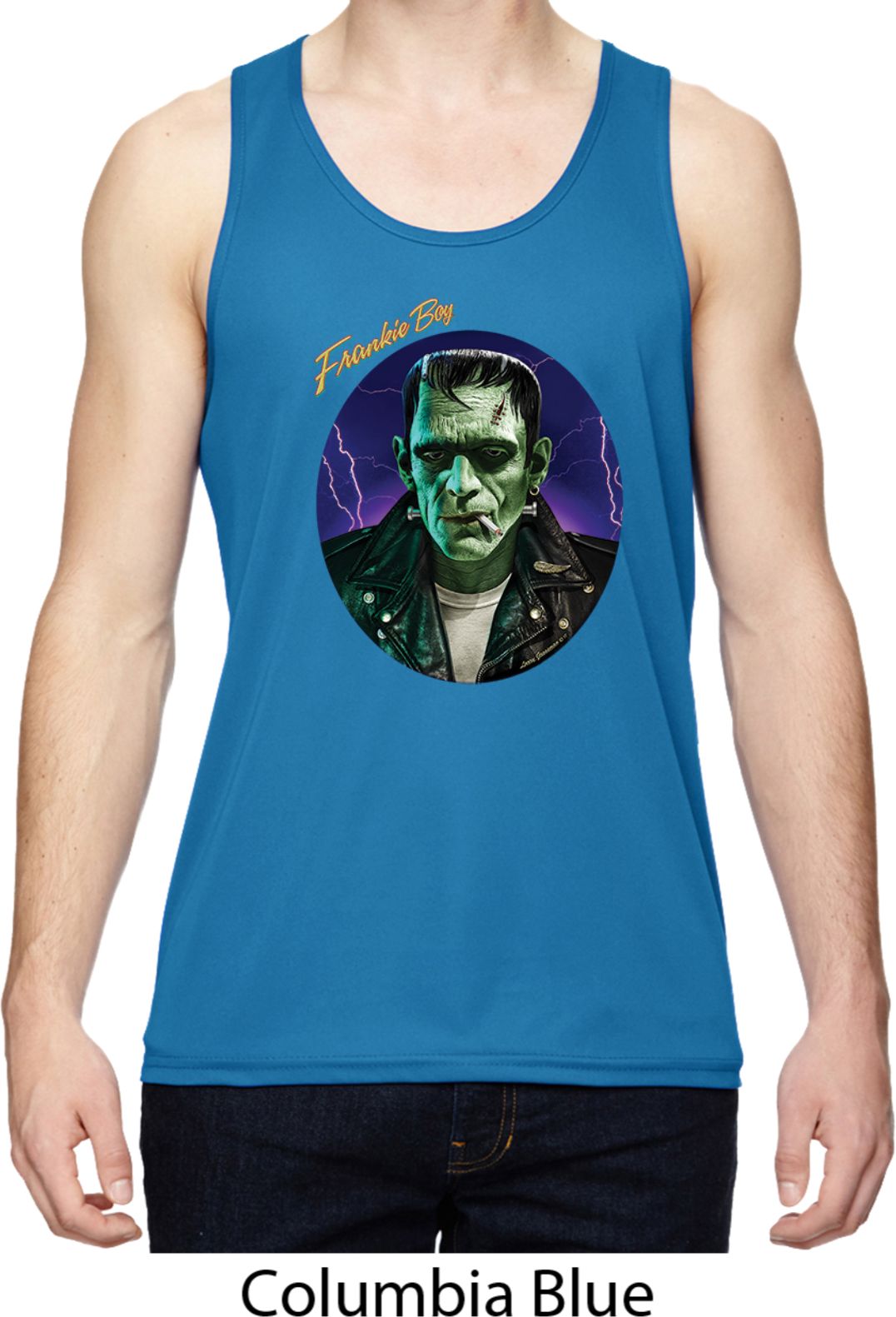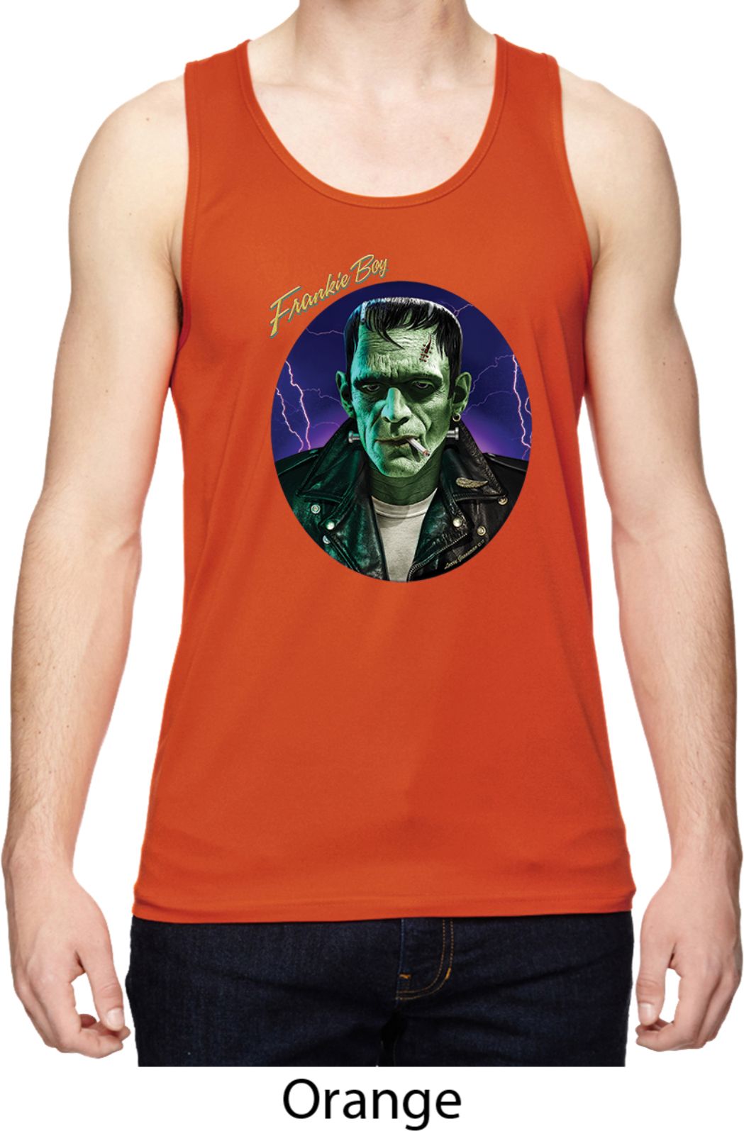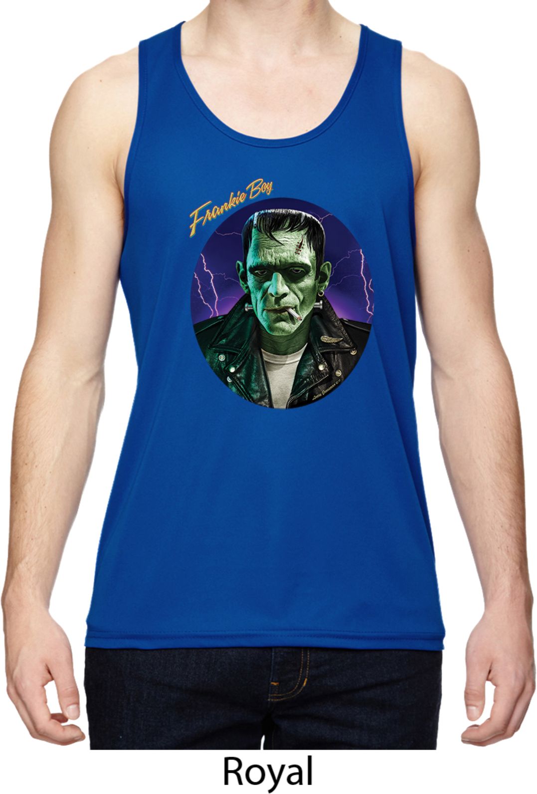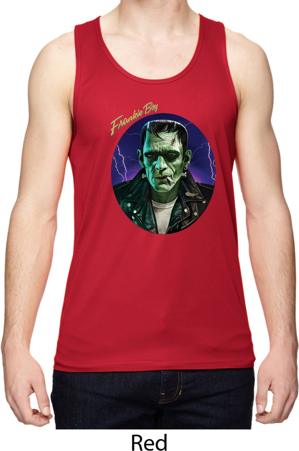 | | Frankenstein Tank Top Frankie Boy Dry Wicking TanktopA mens moisture wicking tanktop featuring a cool portrait of Frankie Boy smoking his cigarette and lightning in the distance. Our mens tank top is made of 100% polyester. A perfect gift for all Frankenstein fans! Available in sizes Small through 3XL. Machine wash cold with like colors; dry low heat. |