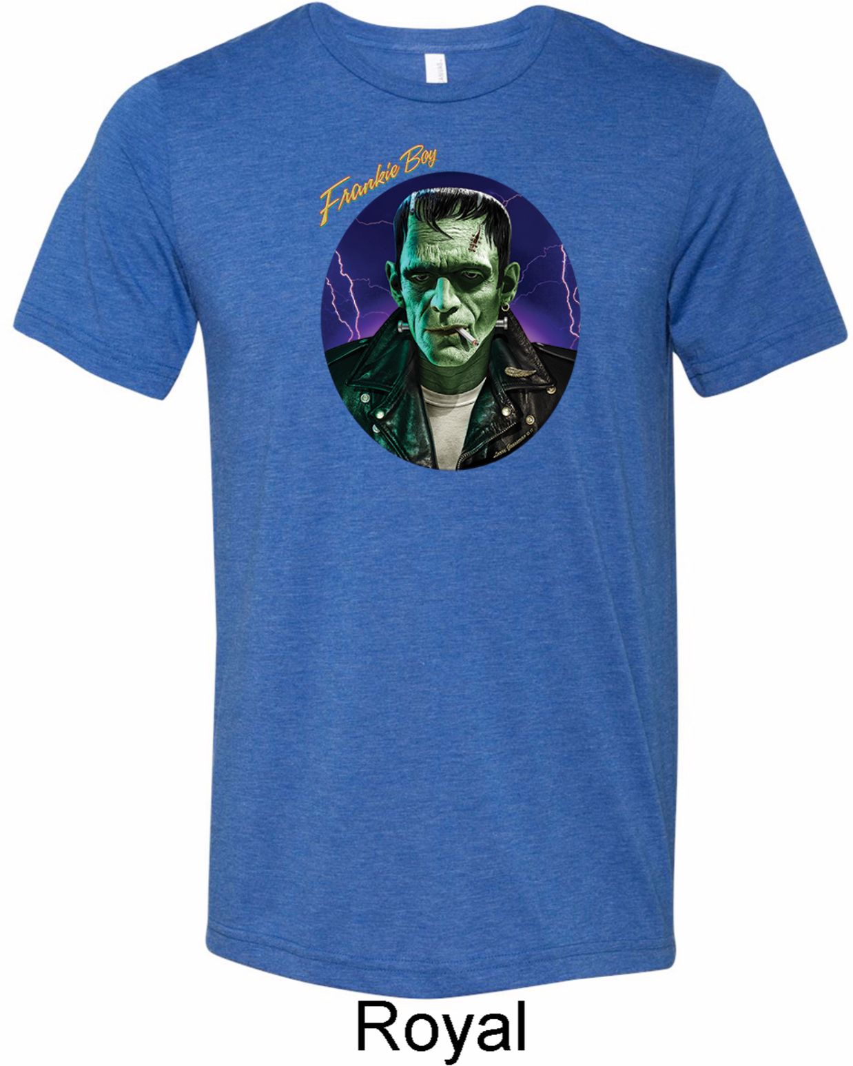| | Frankenstein Tee Frankie Boy Tri Blend TeeA soft mens t-shirt featuring a cool portrait of Frankie Boy smoking his cigarette and lightning in the distance. Our mens shirt is made with a blend of cotton/poly/rayon. A perfect gift for all Frankenstein fans! Available in sizes Small through 3XL. Machine wash cold with like colors; dry low heat. ![]() |