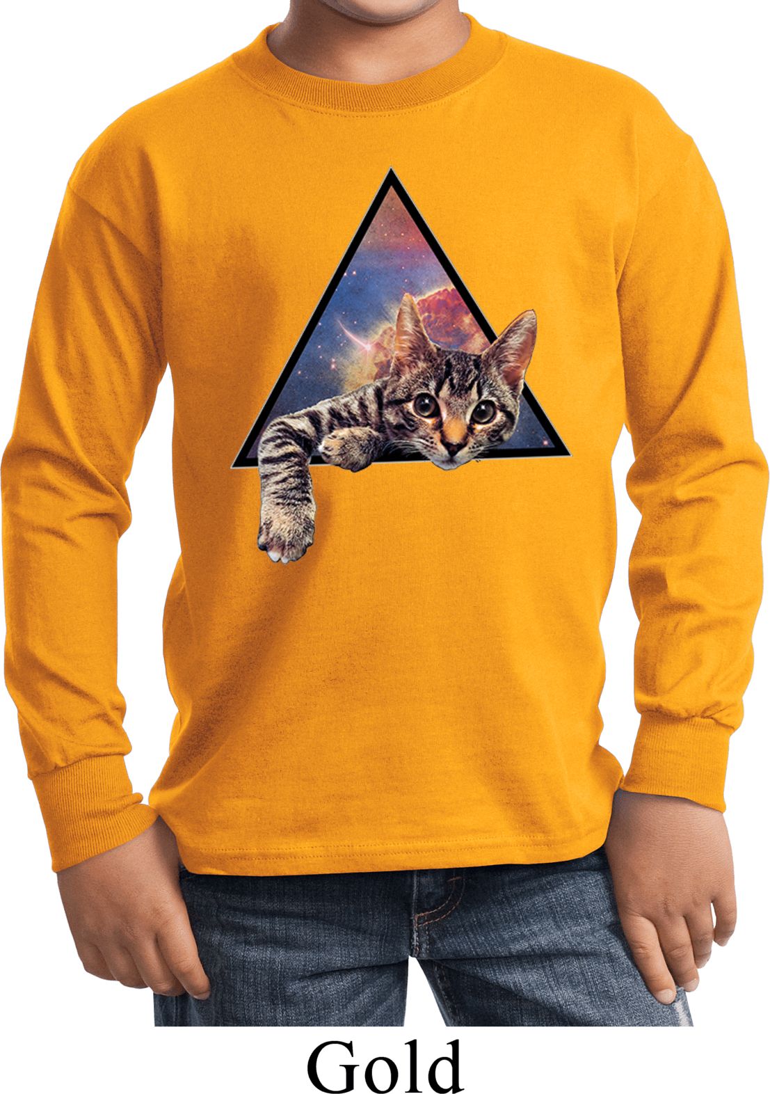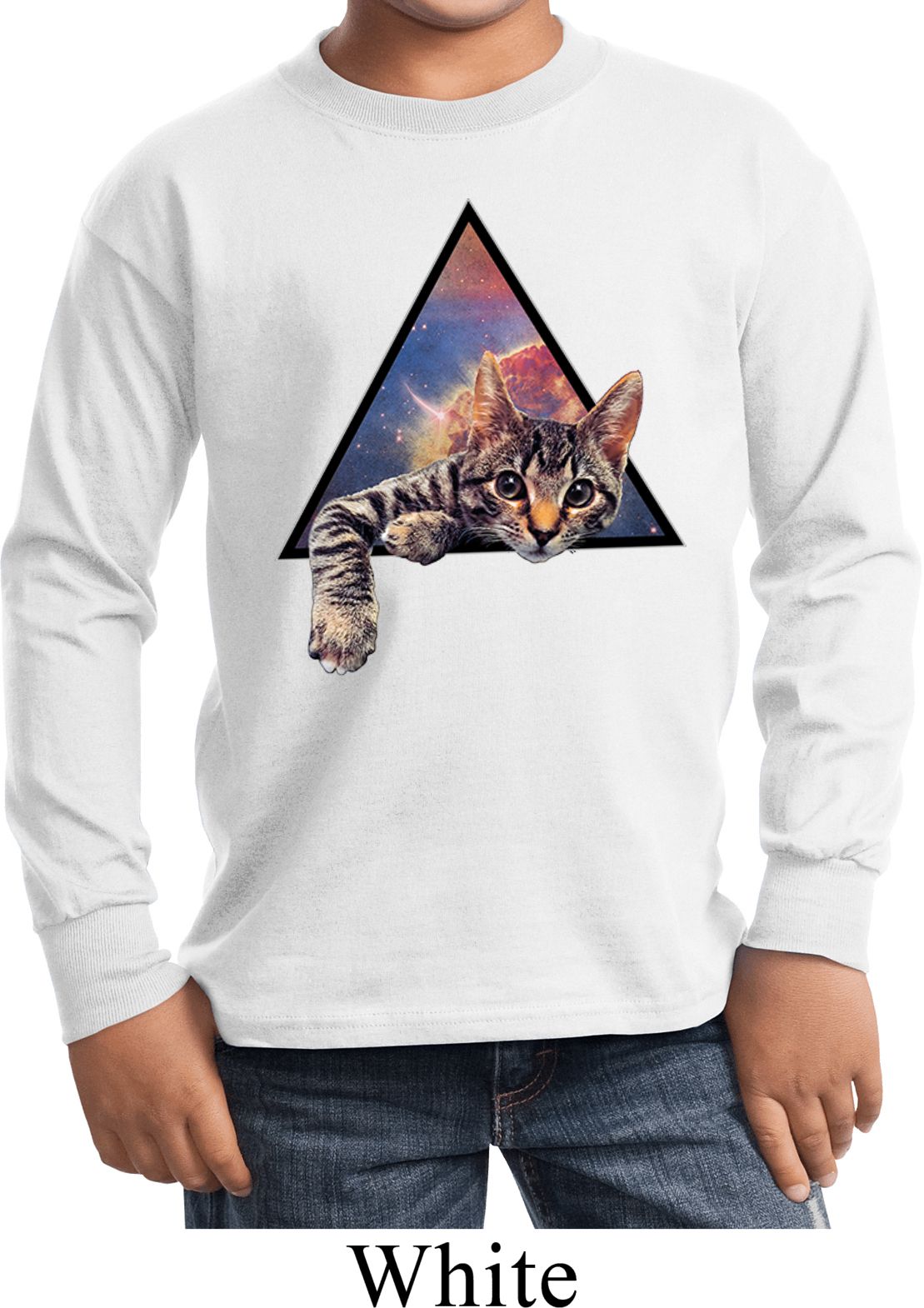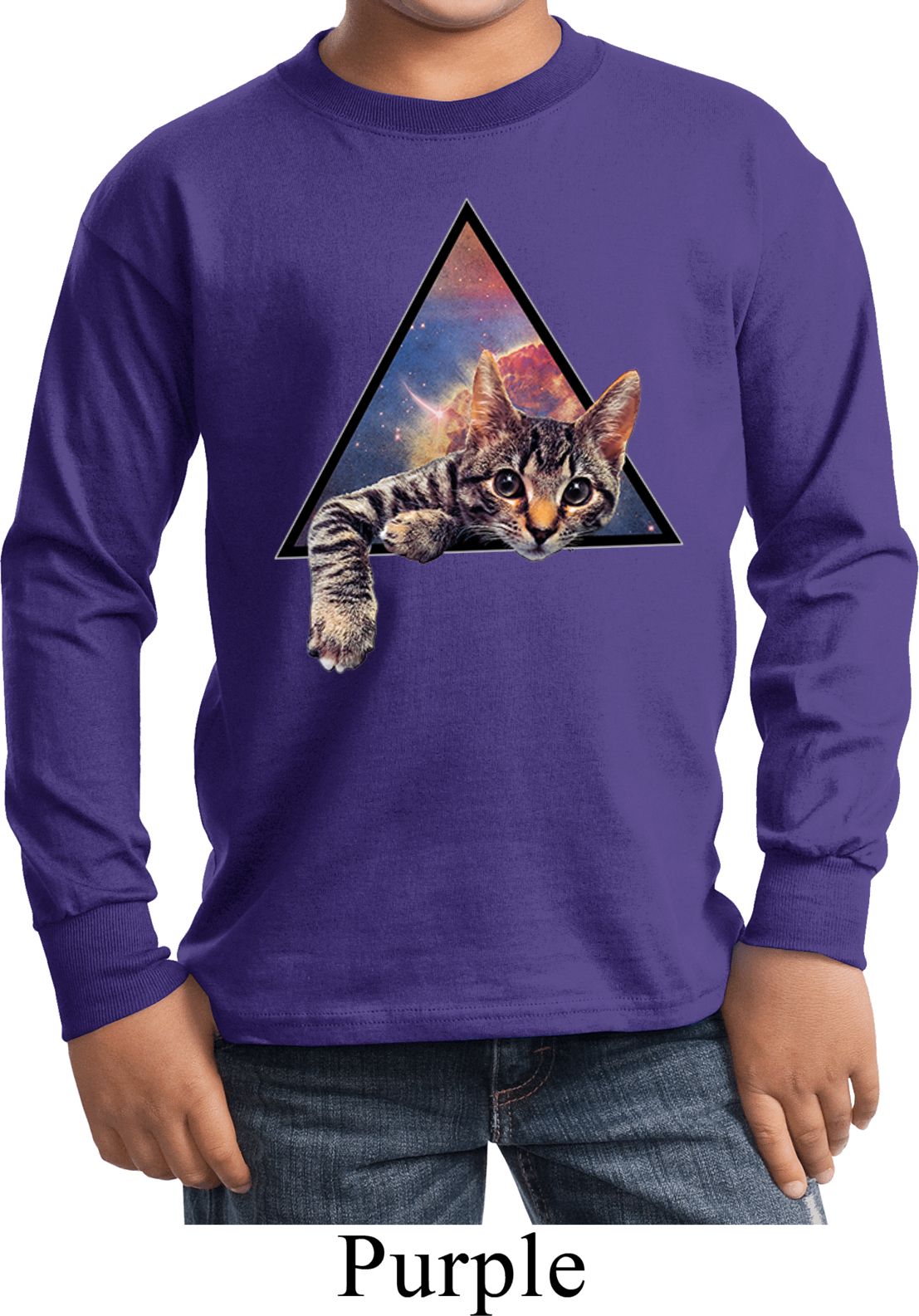 | | Galactic Cat Kids Long Sleeve ShirtA kids long sleeve featuring a cute cat popping out of the galaxy. An awesome gift for cat lovers everywhere. Our youth shirt is made of 100% cotton. (Ash and Athletic Heather are made with a blend of cotton/poly) Available in sizes Small through XL. Machine wash cold with like colors; dry low heat. ![]() |