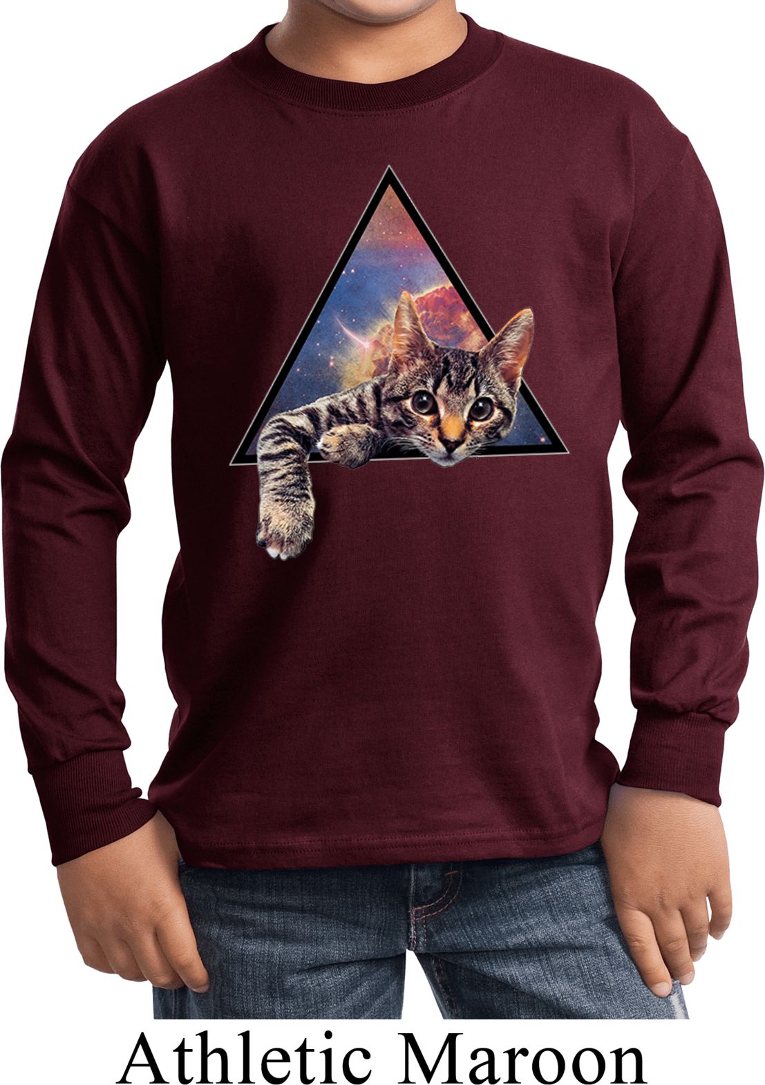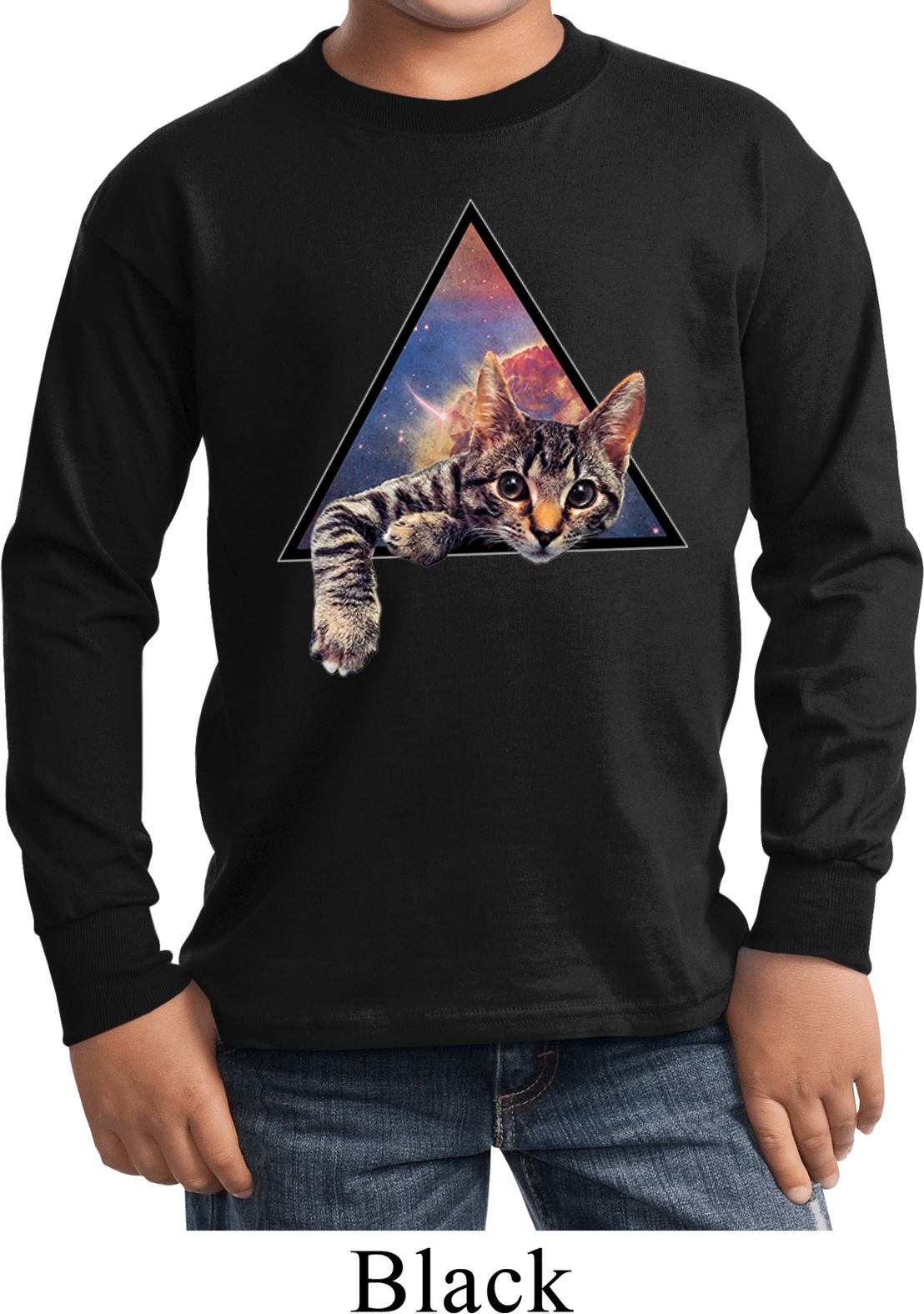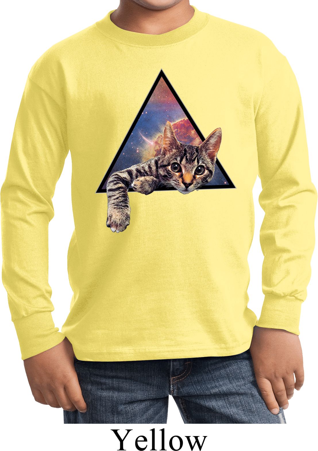 | | Galactic Cat Kids Long Sleeve ShirtA kids long sleeve featuring a cute cat popping out of the galaxy. An awesome gift for cat lovers everywhere. Our youth shirt is made of 100% cotton. (Ash and Athletic Heather are made with a blend of cotton/poly) Available in sizes Small through XL. Machine wash cold with like colors; dry low heat. ![]() |