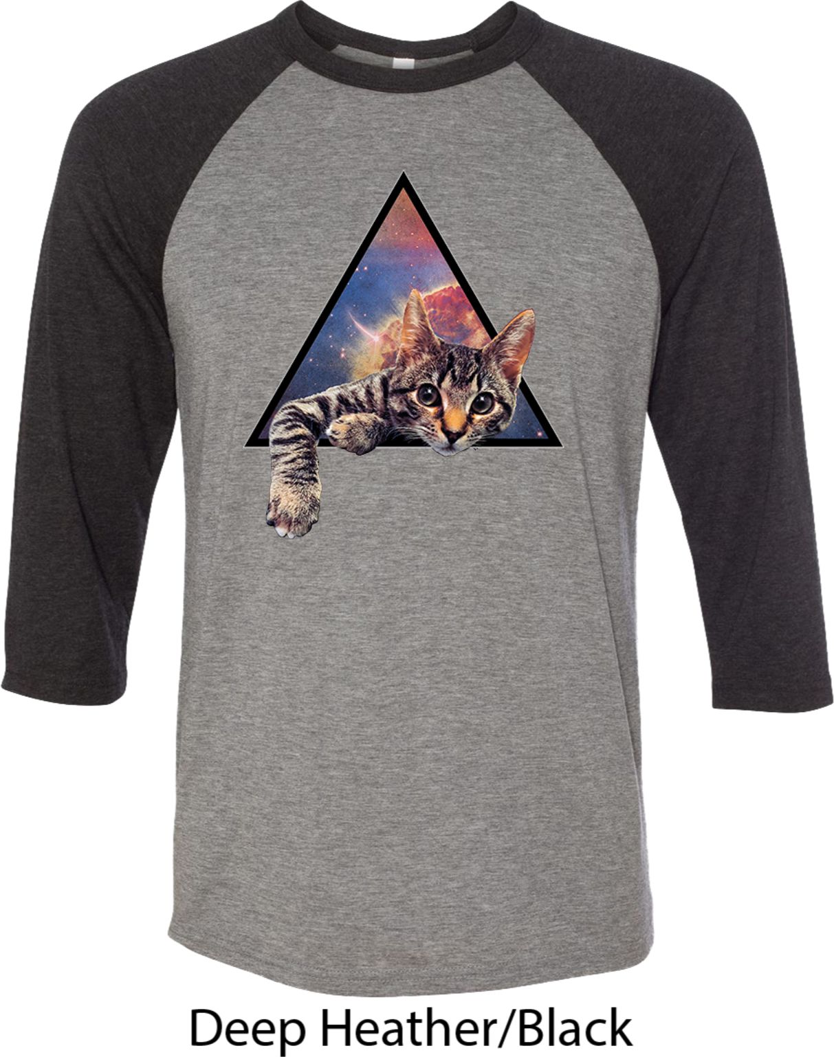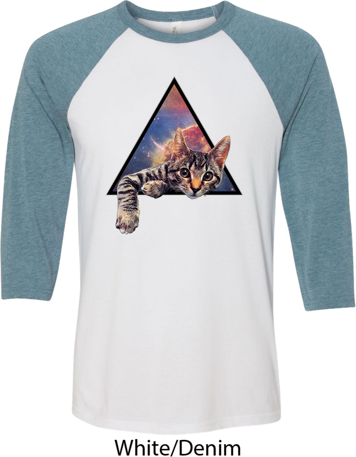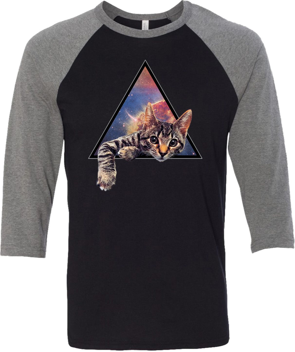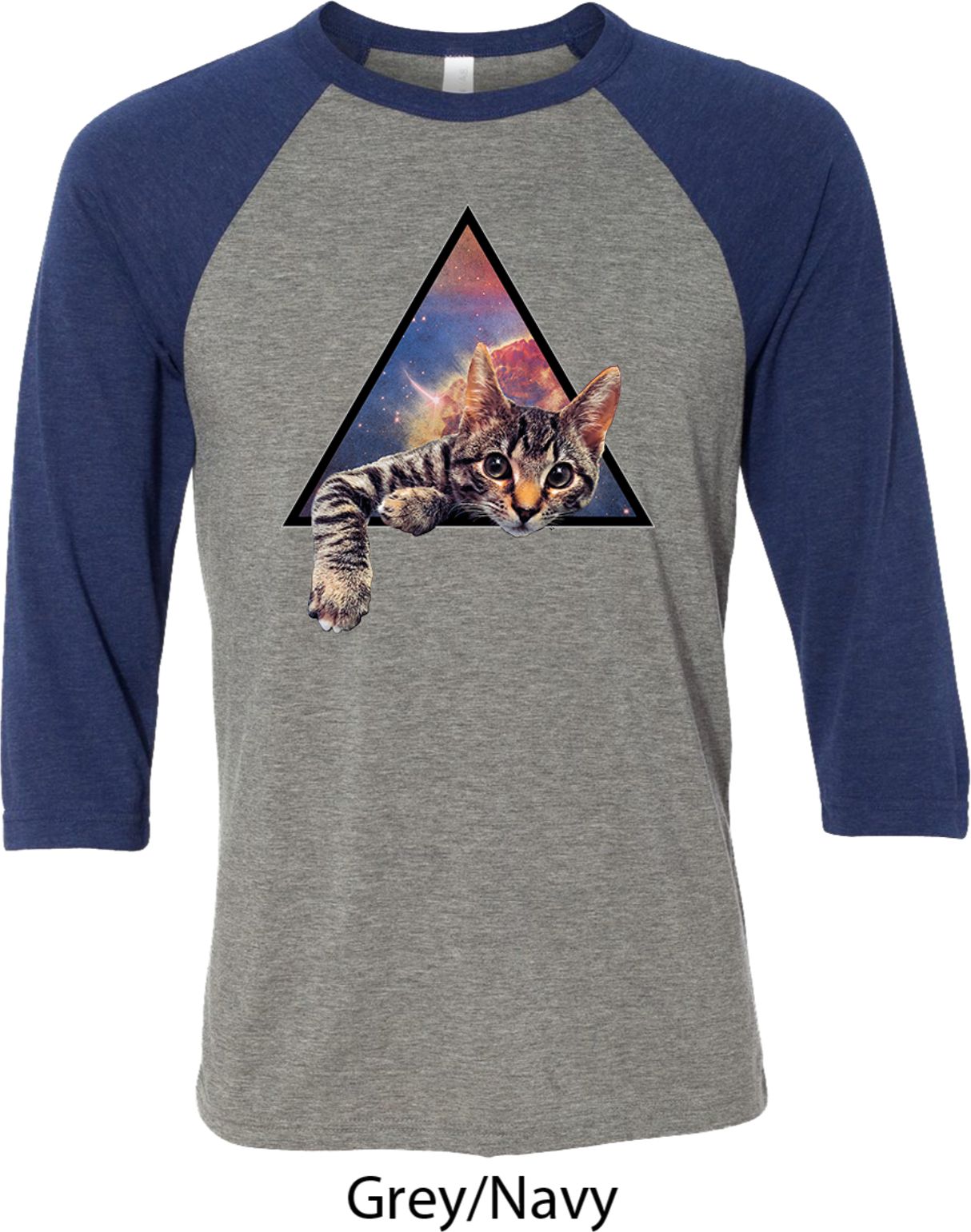 | | Galactic Cat Raglan ShirtA mens 3/4 sleeve shirt with color block sleeves featuring a cute cat popping out of the galaxy. An awesome gift for cat lovers everywhere. Our mens shirt is made with a blend of cotton/poly. (Tri Blends are made with a blend of cotton/poly/rayon) Available in sizes Small through 2XL. Machine wash cold with like colors; dry low heat. ![]() |
