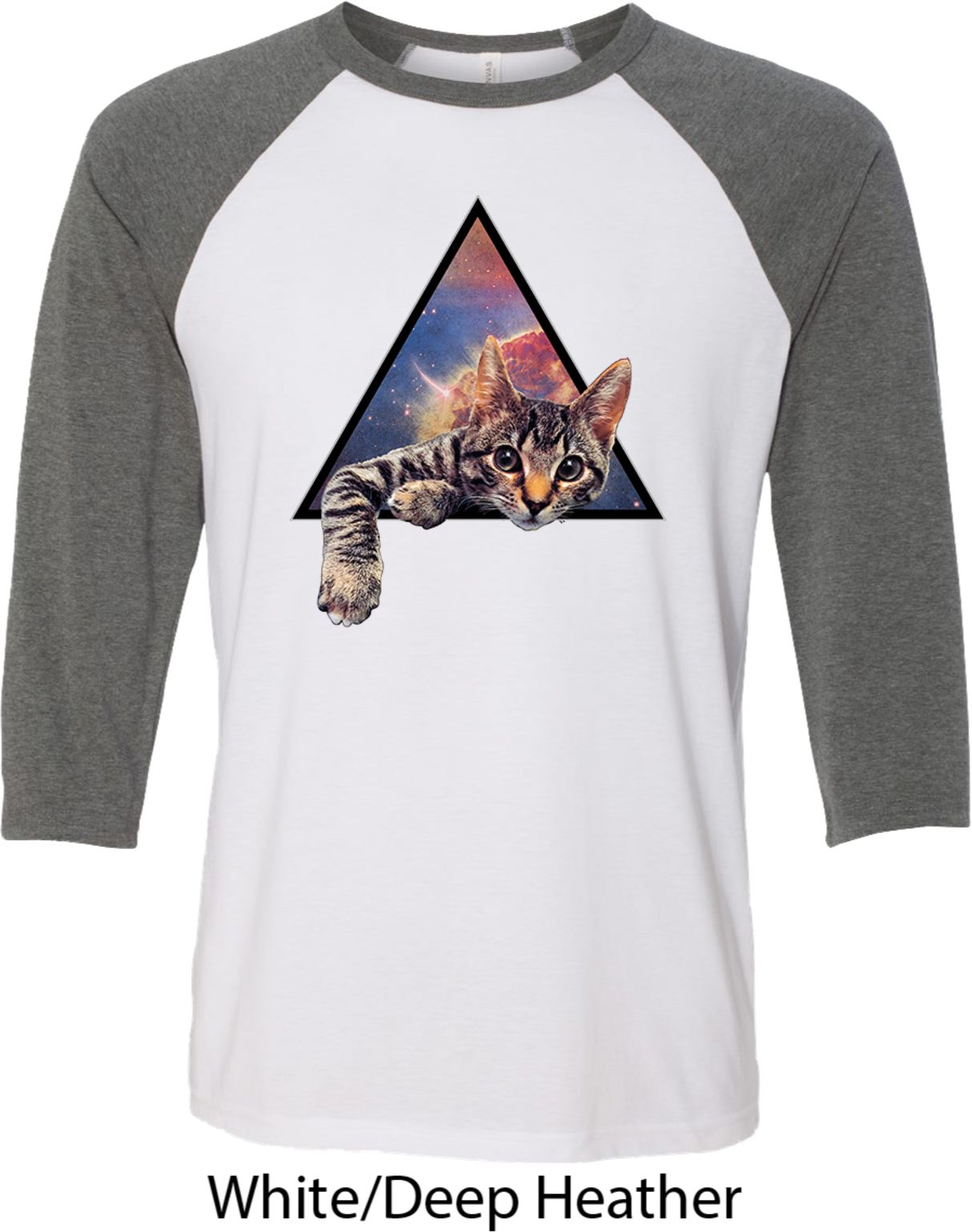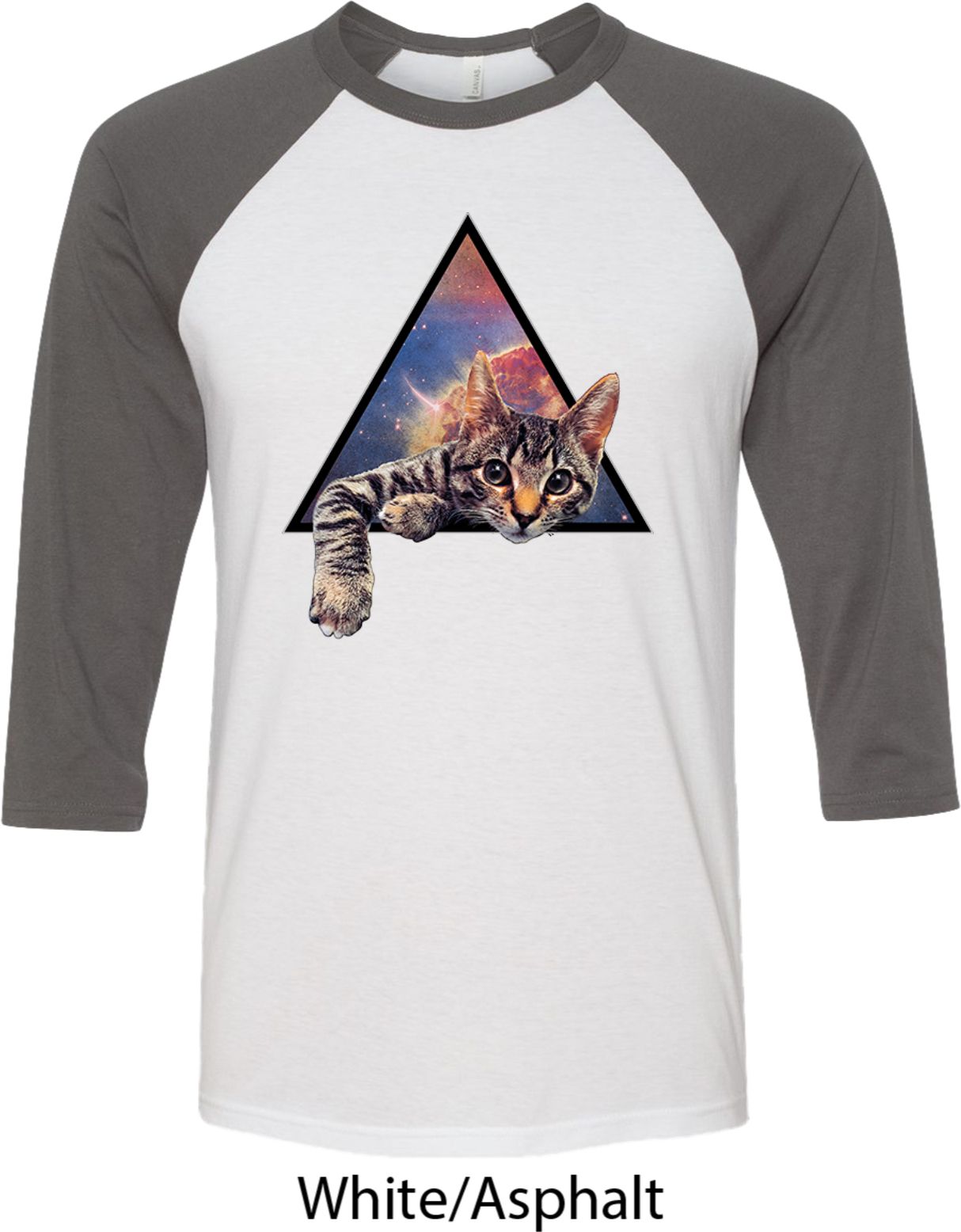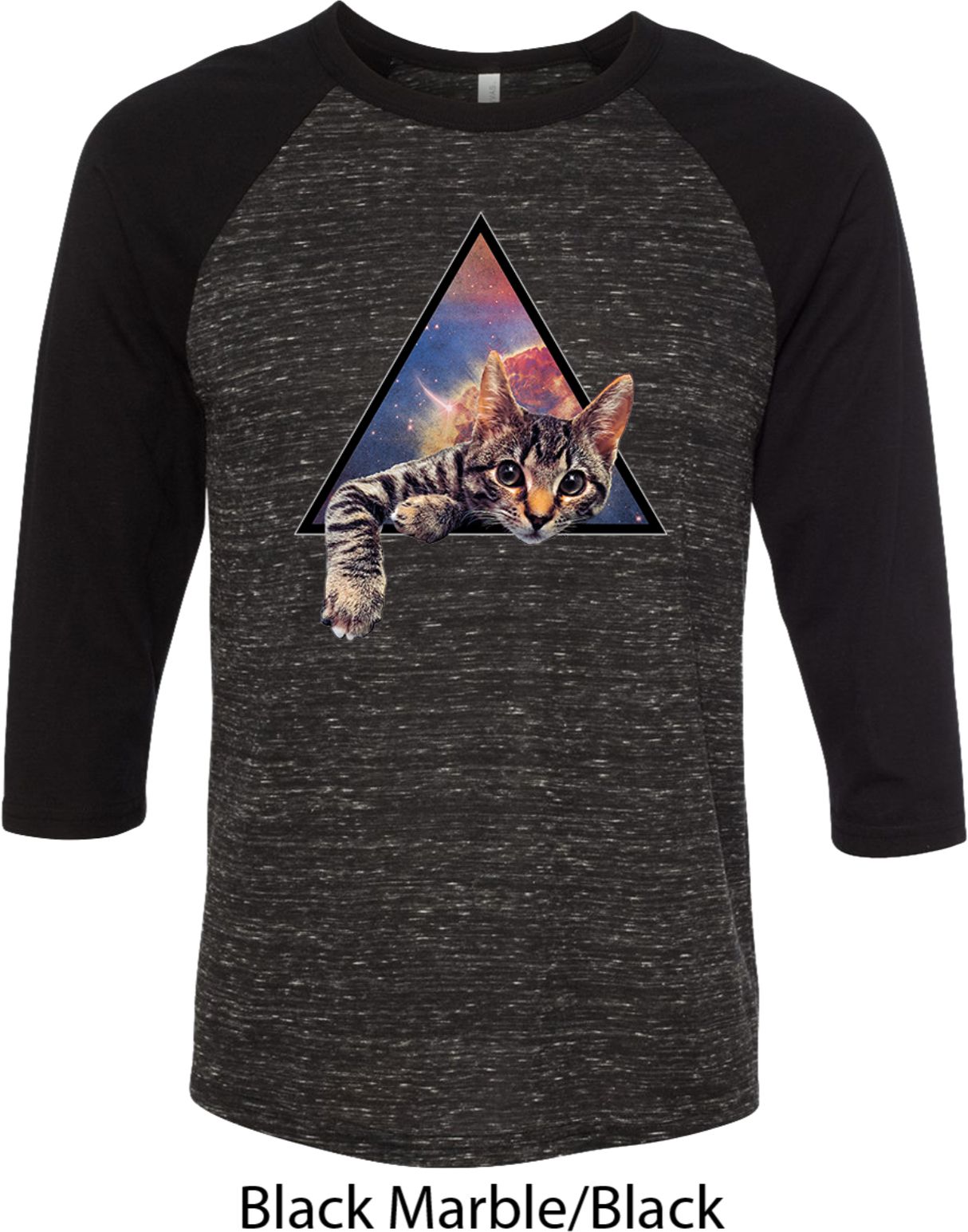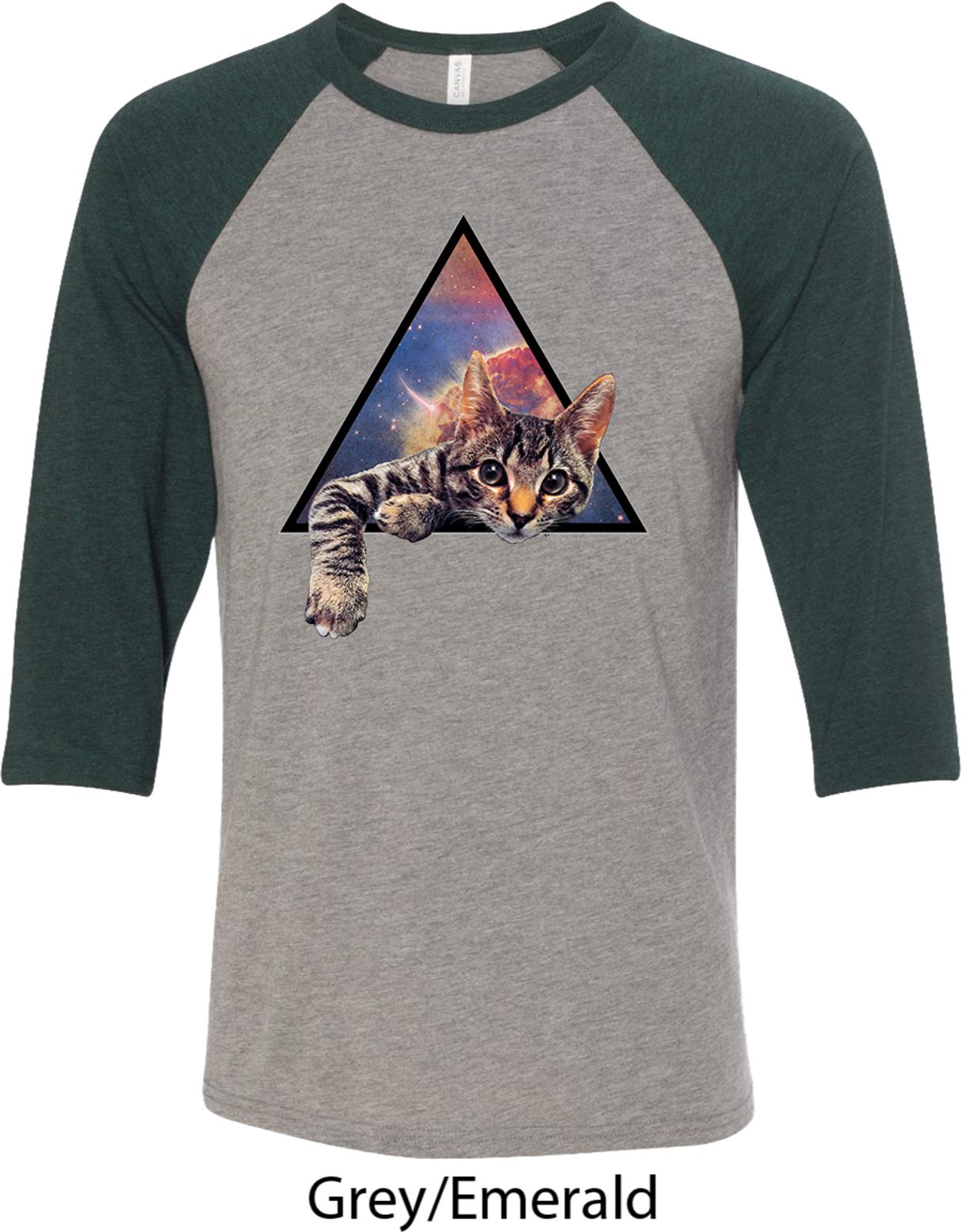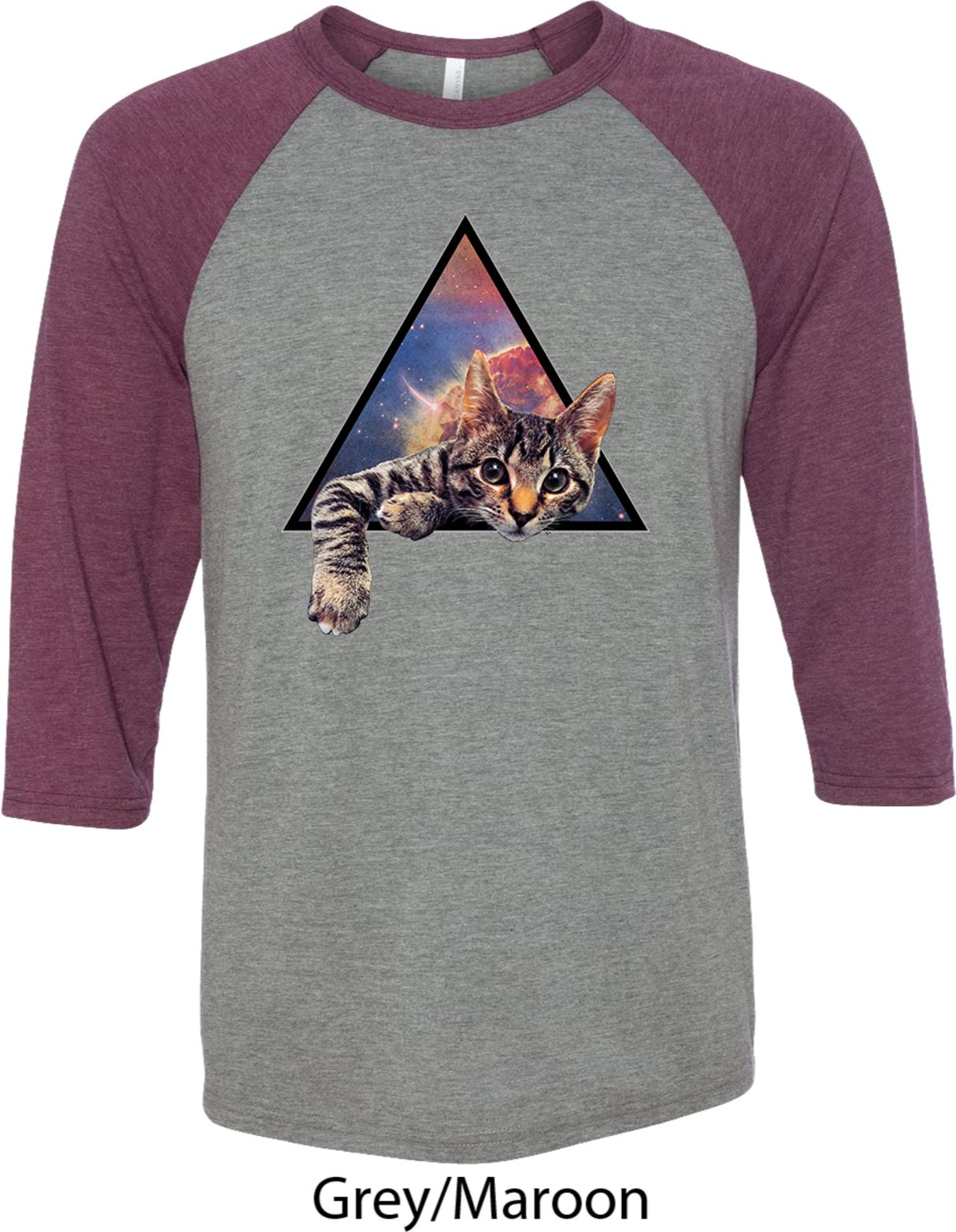 | | Galactic Cat Raglan ShirtA mens 3/4 sleeve shirt with color block sleeves featuring a cute cat popping out of the galaxy. An awesome gift for cat lovers everywhere. Our mens shirt is made with a blend of cotton/poly. (Tri Blends are made with a blend of cotton/poly/rayon) Available in sizes Small through 2XL. Machine wash cold with like colors; dry low heat. ![]() |