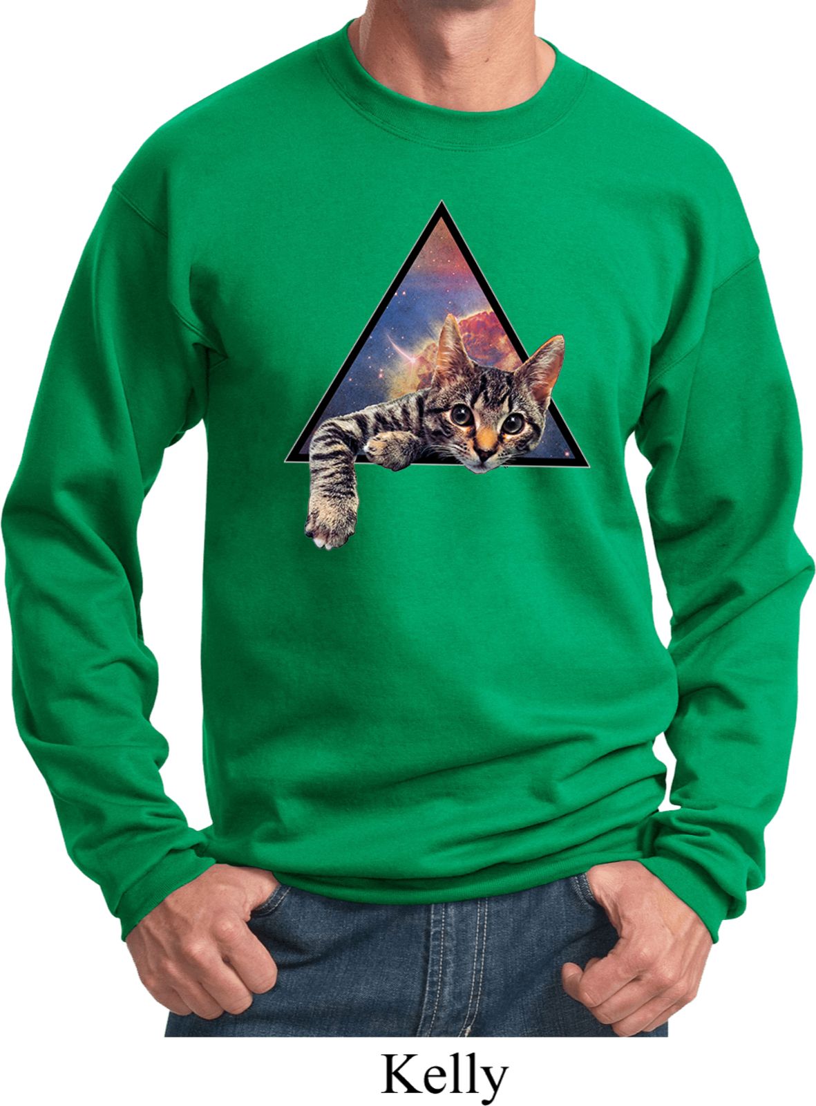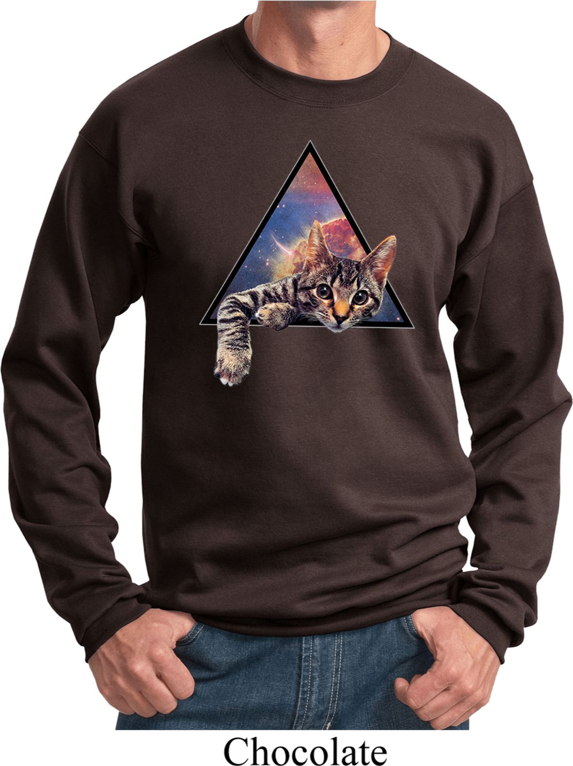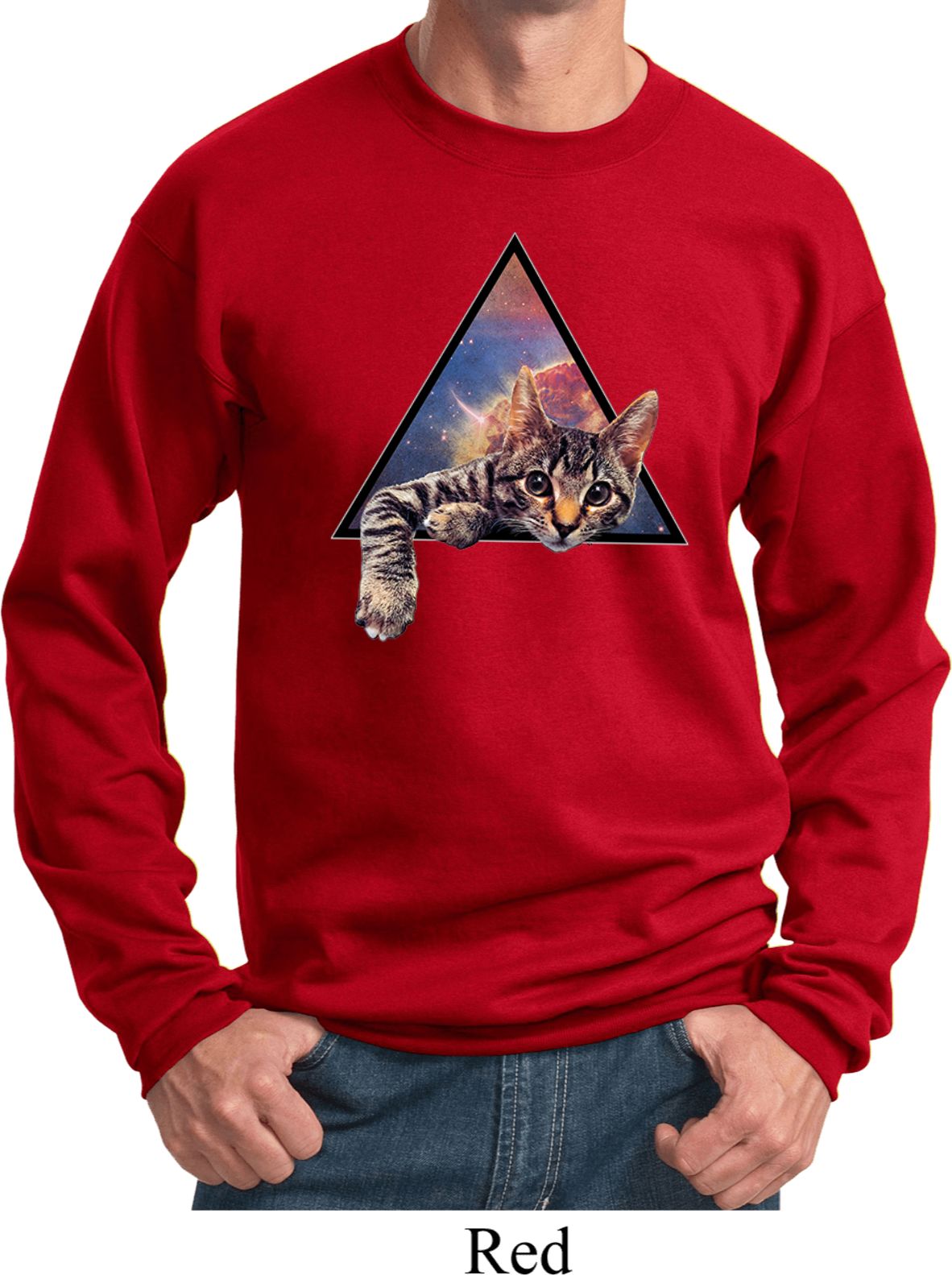 | | Galactic Cat SweatshirtA mens sweatshirt featuring a cute cat popping out of the galaxy. An awesome gift for cat lovers everywhere. Our mens sweatshirt is made with a blend of cotton/poly. Available in sizes Small through 4XL. Machine wash cold with like colors; dry low heat. ![]() |