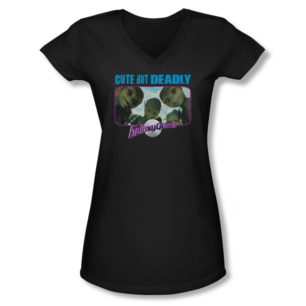 | | Galaxy Quest Shirt Juniors V Neck Cute But Deadly Does Black Tee T-ShirtGalaxy Quest Shirt Juniors V Neck Cute But Deadly Does Black Tee T-Shirt Officially Licensed Available in Small, Medium, Large, XL & 2XL Our Galaxy Quest shirts is a 1999 film perfect for any fans of this movie. ![]() |