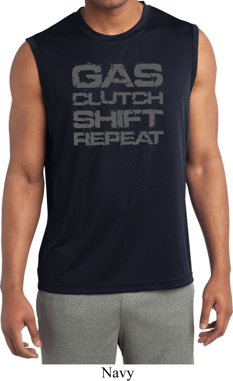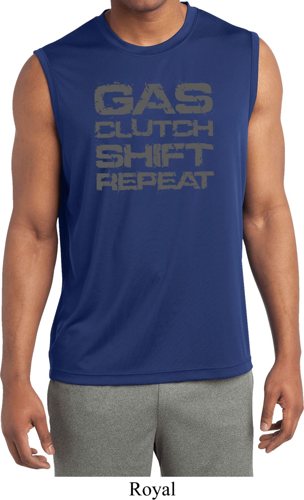 | | Gas Clutch Shift Repeat Grey Print Mens Sleeveless Moisture WickingGas Clutch Shift Repeat Grey Print Mens Sleeveless Moisture Wicking Features the popular saying Gas, Clutch, Shift, Repeat. Makes a great gift for car enthusiast! 100% polyester Available in Small, Medium, Large, XL, 2XL, 3XL & 4XL Also available in colors Black, Lime, Navy, Red, Royal, and White |