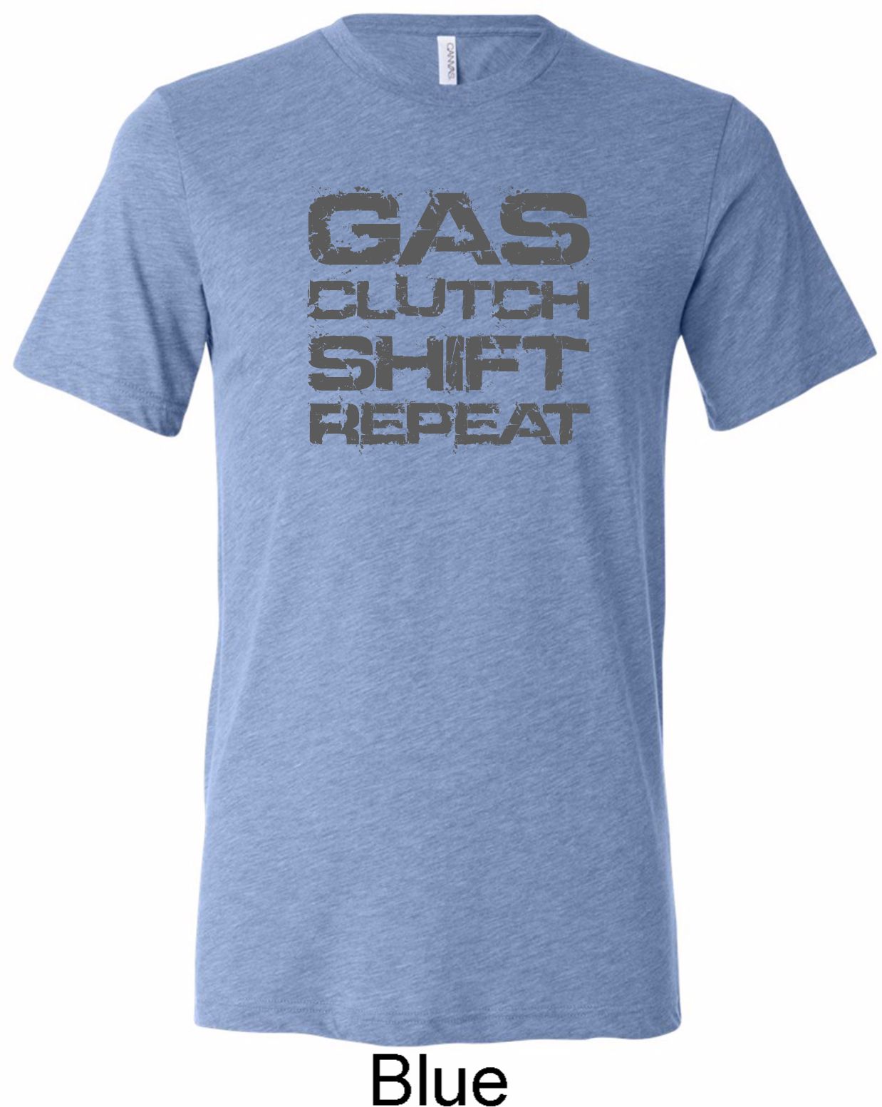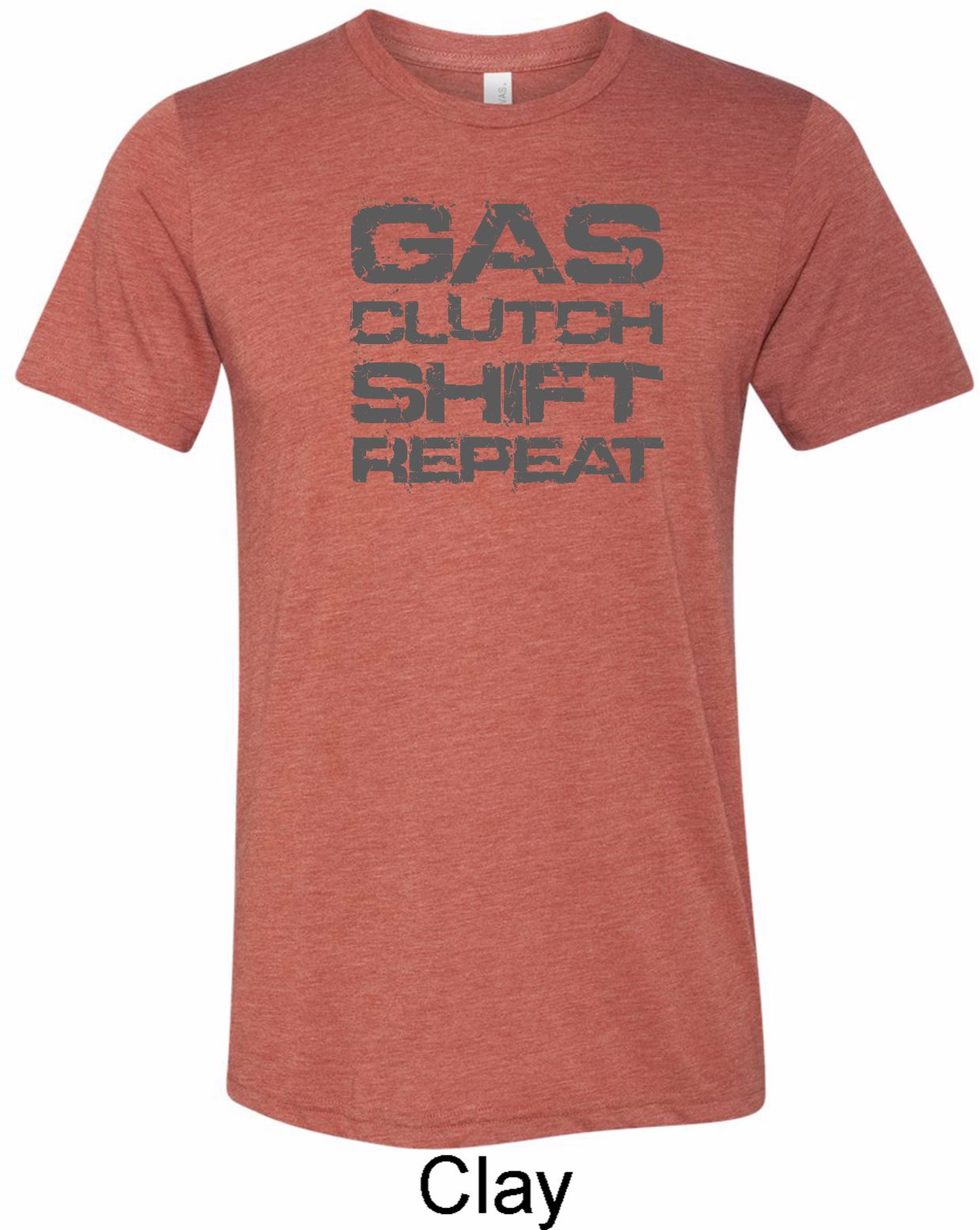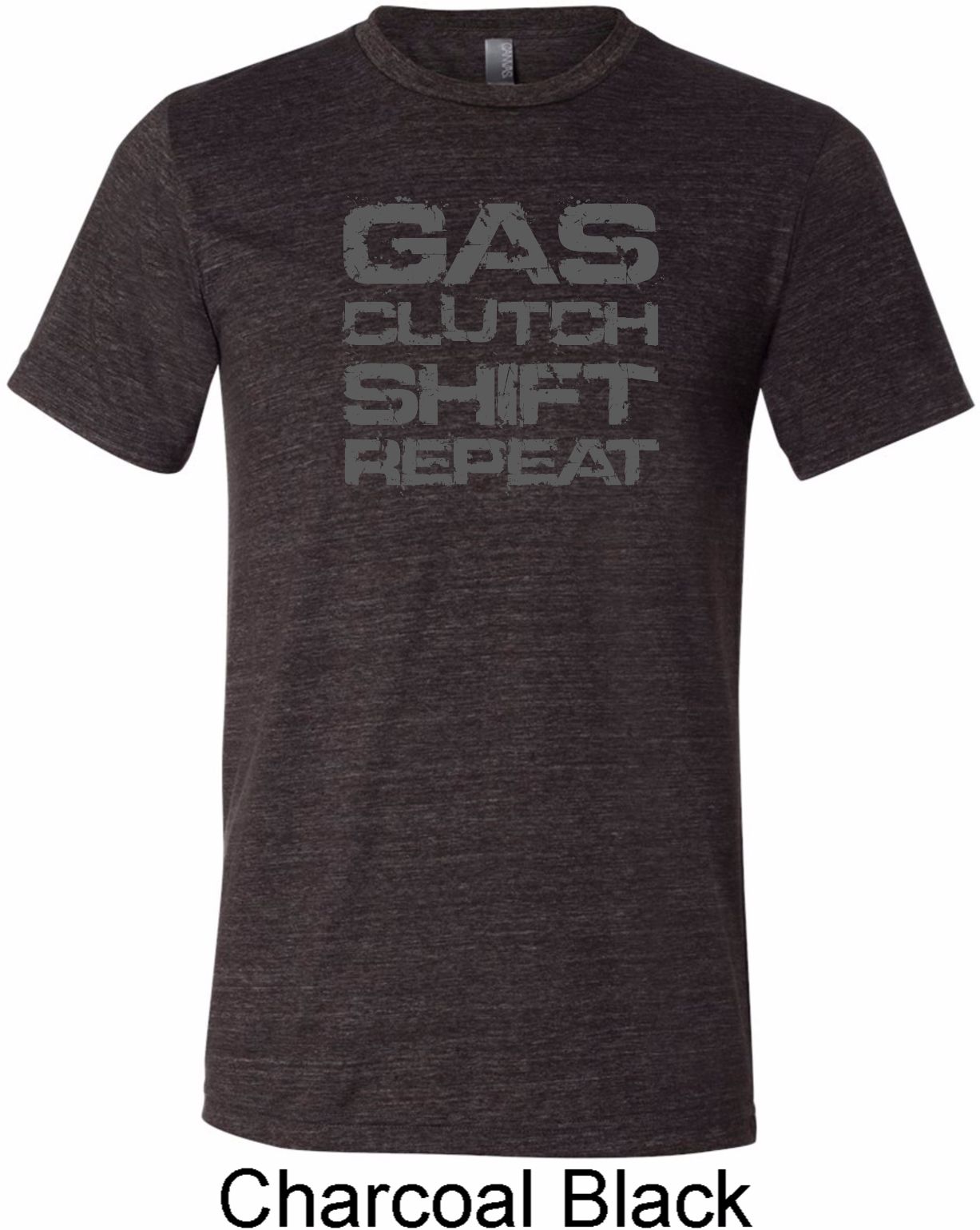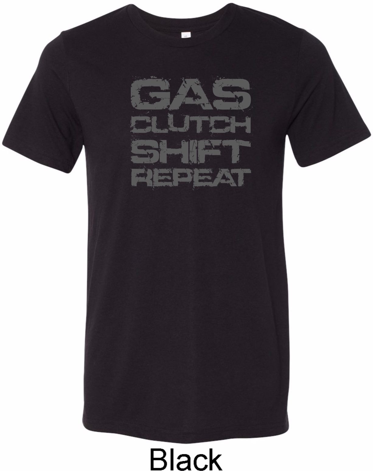| | Gas Clutch Shift Repeat Grey Print Mens Tri Blend Crewneck ShirtGas Clutch Shift Repeat Grey Print Mens Tri Blend Crewneck Shirt Features the popular saying Gas, Clutch, Shift, Repeat. Makes a great gift for car enthusiast! A cotton/poly/rayon blend Available in Small, Medium, Large, XL & 2XL Also available in colors Aqua, Berry, Blue, Brown, Charcoal Black, Clay, Emerald, Green, Navy, Oatmeal, Orange, Red, Solid Black, Teal, Royal, and White Fleck |