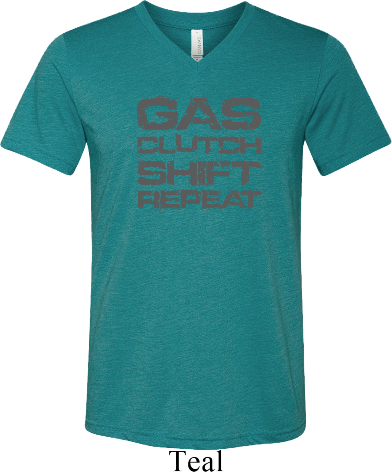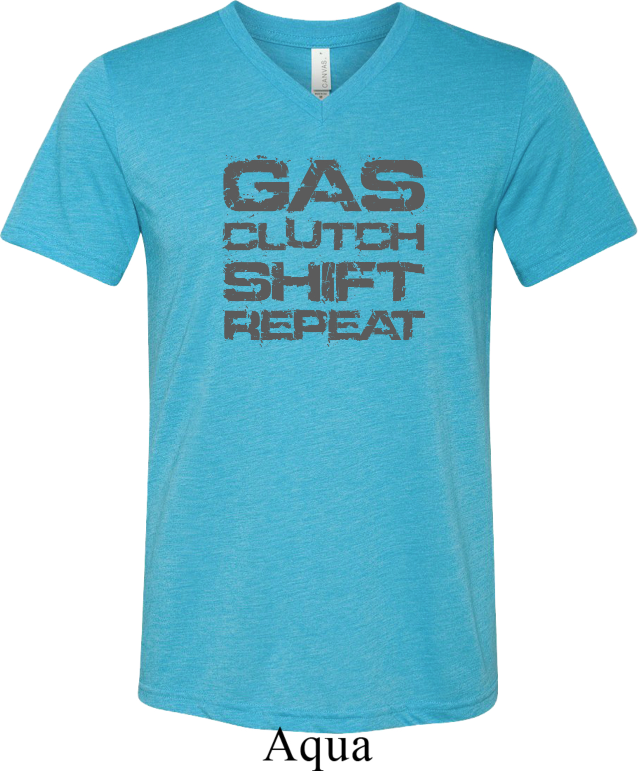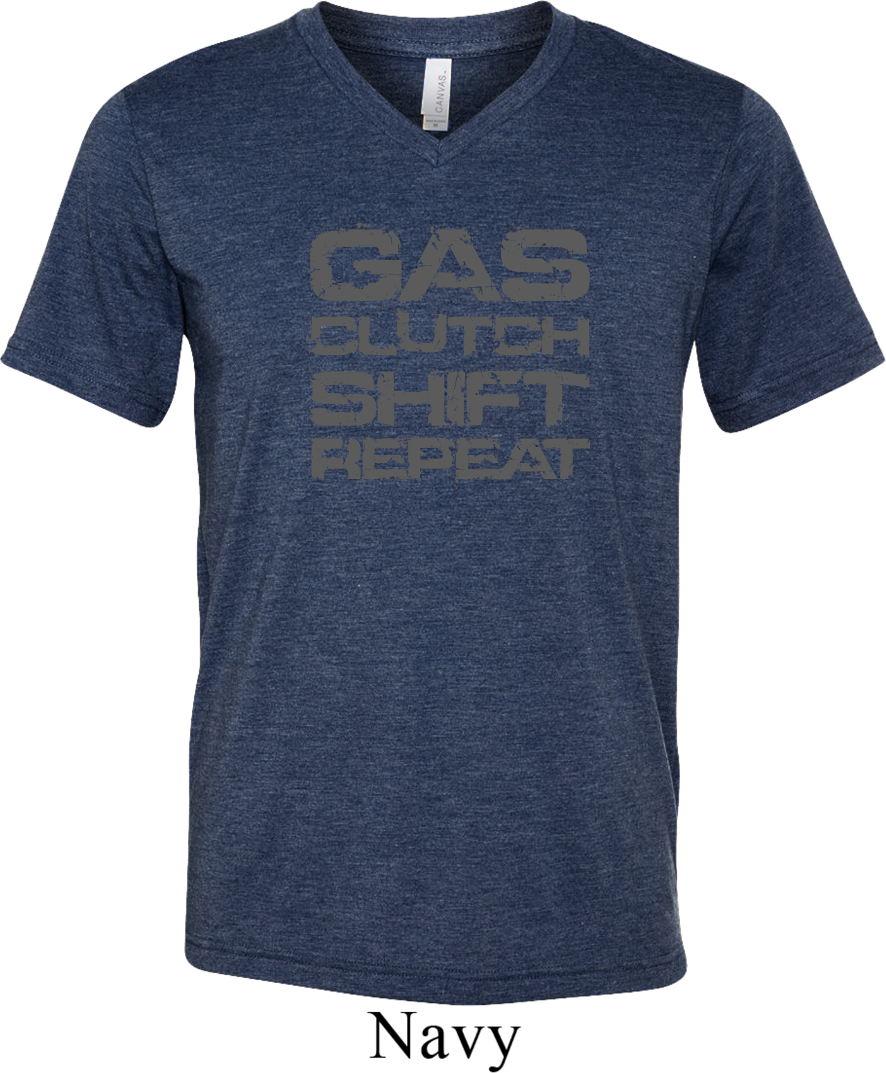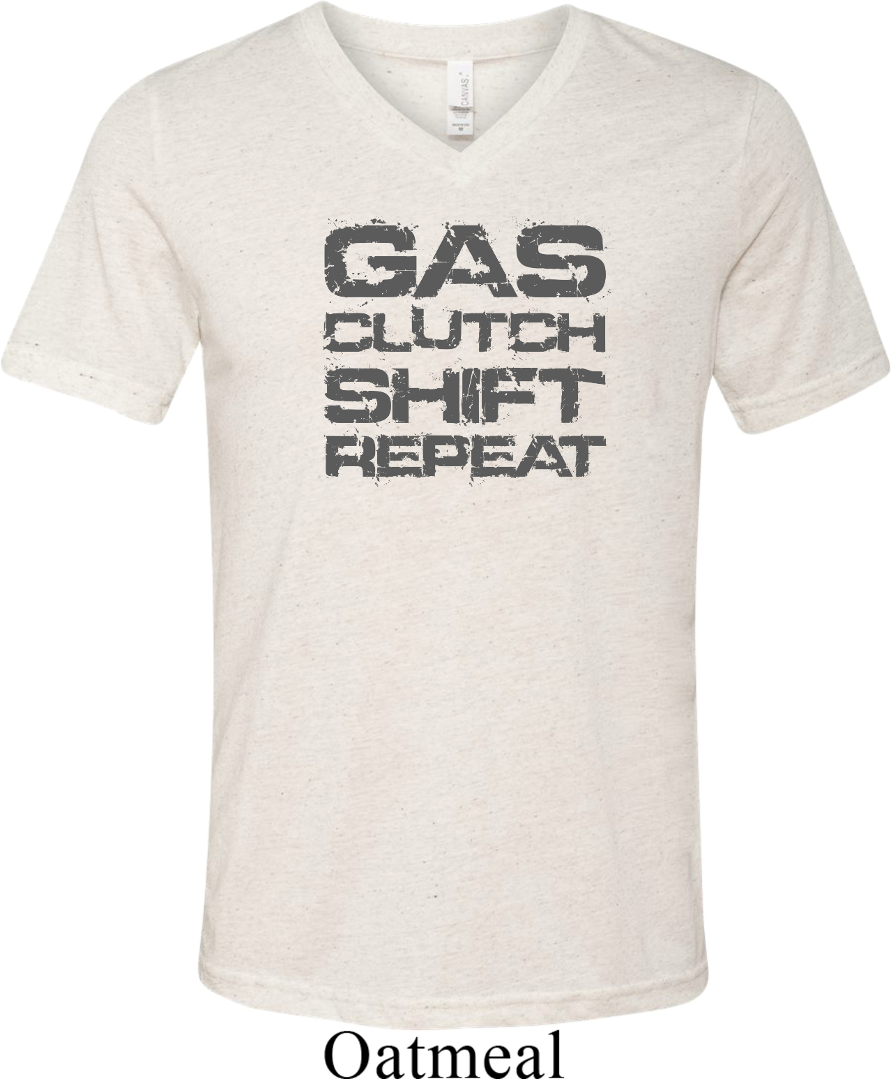 | | Gas Clutch Shift Repeat Grey Print Mens Tri Blend V-neck ShirtGas Clutch Shift Repeat Grey Print Mens Tri Blend V-neck Shirt Features the popular saying Gas, Clutch, Shift, Repeat. Makes a great gift for car enthusiast! A cotton/poly/rayon blend Available in Small, Medium, Large, XL & 2XL Also available in colors Aqua, Blue, Brown, Clay, Green, Navy, Oatmeal, Orange, Red, Royal, Teal, and White |