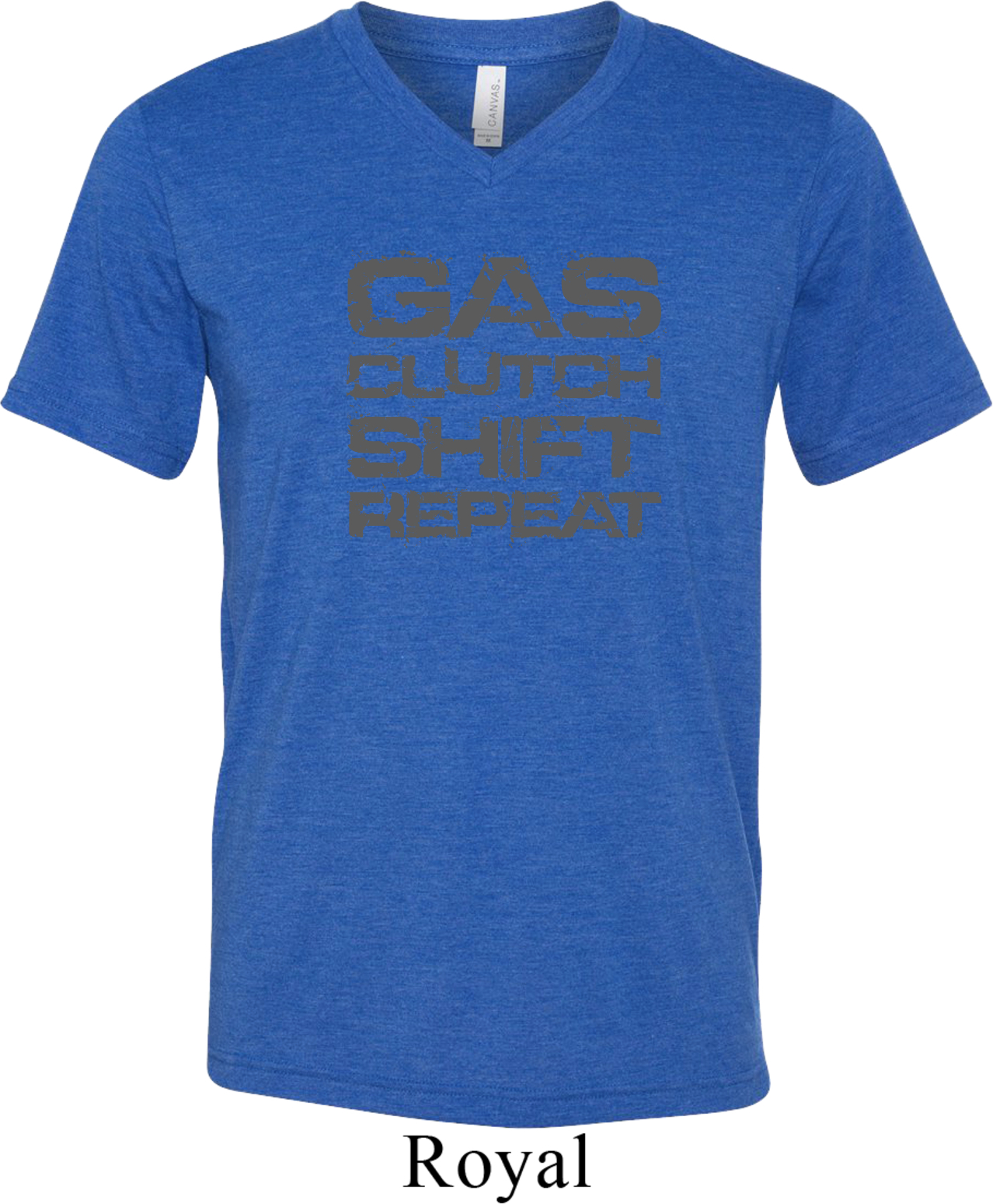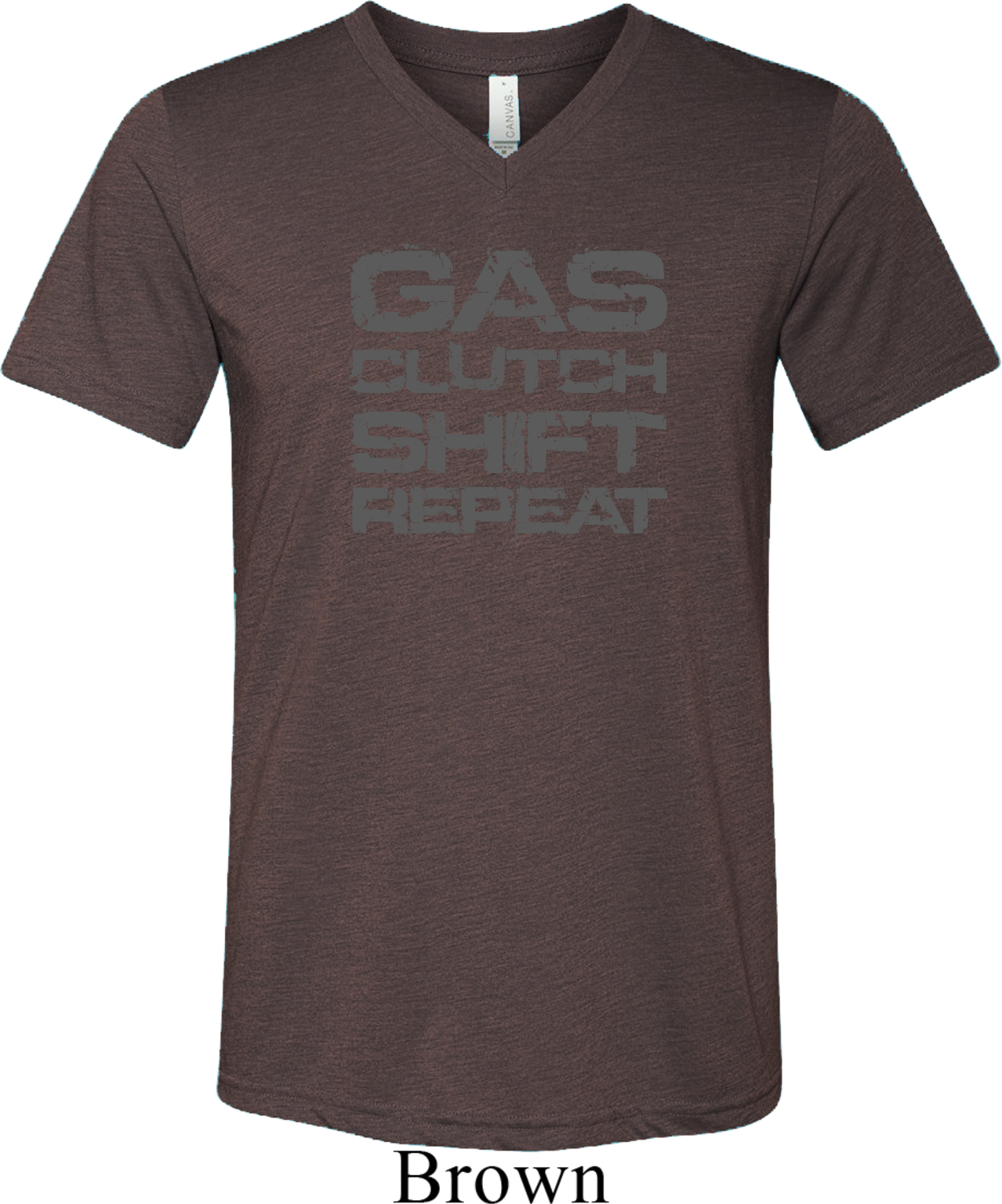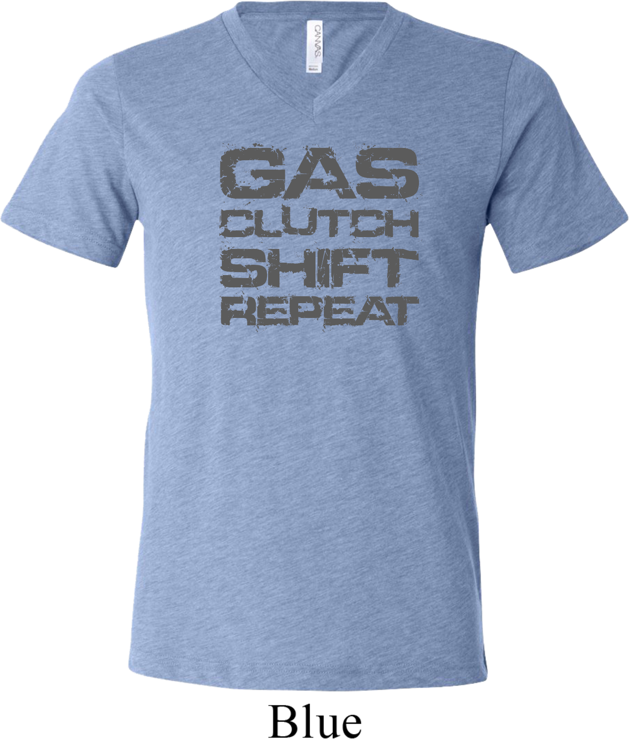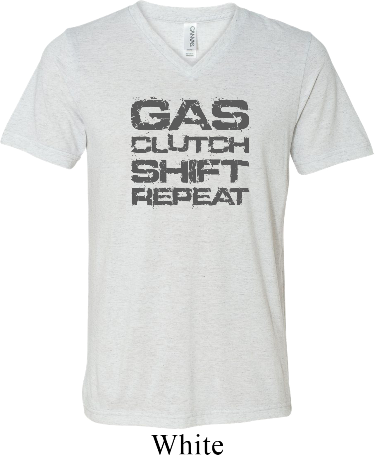 | | Gas Clutch Shift Repeat Grey Print Mens Tri Blend V-neck ShirtGas Clutch Shift Repeat Grey Print Mens Tri Blend V-neck Shirt Features the popular saying Gas, Clutch, Shift, Repeat. Makes a great gift for car enthusiast! A cotton/poly/rayon blend Available in Small, Medium, Large, XL & 2XL Also available in colors Aqua, Blue, Brown, Clay, Green, Navy, Oatmeal, Orange, Red, Royal, Teal, and White |