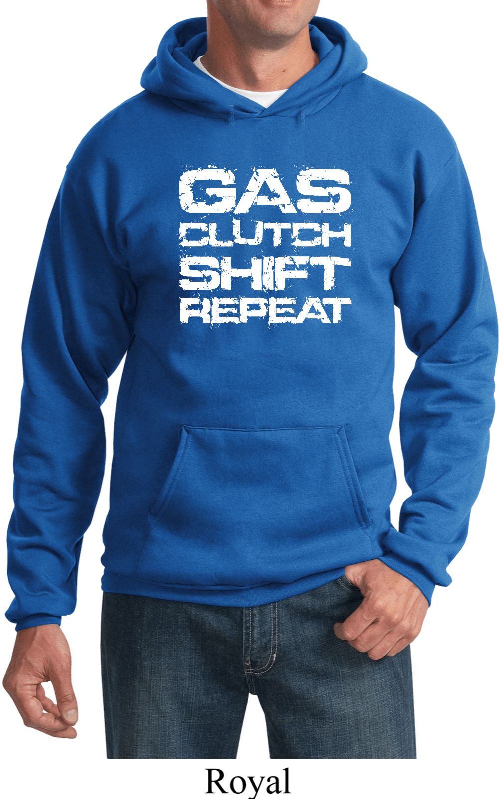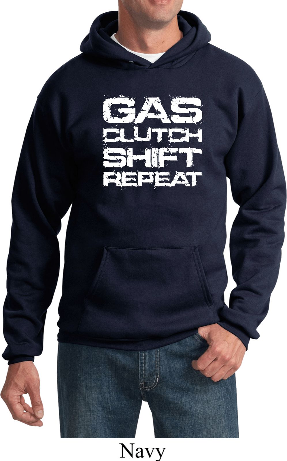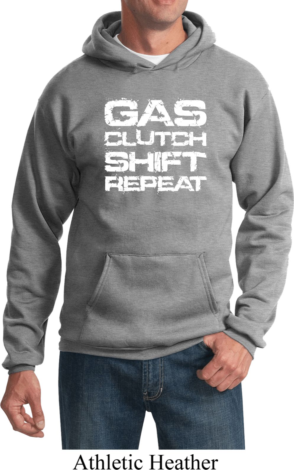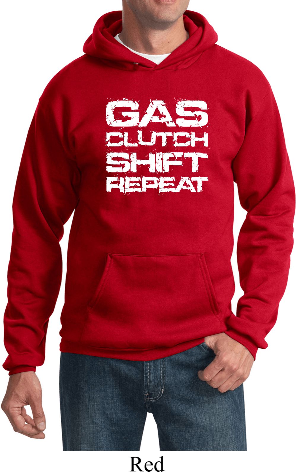 | | Gas Clutch Shift Repeat White Print HoodieGas Clutch Shift Repeat White Print Hoodie Features the classic saying Gas, Clutch, Shift, Repeat. Makes a perfect gift for all car enthusiast A cotton/poly blend Available in Small, Medium, Large, XL, 2XL, 3XL & 4XL Also available in colors Athletic Heather, Black, Chocolate, Dark Green, Gold, Kelly, Maroon, Navy, Orange, Purple, Red, and Royal ![]() |