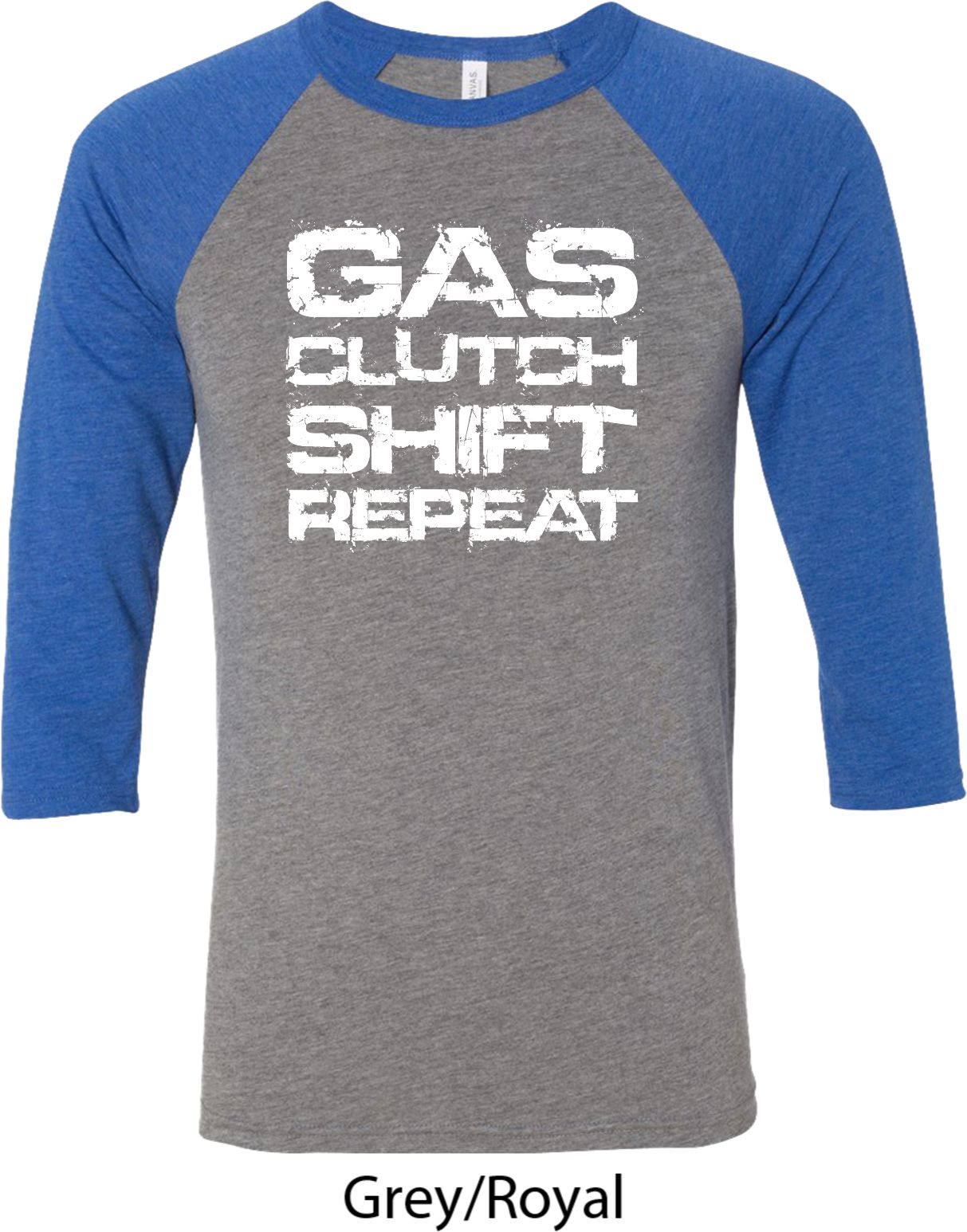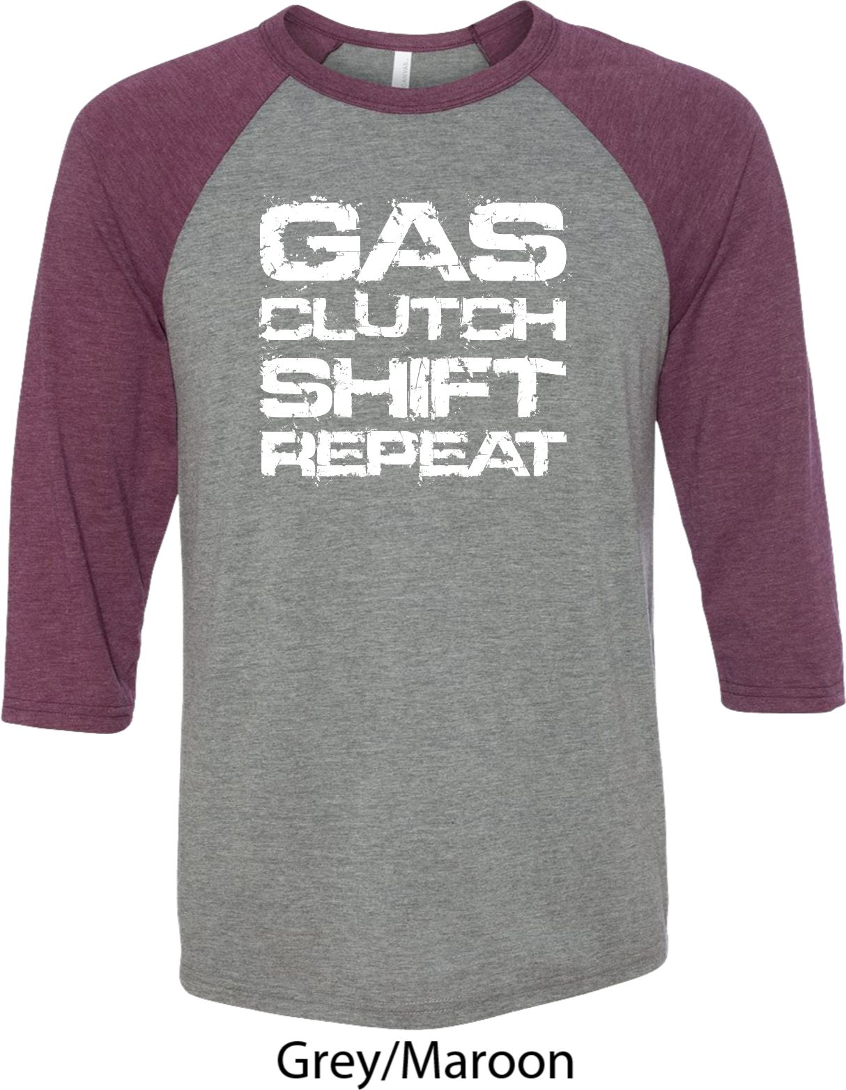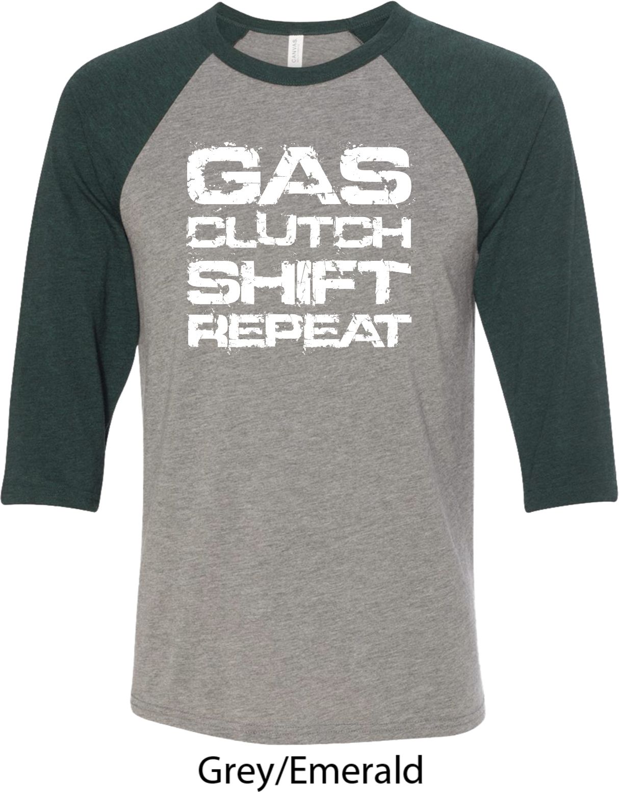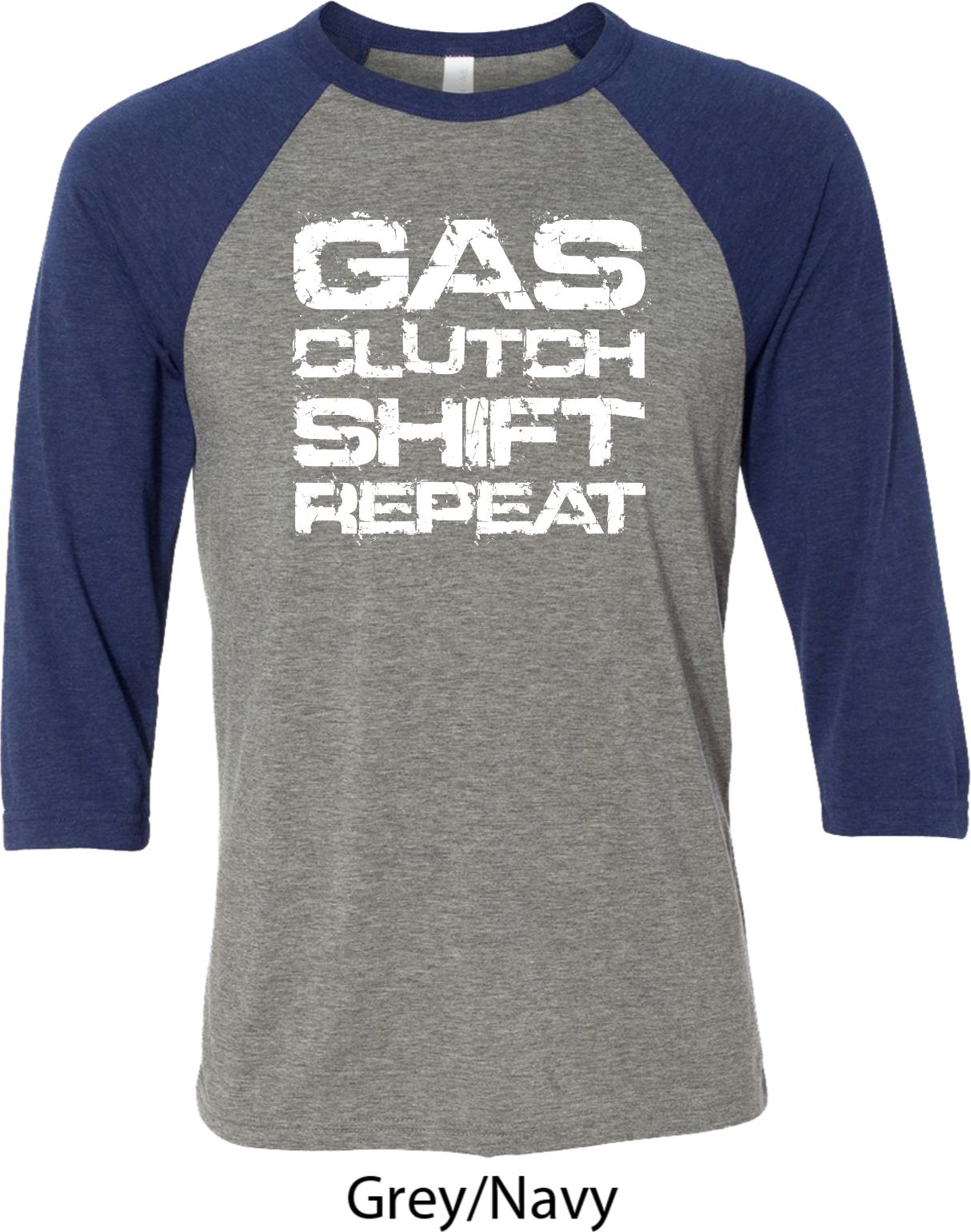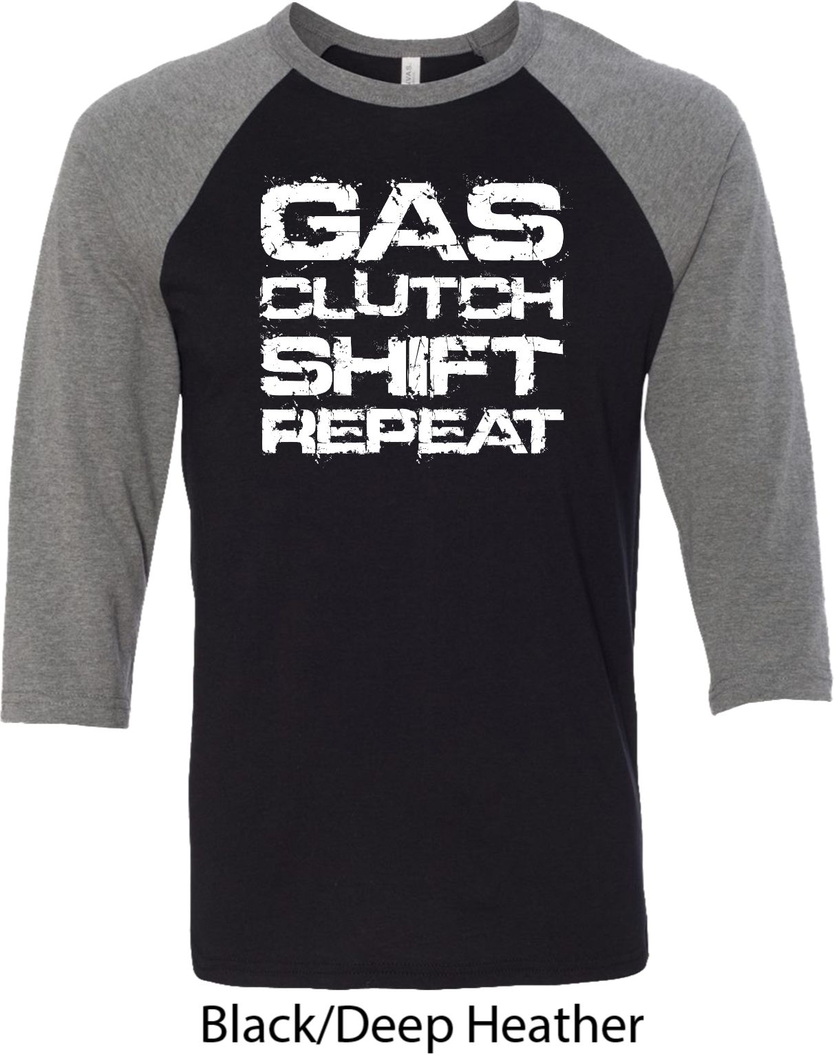 | | Gas Clutch Shift Repeat White Print Mens Raglan ShirtGas Clutch Shift Repeat White Print Mens Raglan Shirt Features the classic saying Gas, Clutch, Shift, Repeat. Makes a perfect gift for all car enthusiast A cotton/poly/rayon blend Available in Small, Medium, Large, XL & 2XL Also available in colors Black/Deep Heather, Black/Red, Black/White, Black Marble/Black, Deep Heather/Black, Grey/Charcoal Black, Grey/Emerald, Grey/Maroon, Grey/Navy, Grey/Red, and Grey/Royal |