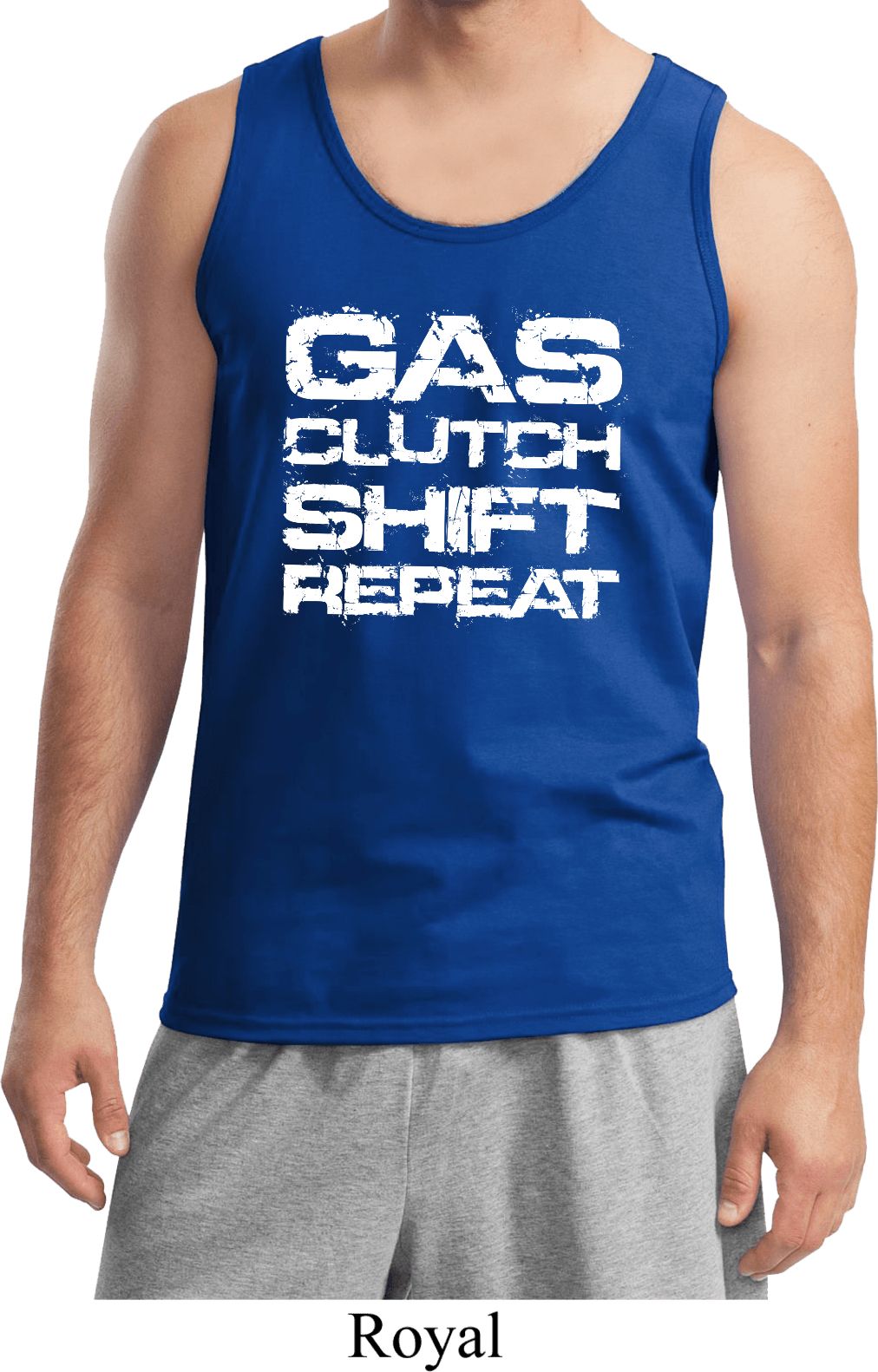 | | Gas Clutch Shift Repeat White Print Mens Tank TopGas Clutch Shift Repeat White Print Mens Tank Top Features the classic saying Gas, Clutch, Shift, Repeat. Makes a perfect gift for all car enthusiast 100% cotton Ash is a cotton/poly blend Available in Small, Medium, Large, XL & 2XL Also available in colors Black, Cardinal, Carolina Blue, Charcoal, Navy, Orange, Purple, Red, Royal, Sapphire, and Sports Grey ![]() |