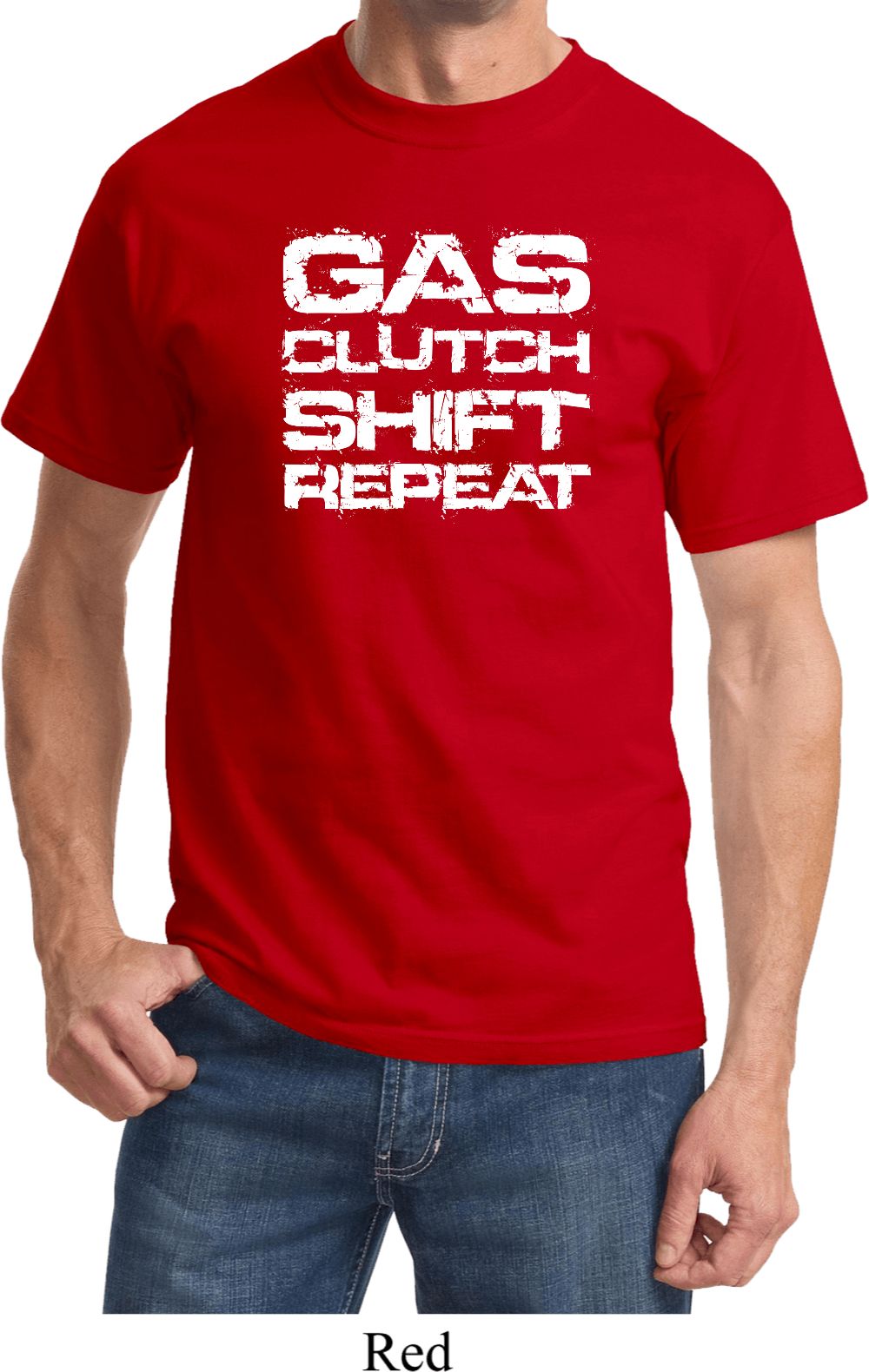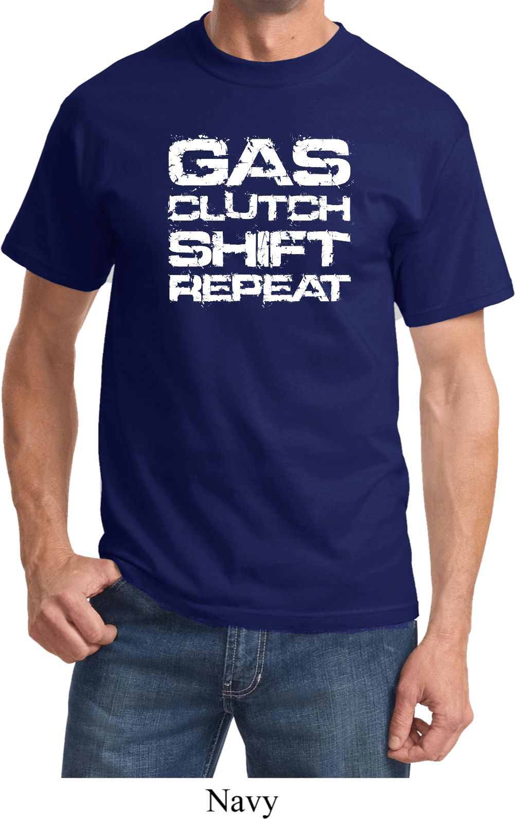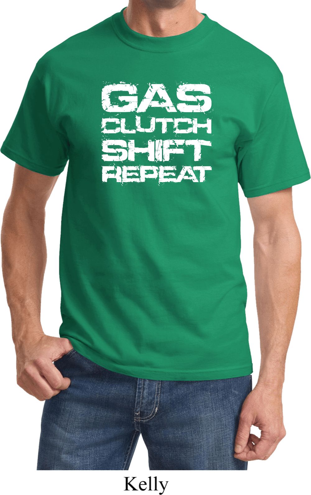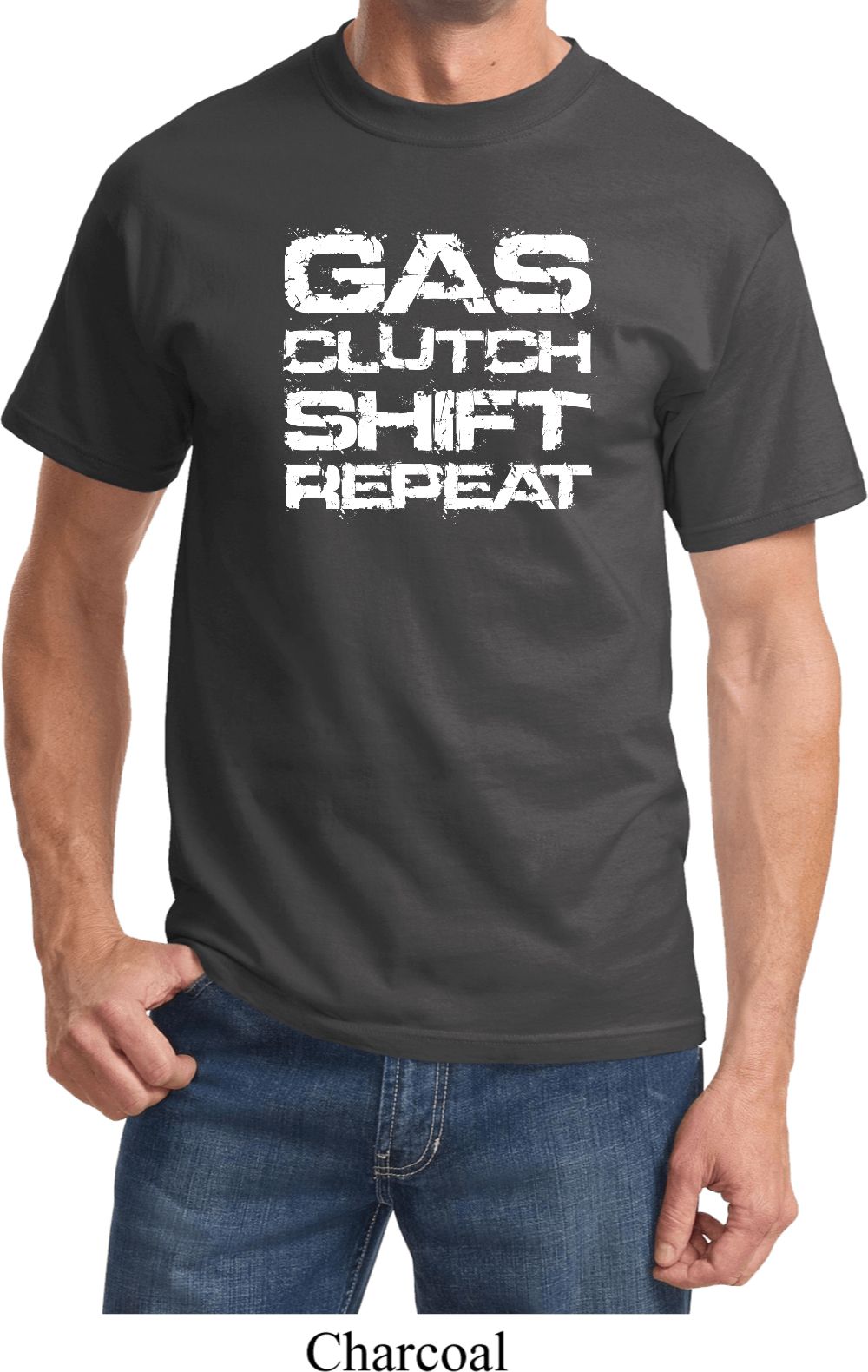 | | Gas Clutch Shift Repeat White Print ShirtGas Clutch Shift Repeat White Print Shirt Features the classic saying Gas, Clutch, Shift, Repeat. Makes a perfect gift for all car enthusiast 100% cotton Ash is a cotton/poly blend Available in Small, Medium, Large, XL, 2XL, 3XL, 4XL, 5XL & 6XL Also available in colors Black, Brown, Charcoal, Gold, Kelly, Light Blue, Navy, Olive, Orange, Purple, Red, Royal, and Sangria ![]() |