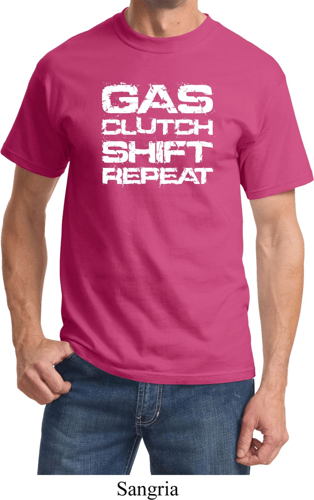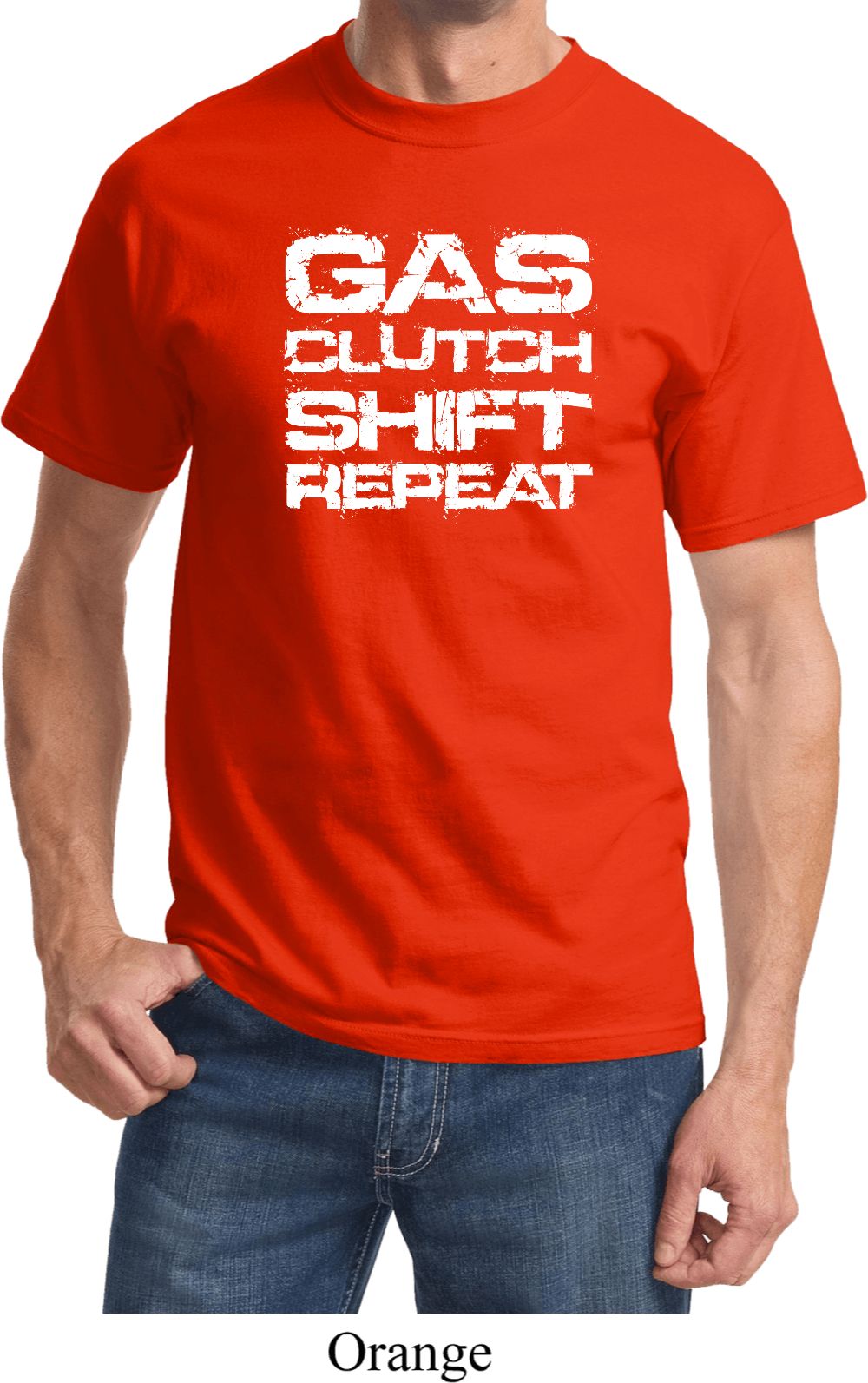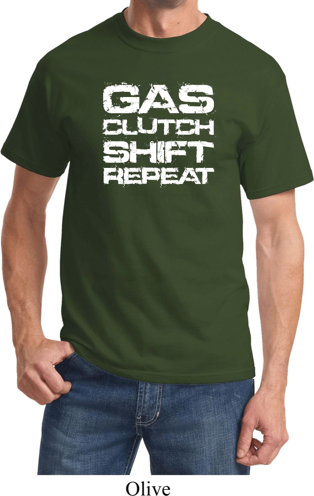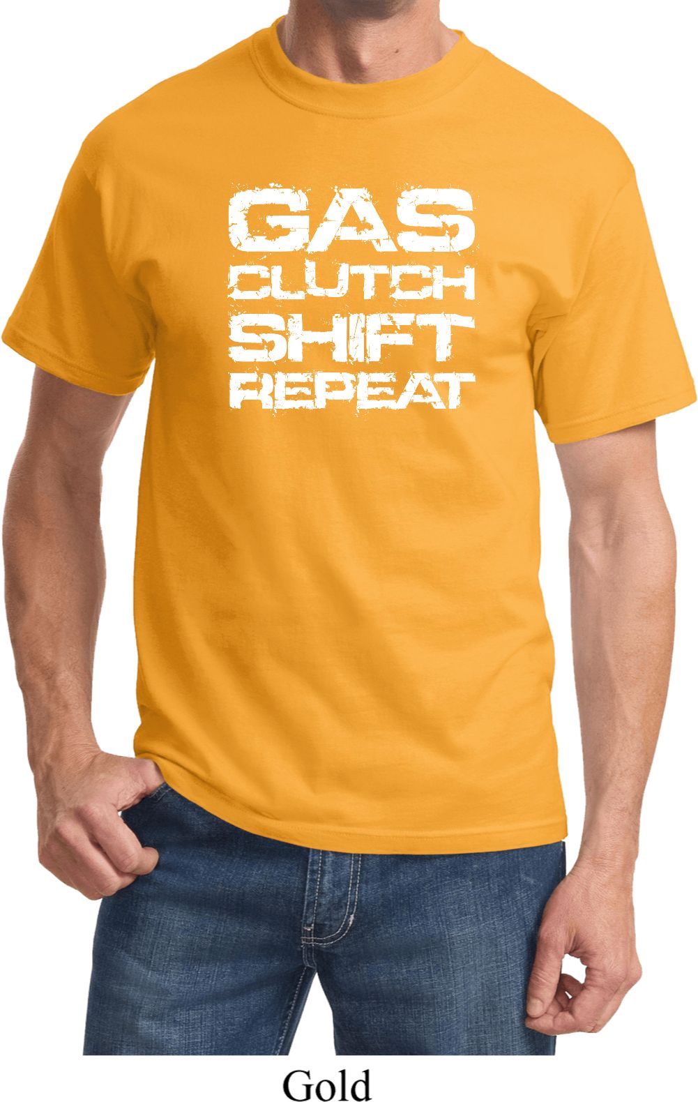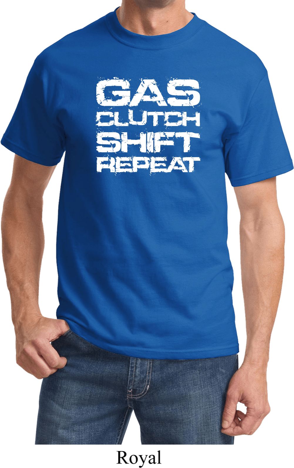 | | Gas Clutch Shift Repeat White Print ShirtGas Clutch Shift Repeat White Print Shirt Features the classic saying Gas, Clutch, Shift, Repeat. Makes a perfect gift for all car enthusiast 100% cotton Ash is a cotton/poly blend Available in Small, Medium, Large, XL, 2XL, 3XL, 4XL, 5XL & 6XL Also available in colors Black, Brown, Charcoal, Gold, Kelly, Light Blue, Navy, Olive, Orange, Purple, Red, Royal, and Sangria ![]() |