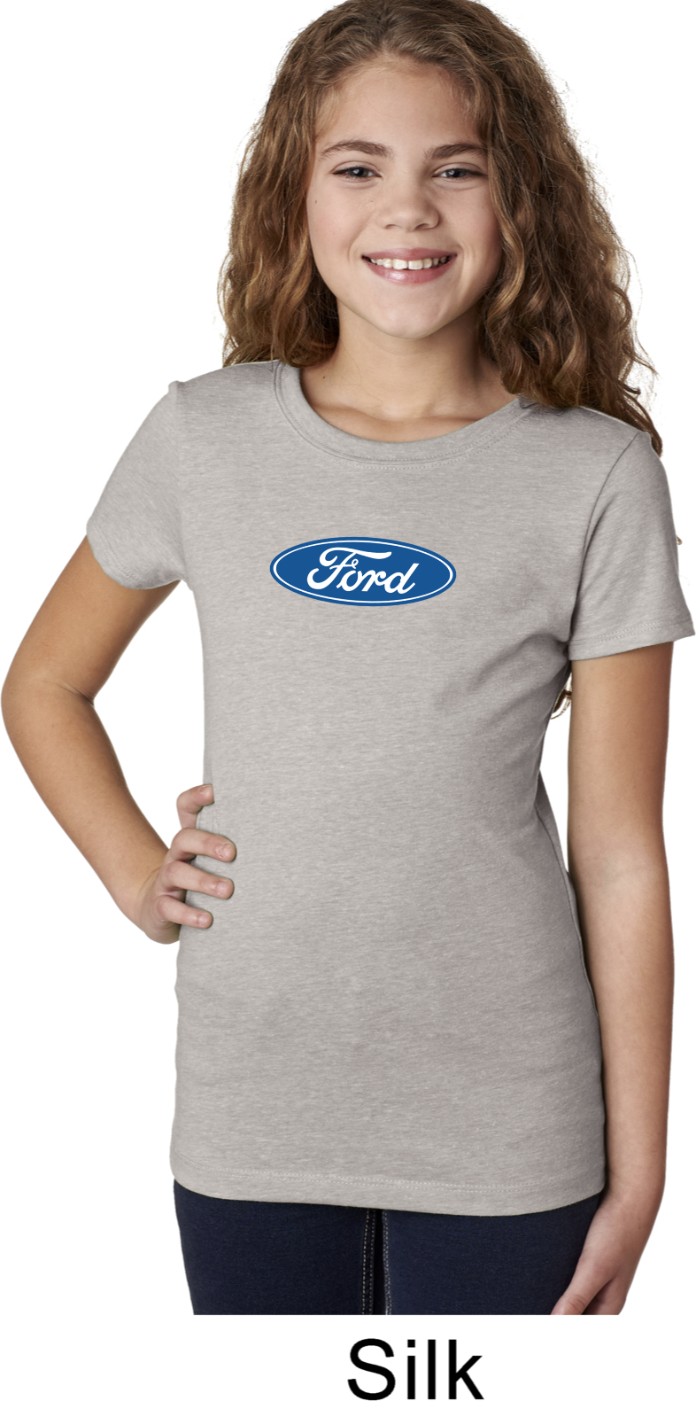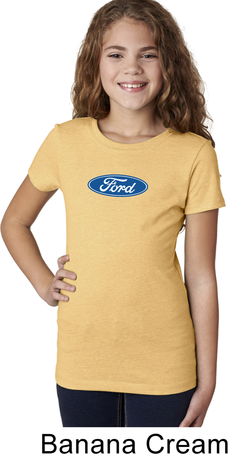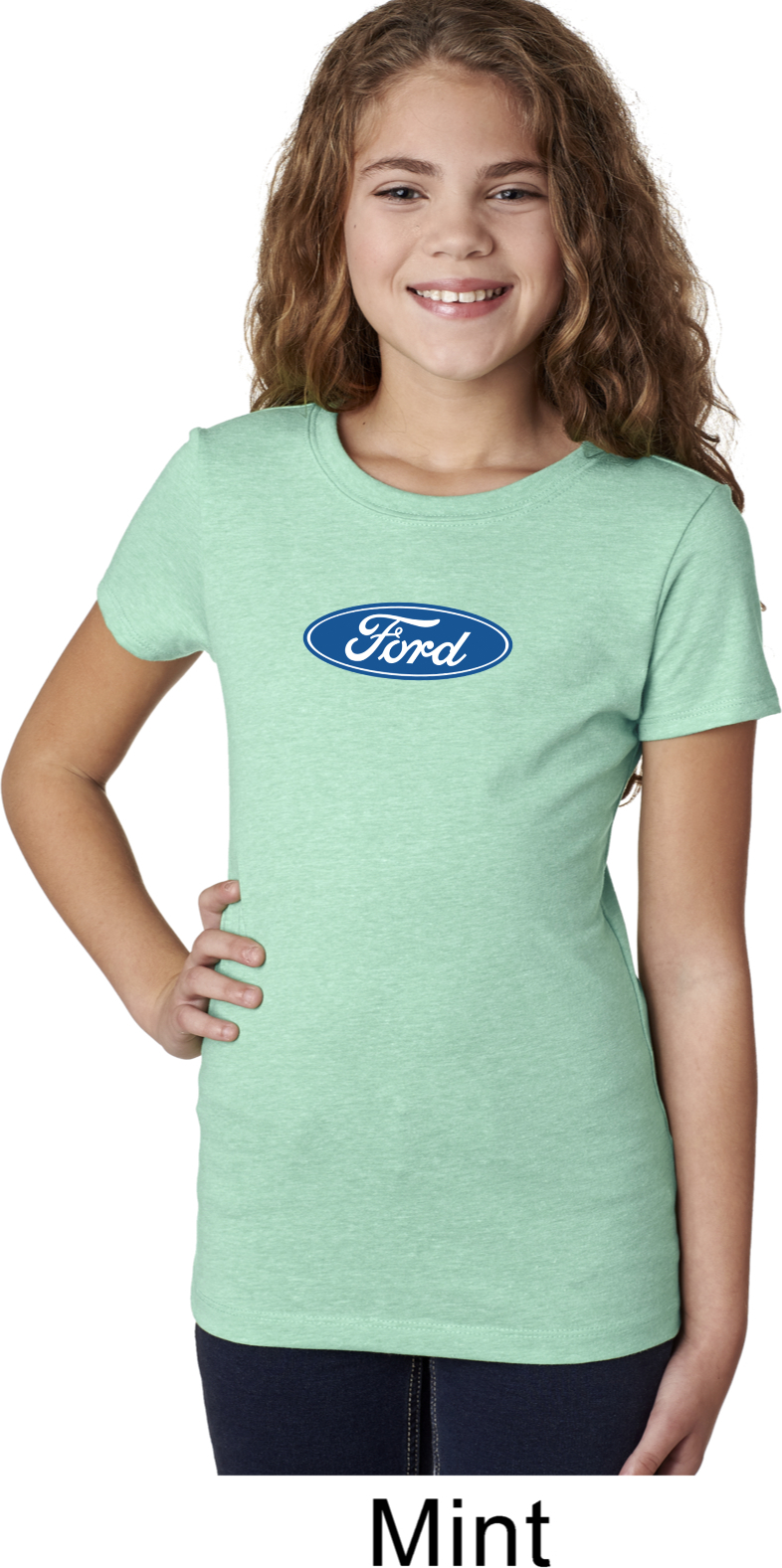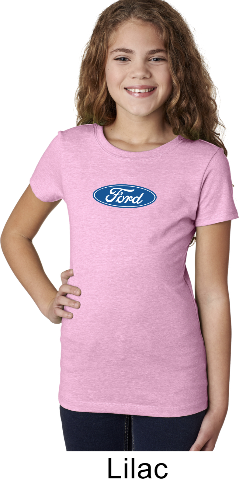 | | Girls Ford Shirt Ford Oval Middle Print Tee T-ShirtGirls Ford Shirt Ford Oval Middle Print Tee T-Shirt A cotton/poly blend Available in Youth XS, Youth Small, Youth Medium, Youth Large & Youth XL Also available in colors Apple Green, Banana Cream, Bondi Blue, Ice Blue, Lilac, Mint, Neon Green, Neon Orange, Neon Pink, Neon Yellow, Orange, Purple, Raspberry, and Silk |