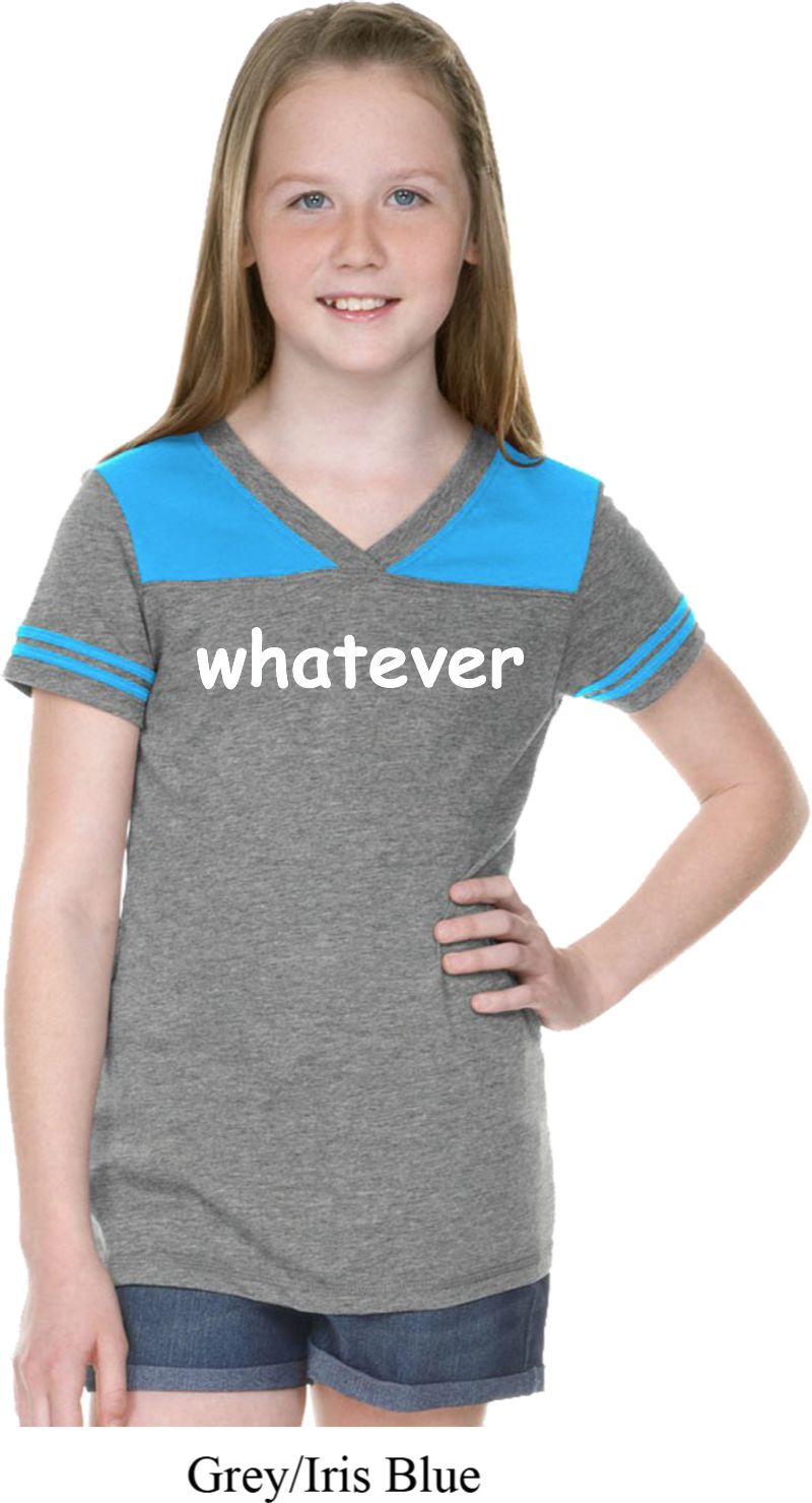 A cute girls shirt featuring Whatever. Made with a blend of cotton/poly. Perfect for all who use the popular saying. Available in sizes Small through XL. Machine wash cold with like colors; dry low heat.