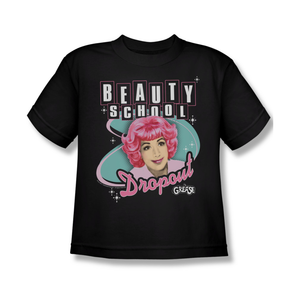 | | Grease Shirt Kids Beauty School Dropout Black Youth Tee T-ShirtGrease Shirt Kids Beauty School Dropout Black Youth Tee T-Shirt Officially Licensed Available in Small(6-8), Medium(10-12), Large(14-16), & XL(18-20), Also available in Toddler sizes: Small (4), Medium (5/6), & Large (7) Our Grease shirts is a Paramount Pictures film perfect for any fans of this movie. ![]() |