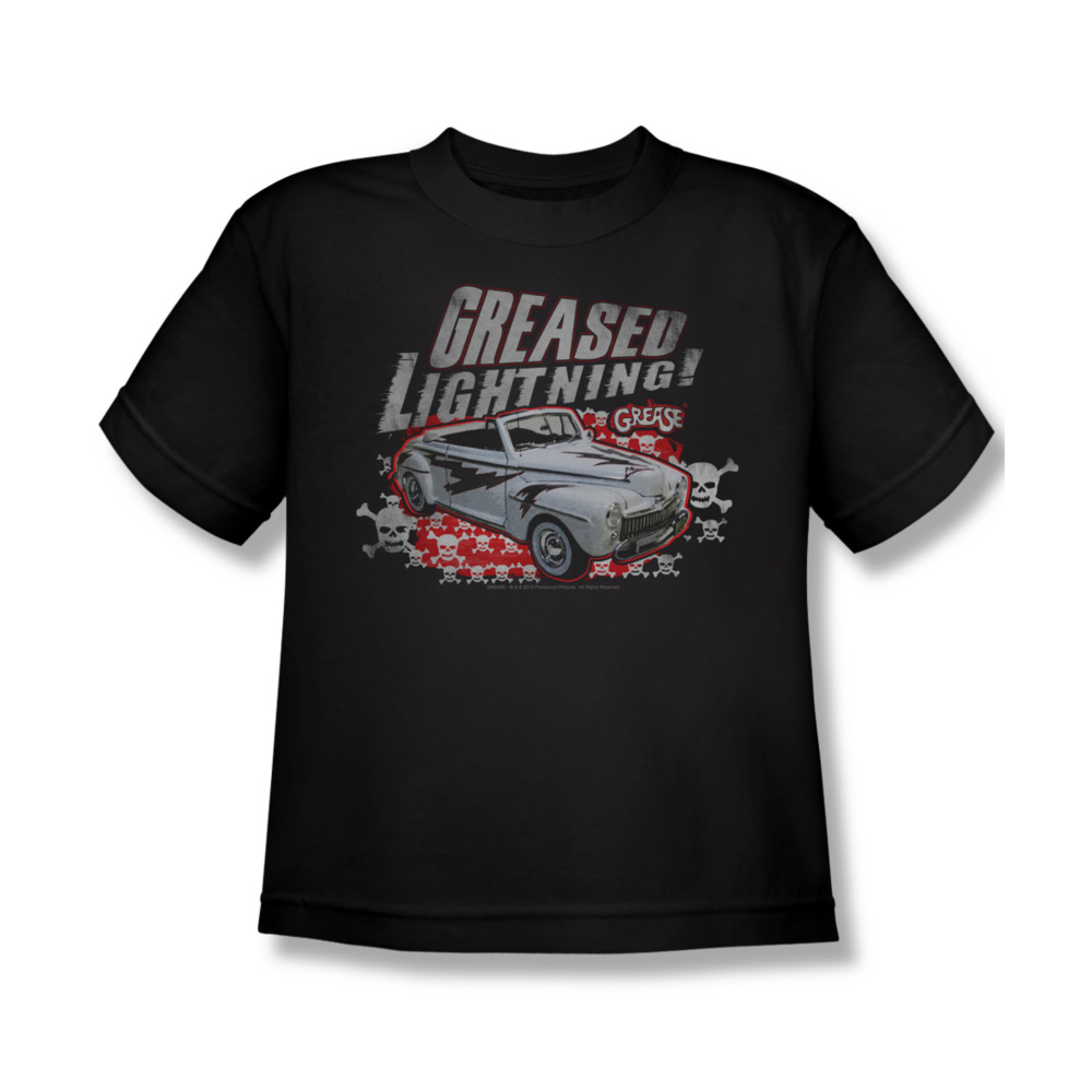 | | Grease Shirt Kids Greased Lightening Black Youth Tee T-ShirtGrease Shirt Kids Greased Lightening Black Youth Tee T-Shirt Officially Licensed Available in Small(6-8), Medium(10-12), Large(14-16), & XL(18-20), Also available in Toddler sizes: Small (4), Medium (5/6), & Large (7) Our Grease shirts is a Paramount Pictures film perfect for any fans of this movie. ![]() |