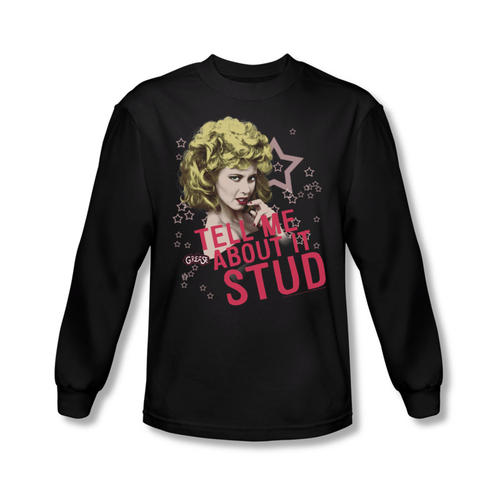 | | Grease Shirt Tell Me About It Stud Long Sleeve Black Tee T-ShirtGrease Shirt Tell Me About It Stud Long Sleeve Black Tee T-Shirt Officially Licensed Available in Small, Medium, Large, XL, 2XL Our Grease shirts is a Paramount Pictures film perfect for any fans of this movie. ![]() |