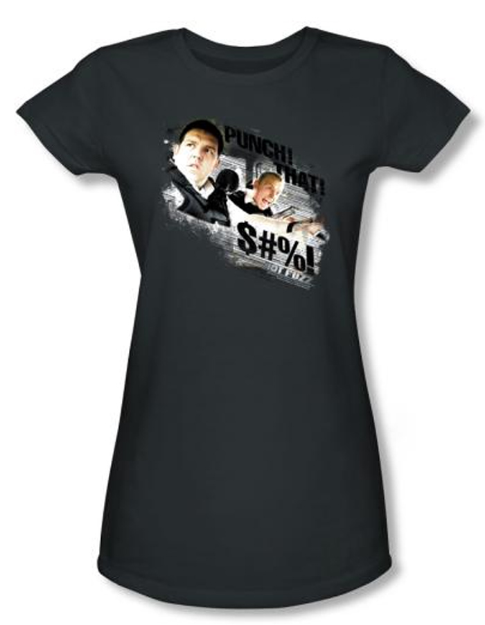 Hot Fuzz Juniors T-shirt Movie Punch That Charcoal Tee Shirt