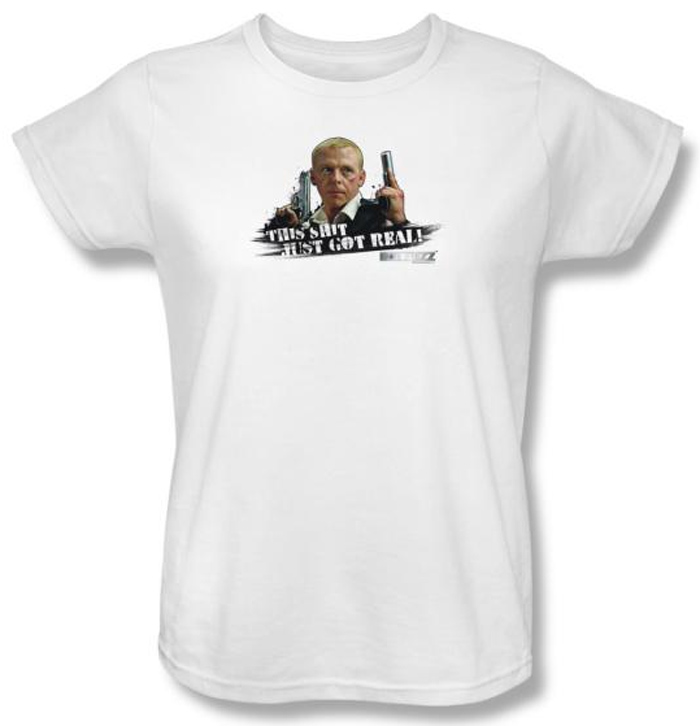 Hot Fuzz Ladies T-shirt Movie Just Got Real White Tee Shirt