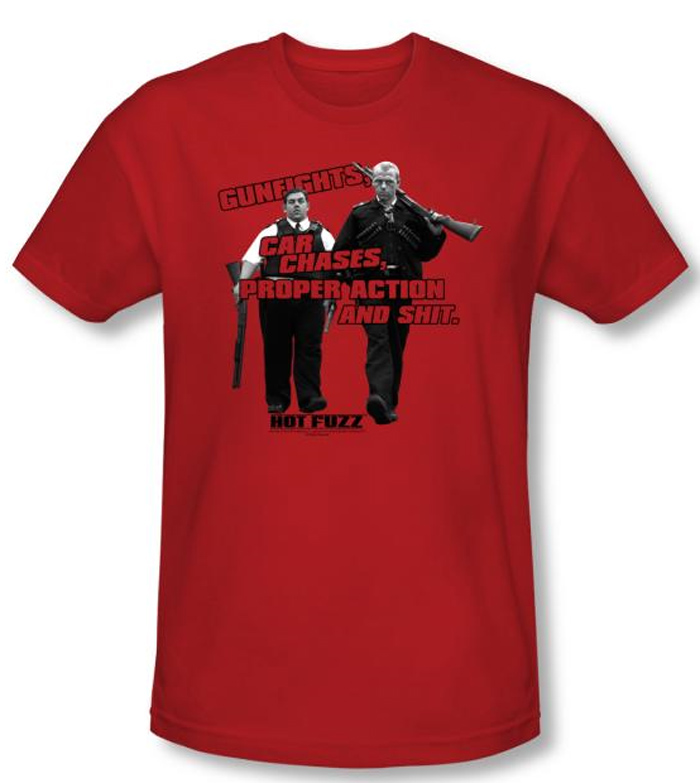 Hot Fuzz T-shirt Movie Days Work Adult Red Slim Fit Tee Shirt