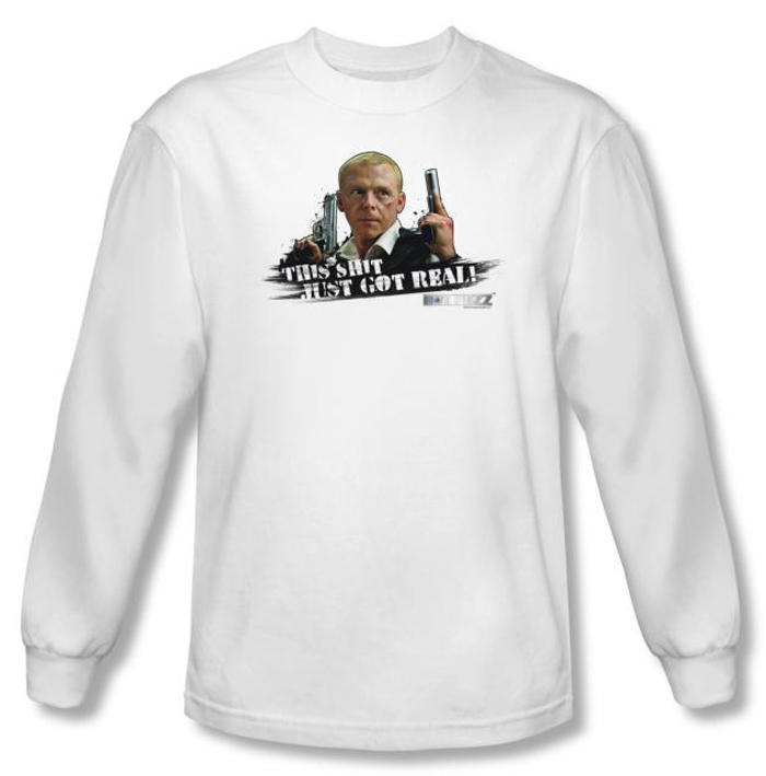 Hot Fuzz T-shirt Movie Just Got Real Adult White Long Sleeve Tee Shirt