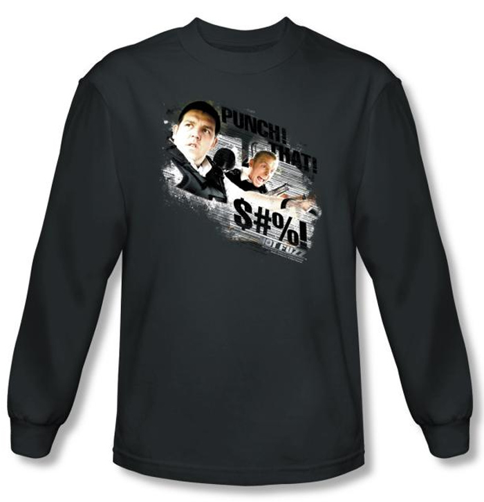 Hot Fuzz T-shirt Movie Punch That Adult Charcoal Long Sleeve Tee Shirt