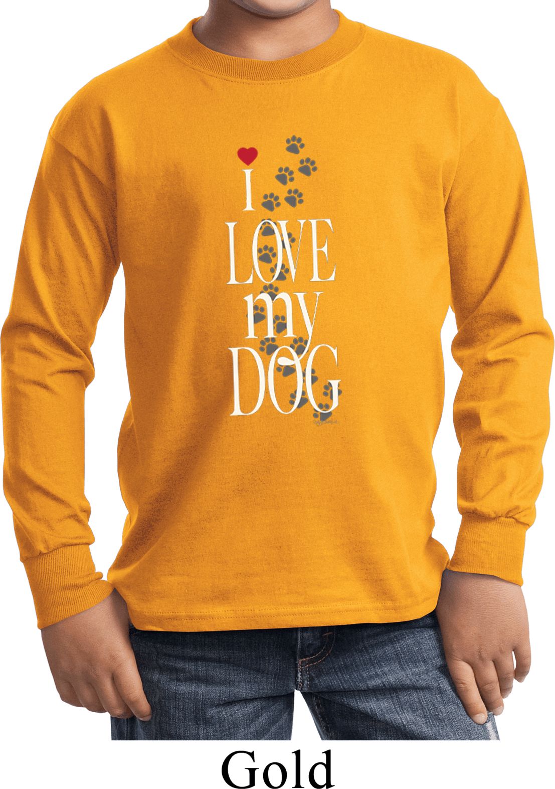 | | I Love My Dog Kids Long Sleeve ShirtI Love My Dog Kids Long Sleeve Shirt A great shirt for those who love their dog! 100% cotton Ash and athletic heather are a cotton/poly blend Available in Youth Small, Youth Medium, Youth Large & Youth XL Also available in colors Black, Charcoal, Dark Green, Gold, Navy, Purple, and Royal ![]() |