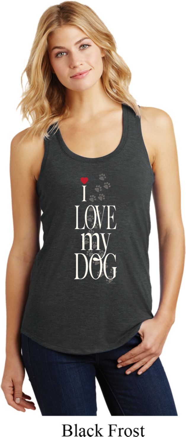 | | I Love My Dog Ladies Racerback Tank TopI Love My Dog Ladies Racerback Tank Top A great shirt for those who love their dog! A cotton/poly/rayon blend Available in Ladies Small, Ladies Medium, Ladies Large, Ladies XL, Ladies 2XL, Ladies 3XL & Ladies 4XL Also available in colors Black Frost, Navy Frost, Purple Frost, and Royal Frost |