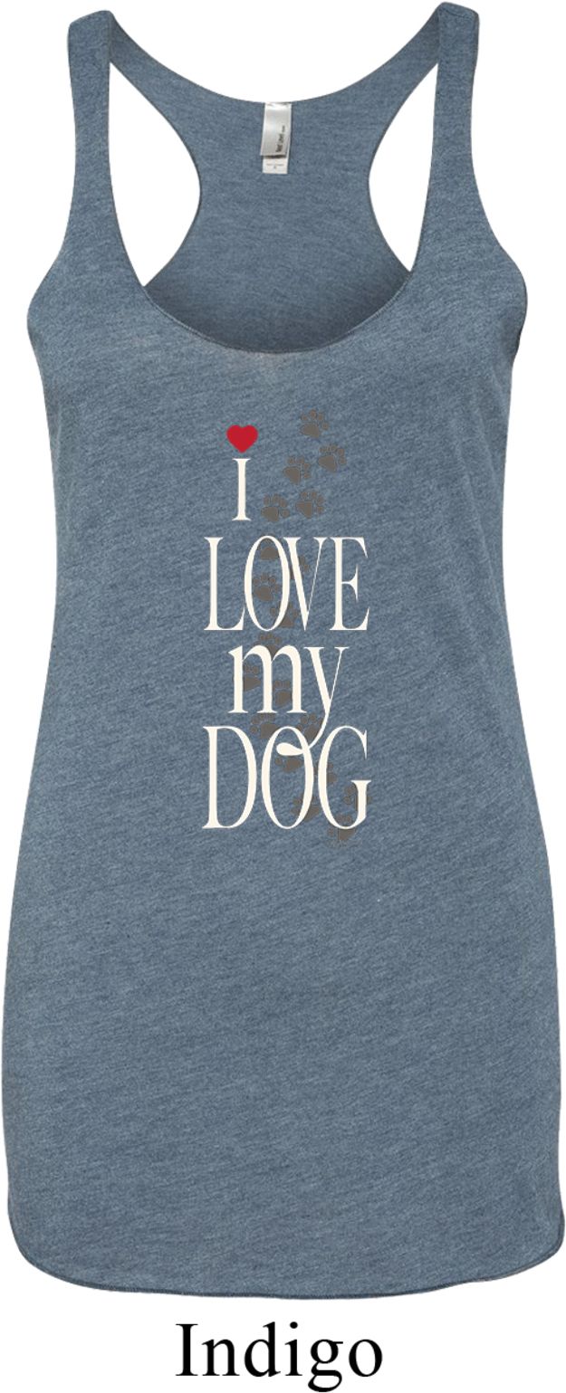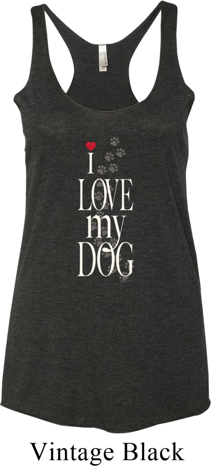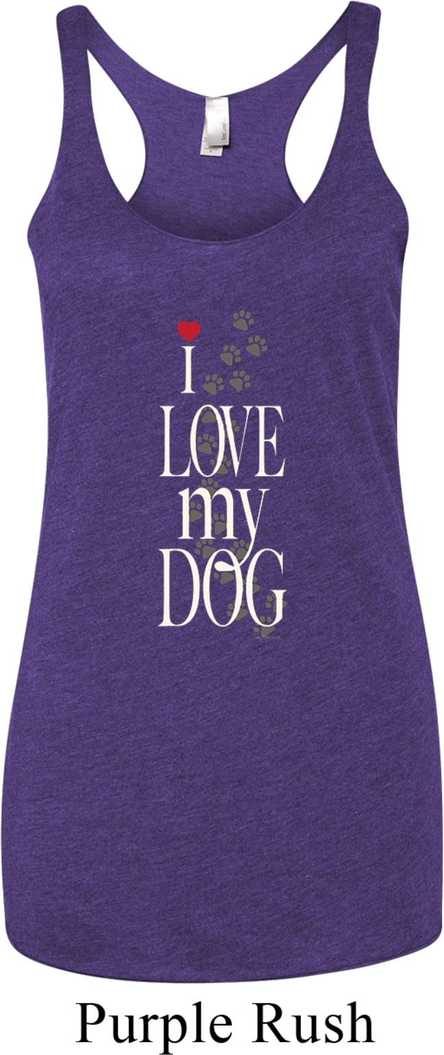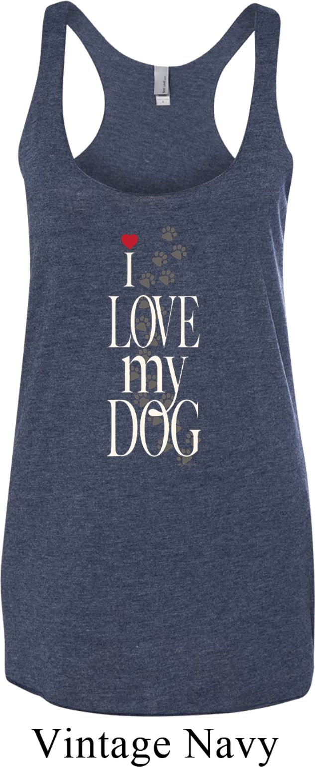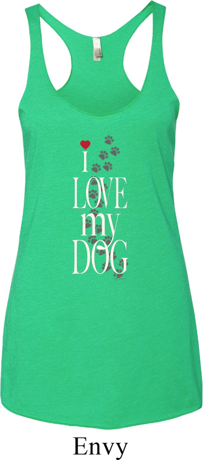 | | I Love My Dog Ladies Tri Blend Racerback Tank TopI Love My Dog Ladies Tri Blend Racerback Tank Top A great shirt for those who love their dog A cotton/poly/rayon blend Available in Ladies XS, Ladies Small, Ladies Medium, Ladies Large & Ladies XL Also available in colors Envy, Indigo, Purple Rush, Vintage Black, Vintage Navy, and Vintage Royal |