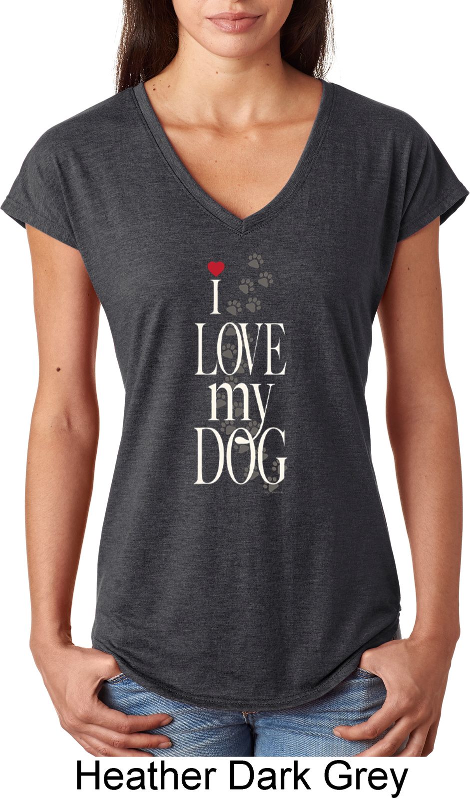 | | I Love My Dog Ladies Tri Blend V-Neck ShirtI Love My Dog Ladies Tri Blend V-Neck Shirt A great shirt for those who love their dog! A poly/cotton/rayon blend Available in Ladies Small, Ladies Medium, Ladies Large, Ladies XL & Ladies 2XL Also available in colors Black, Heather Aubergine, Heather Caribbean, Heather Dark Green, Heather Dark Grey, Heather Galapagos, Heather Green, and Heather Purple |