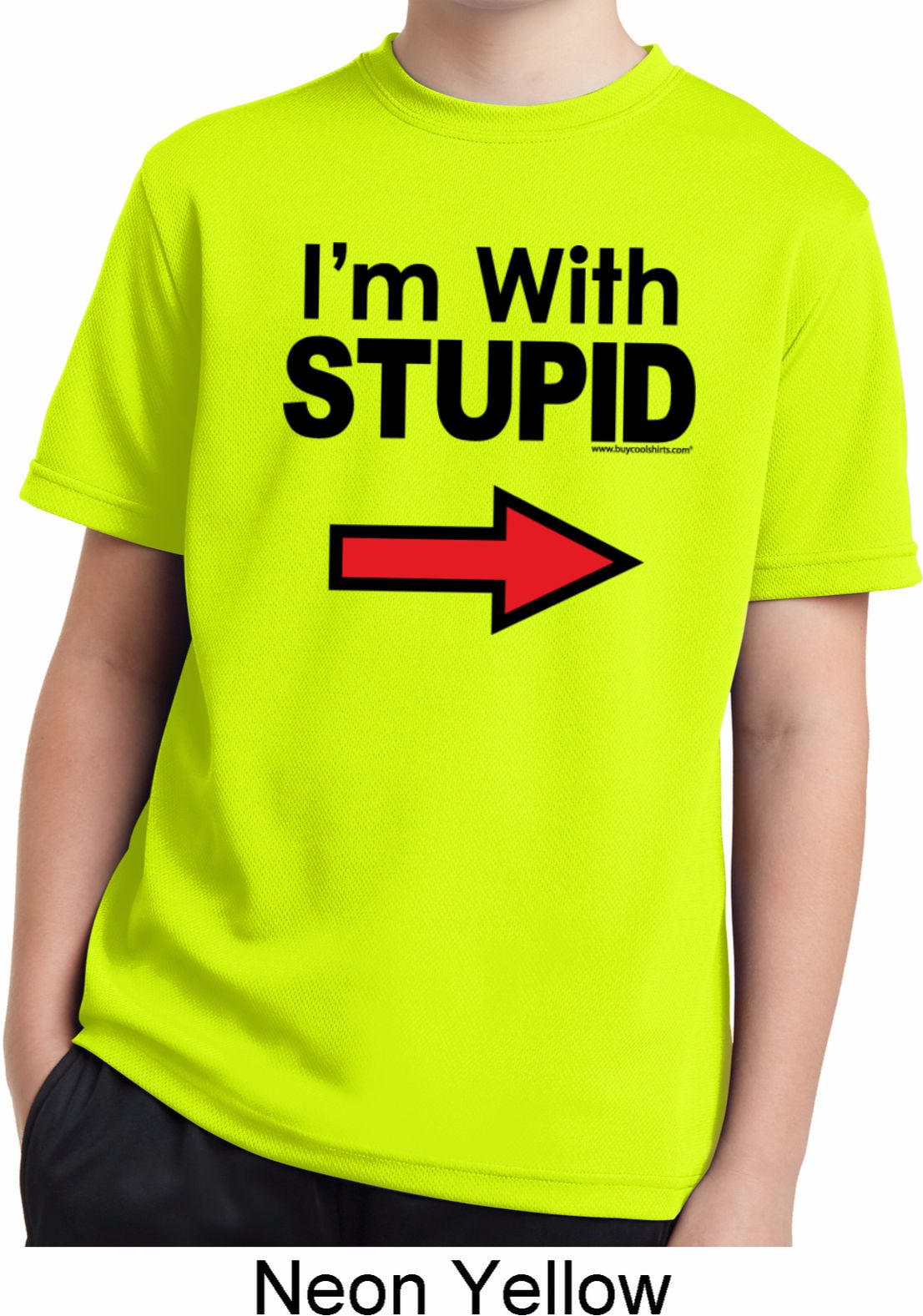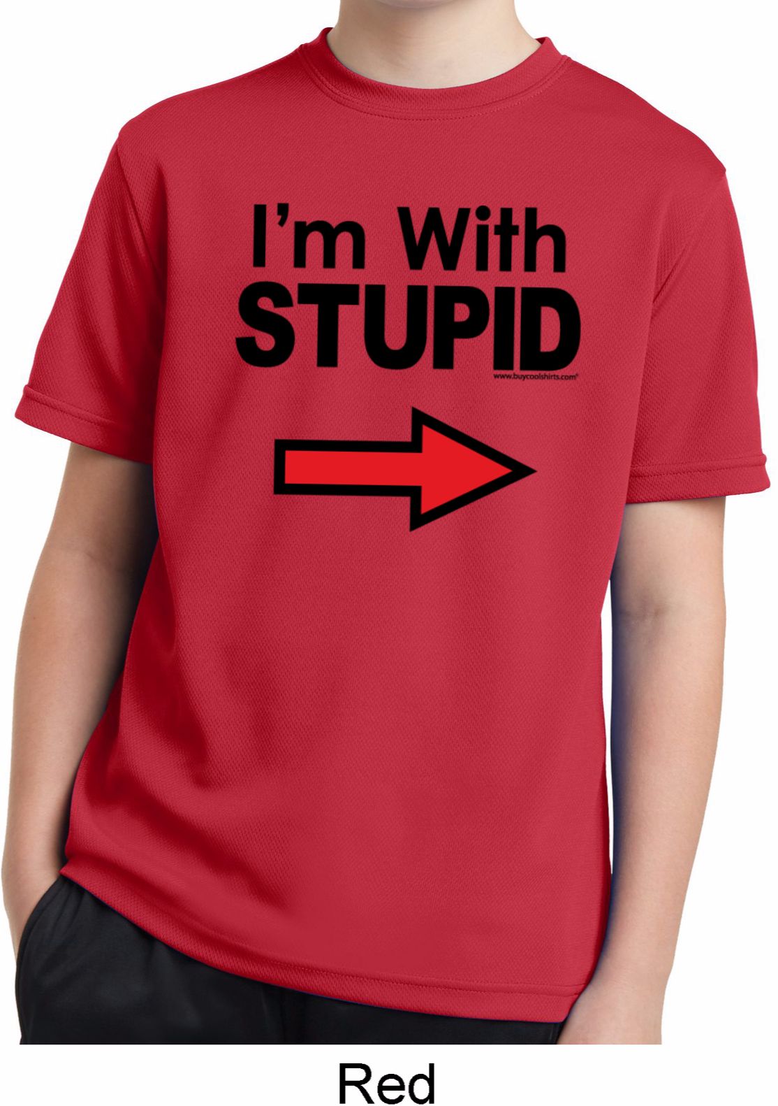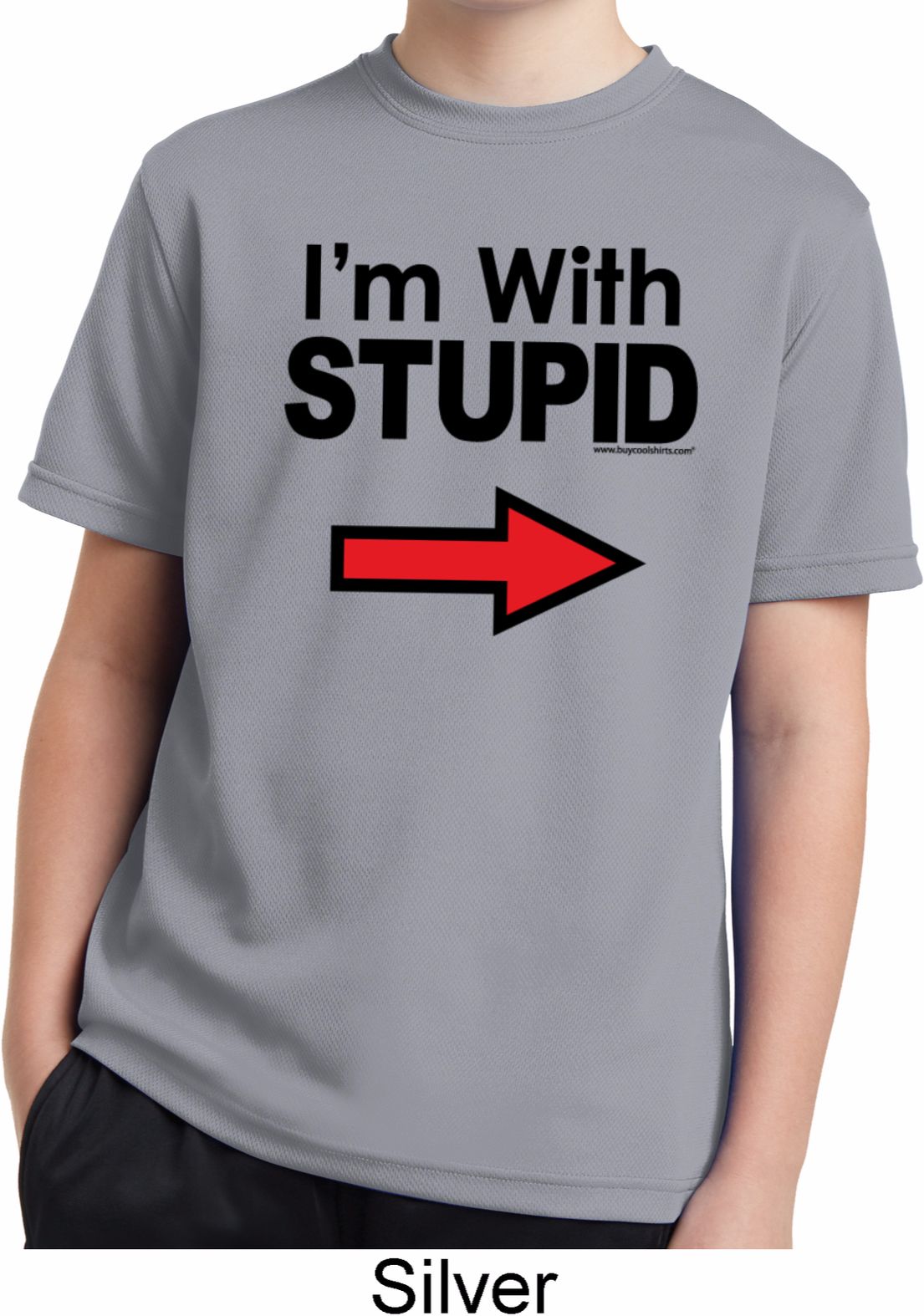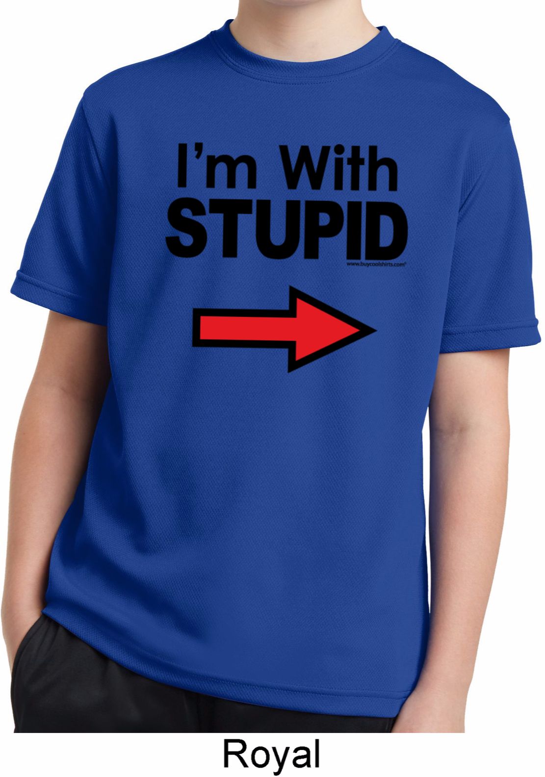 | | I'm With Stupid Black Print Kids Moisture Wicking ShirtI'm With Stupid Black Print Kids Moisture Wicking Shirt A funny shirt to wear with friends or family 100% Polyester Available in Youth Small, Youth Medium, Youth Large & Youth XL Also available in colors Bright Pink, Gold, Neon Green, Neon Yellow, Red, Royal, Silver, and White |