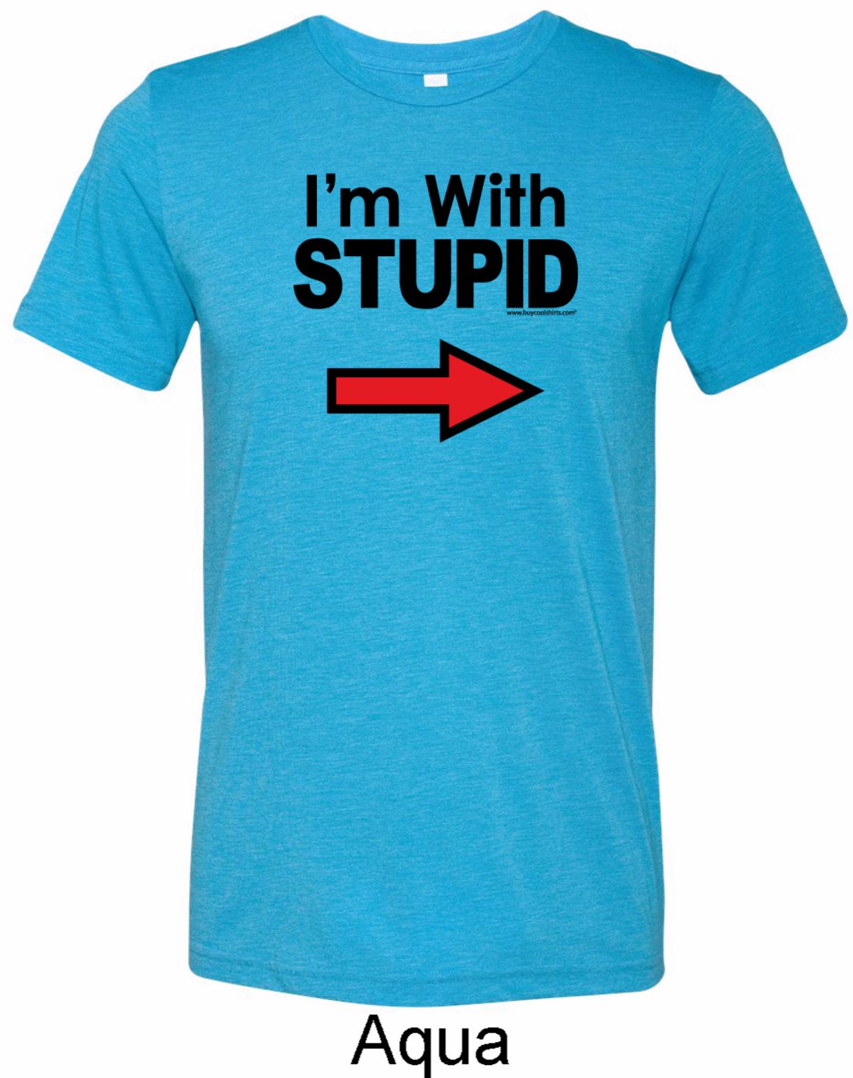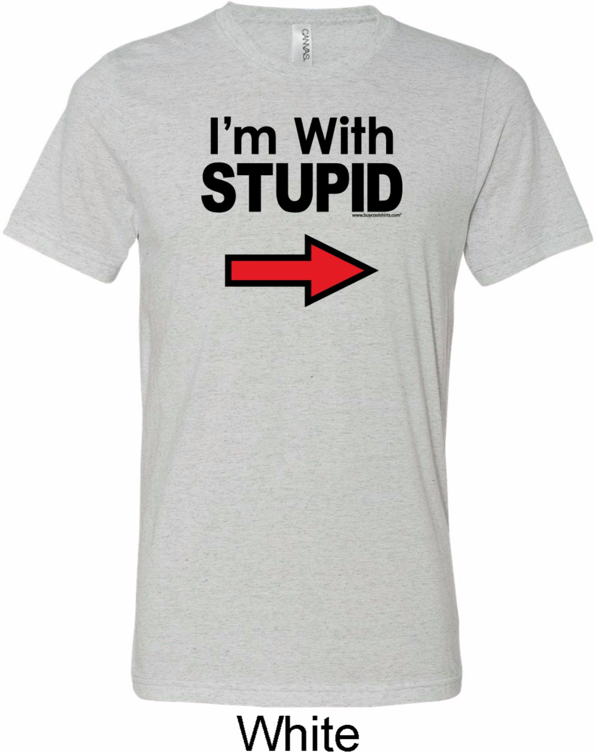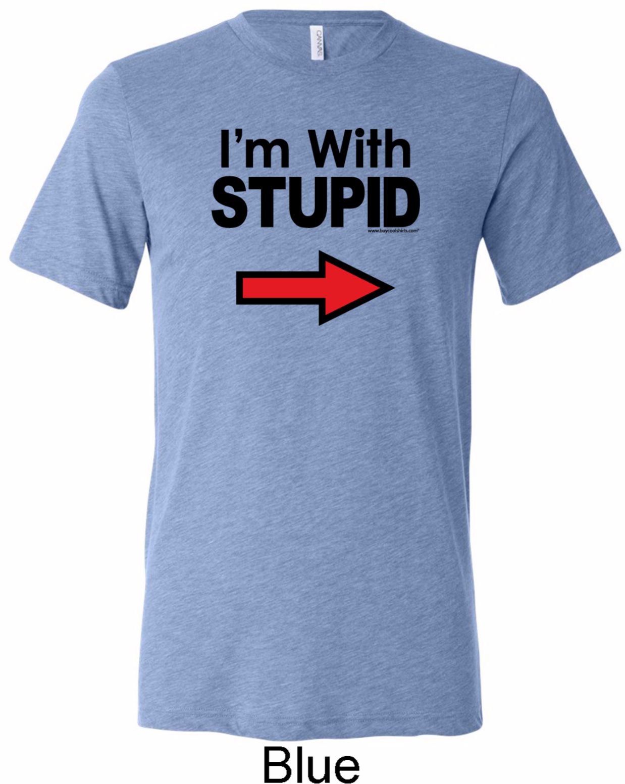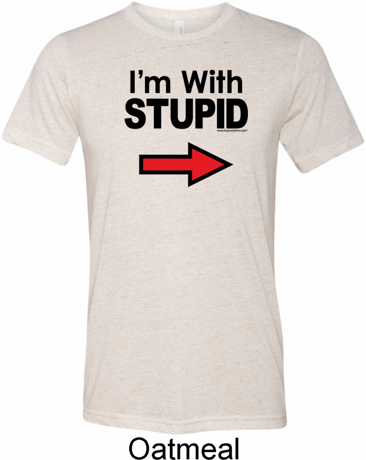 | | I'm With Stupid Black Print Mens Tri Blend Crewneck ShirtI'm With Stupid Black Print Mens Tri Blend Crewneck Shirt A funny shirt to wear with friends or family A cotton/poly/rayon blend Available in Small, Medium, Large, XL & 2XL Also available in colors Aqua, Athletic Grey, Berry, Blue, Clay, Green, Grey, Oatmeal, Orange, Red, Teal, Royal, and White Fleck |