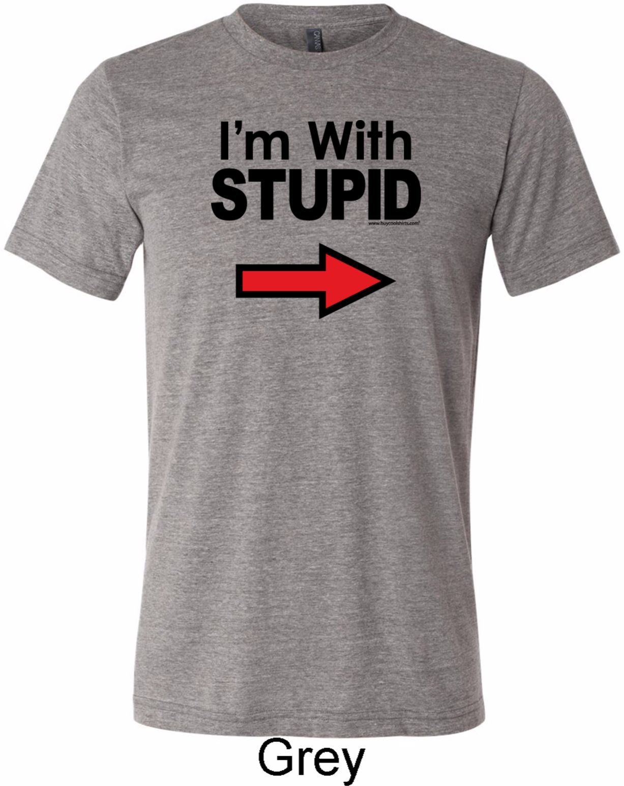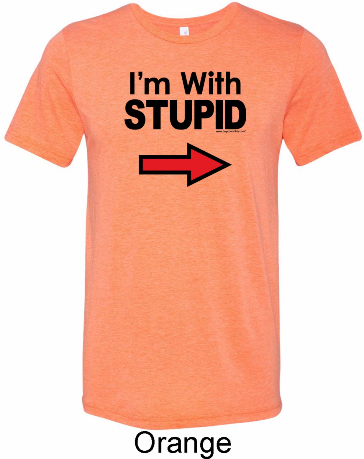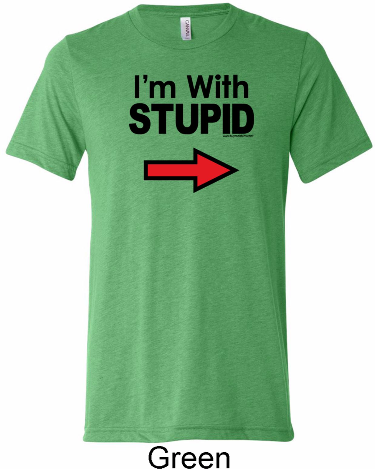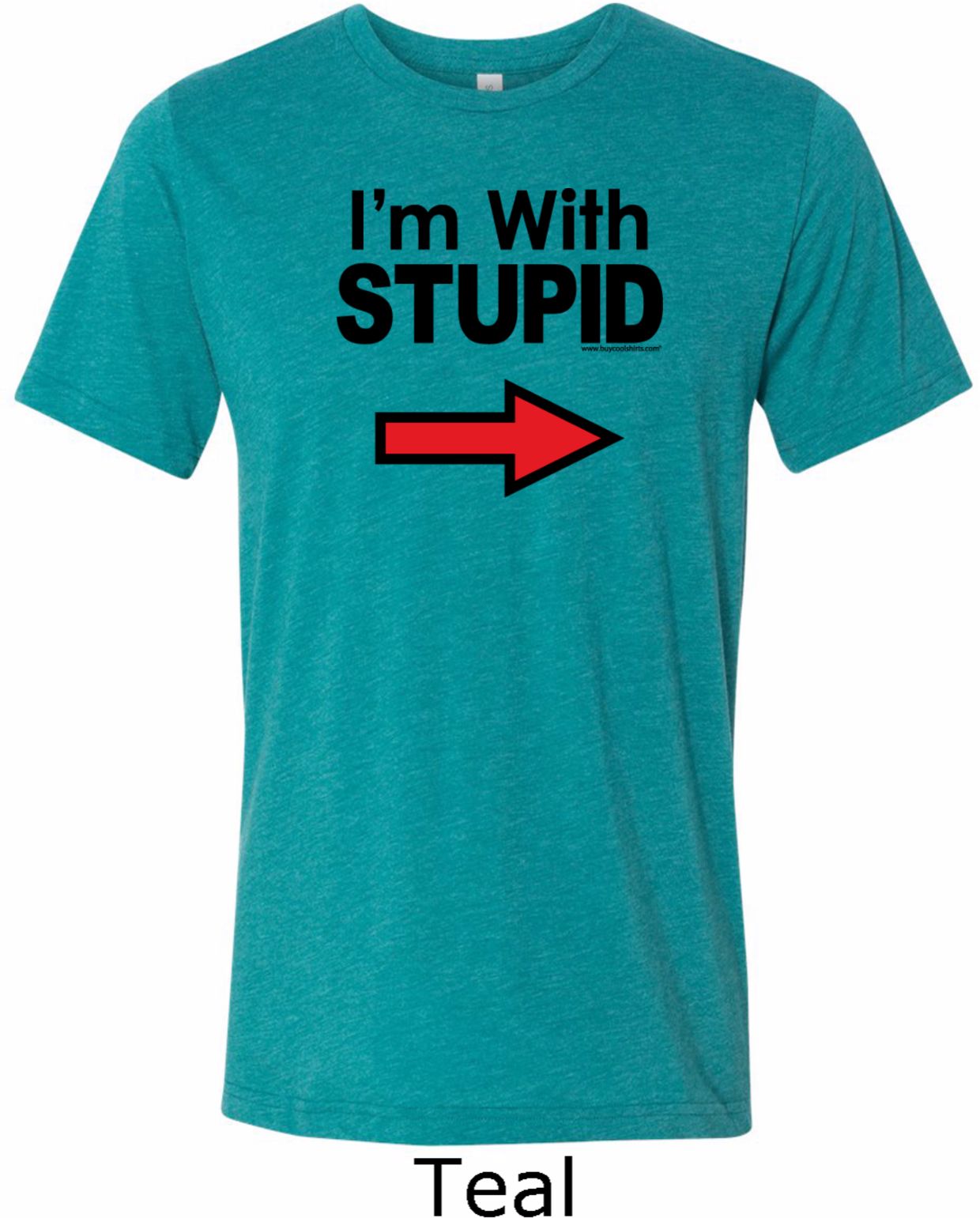 | | I'm With Stupid Black Print Mens Tri Blend Crewneck ShirtI'm With Stupid Black Print Mens Tri Blend Crewneck Shirt A funny shirt to wear with friends or family A cotton/poly/rayon blend Available in Small, Medium, Large, XL & 2XL Also available in colors Aqua, Athletic Grey, Berry, Blue, Clay, Green, Grey, Oatmeal, Orange, Red, Teal, Royal, and White Fleck |
