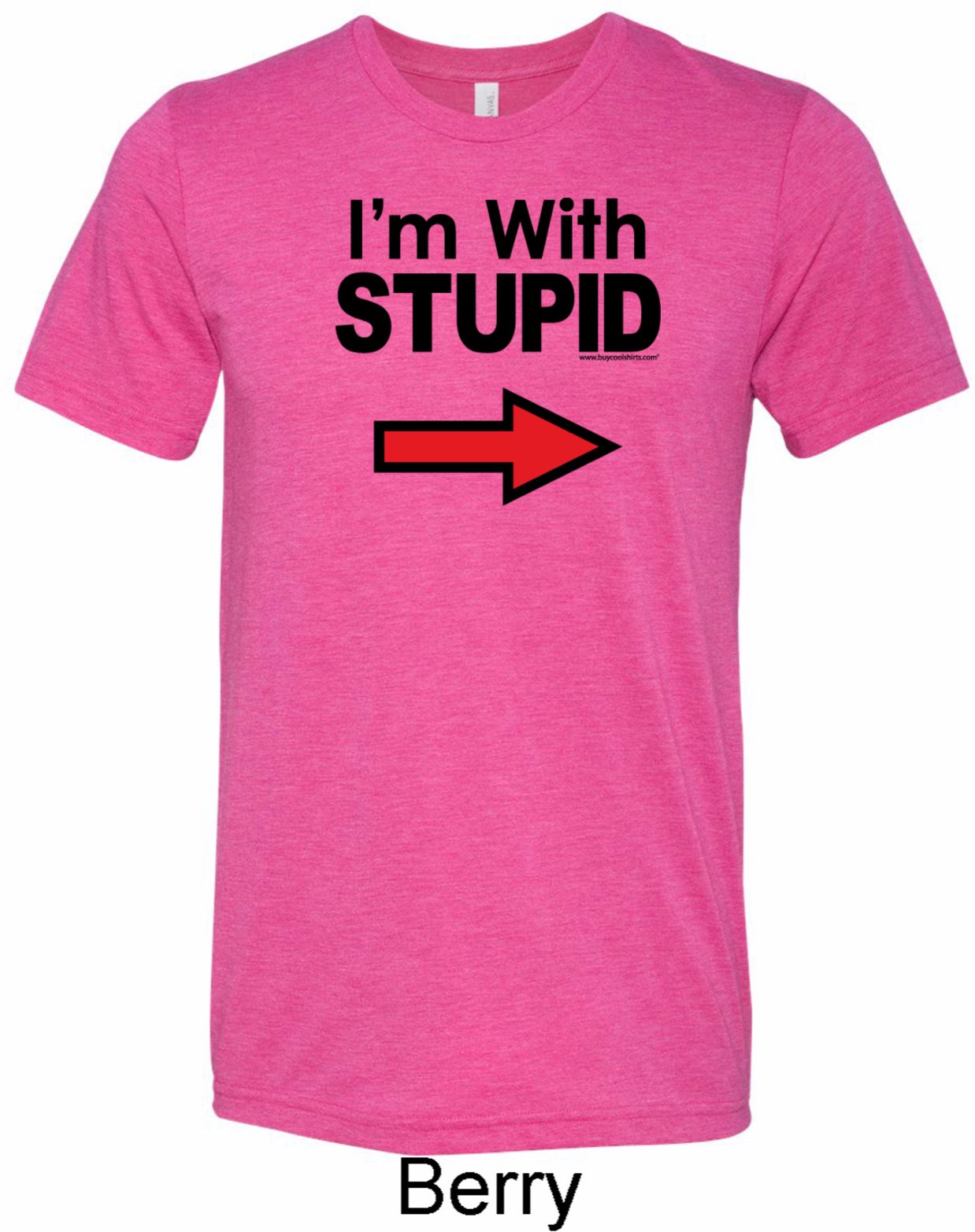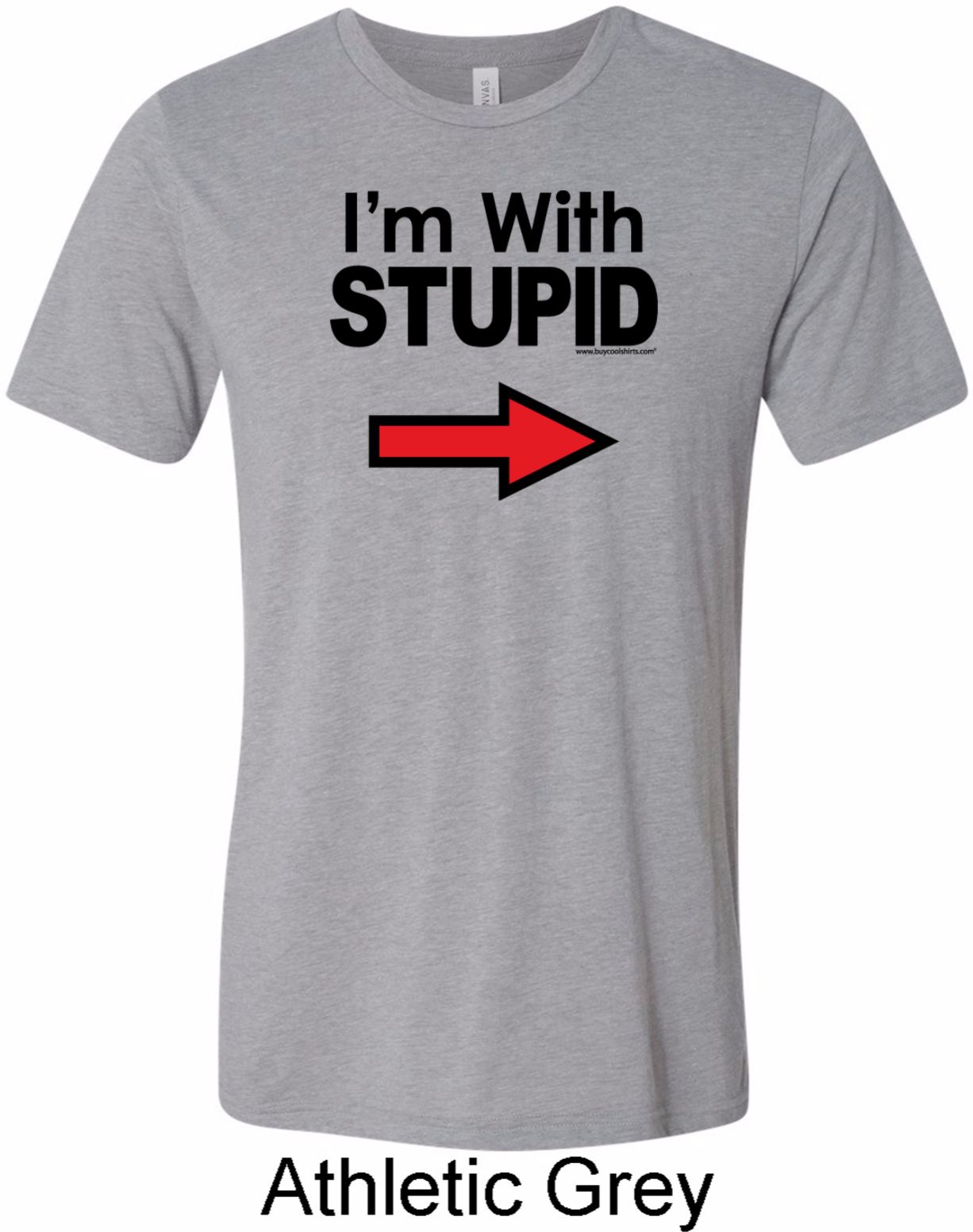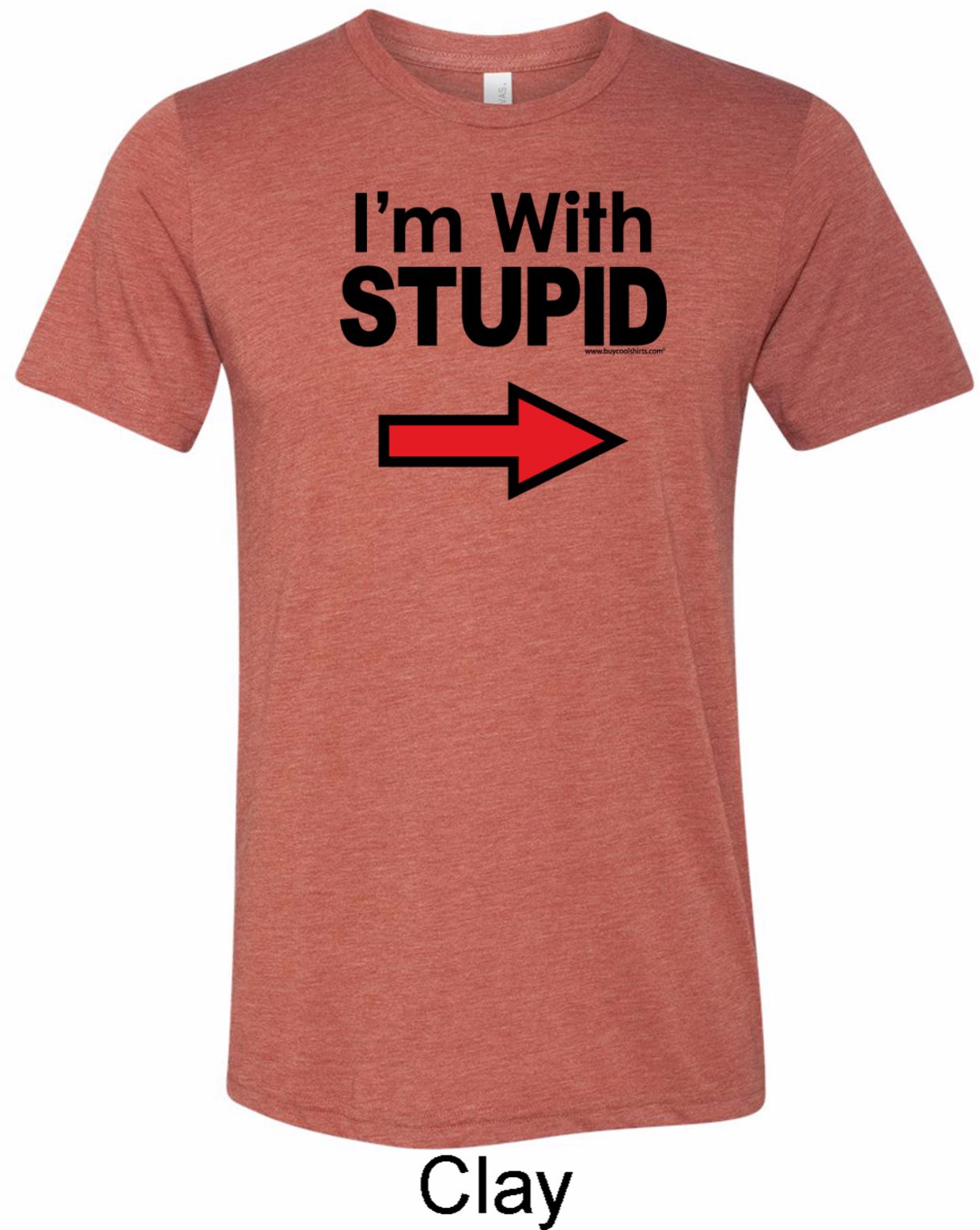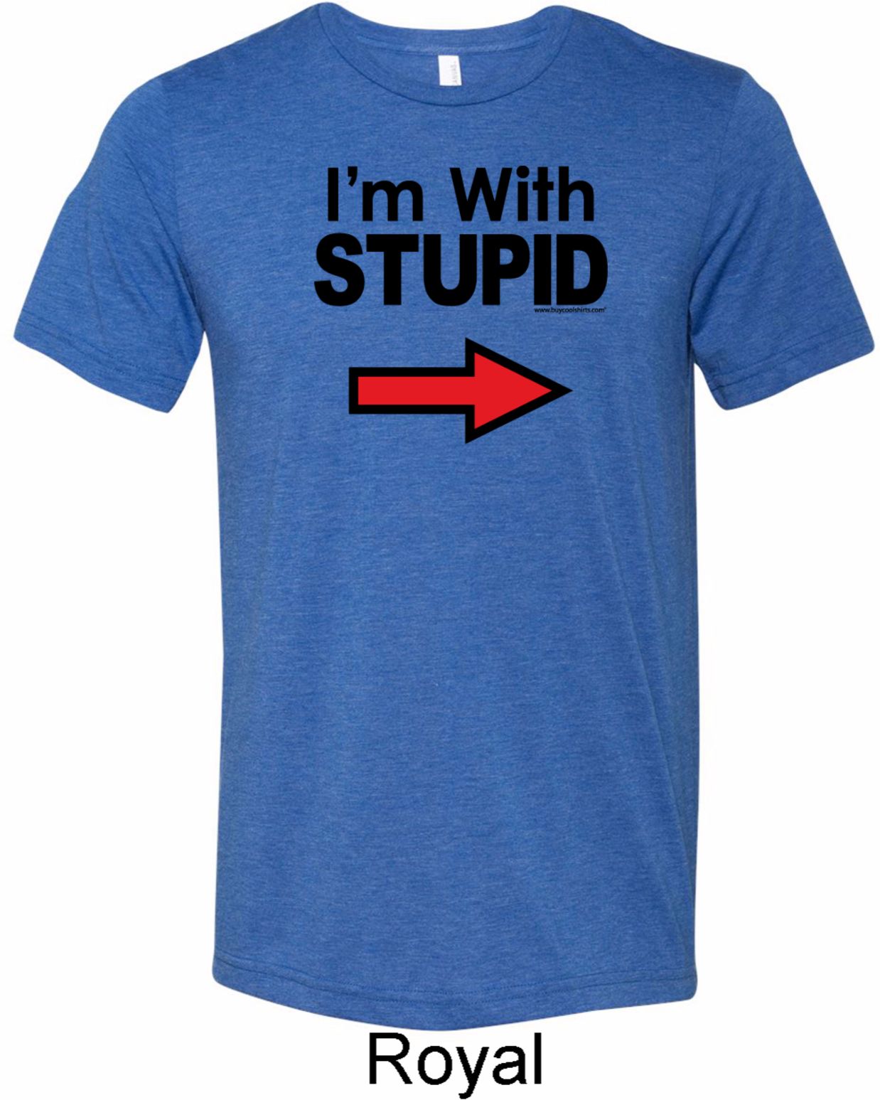 | | I'm With Stupid Black Print Mens Tri Blend Crewneck ShirtI'm With Stupid Black Print Mens Tri Blend Crewneck Shirt A funny shirt to wear with friends or family A cotton/poly/rayon blend Available in Small, Medium, Large, XL & 2XL Also available in colors Aqua, Athletic Grey, Berry, Blue, Clay, Green, Grey, Oatmeal, Orange, Red, Teal, Royal, and White Fleck |