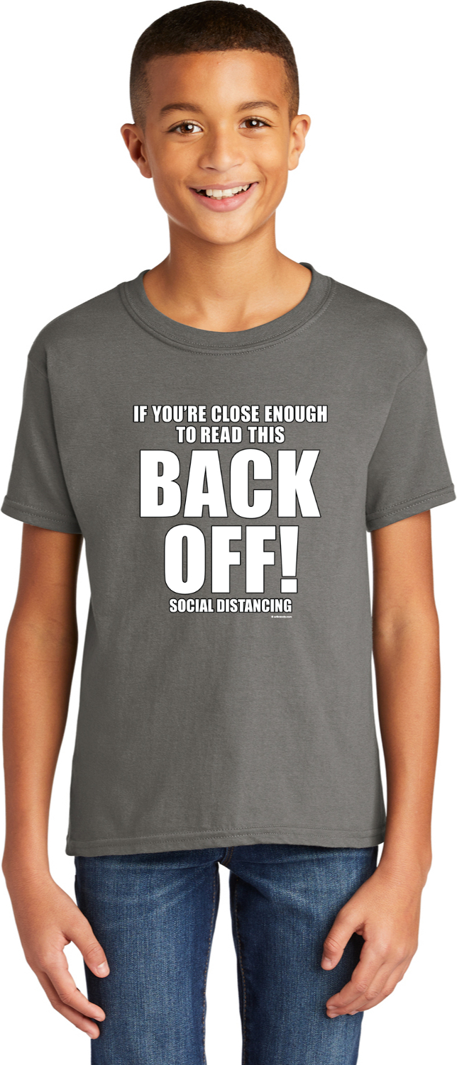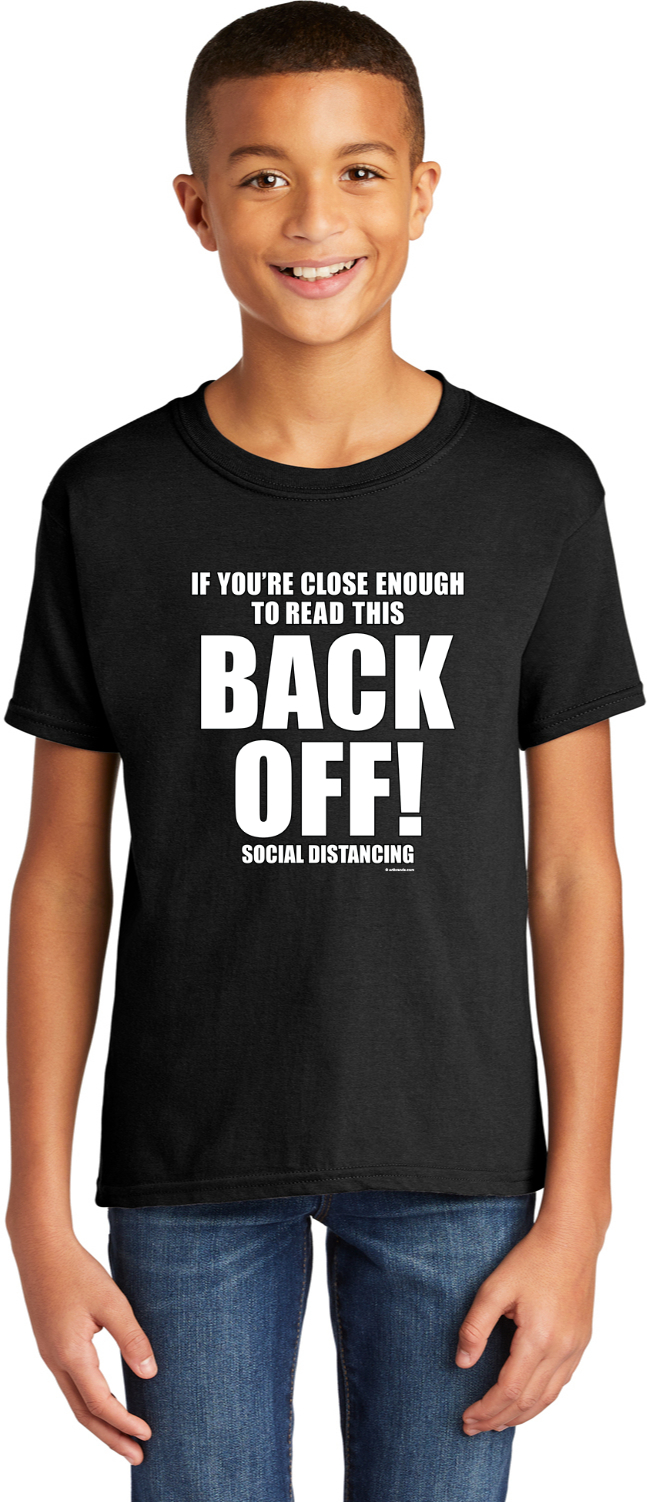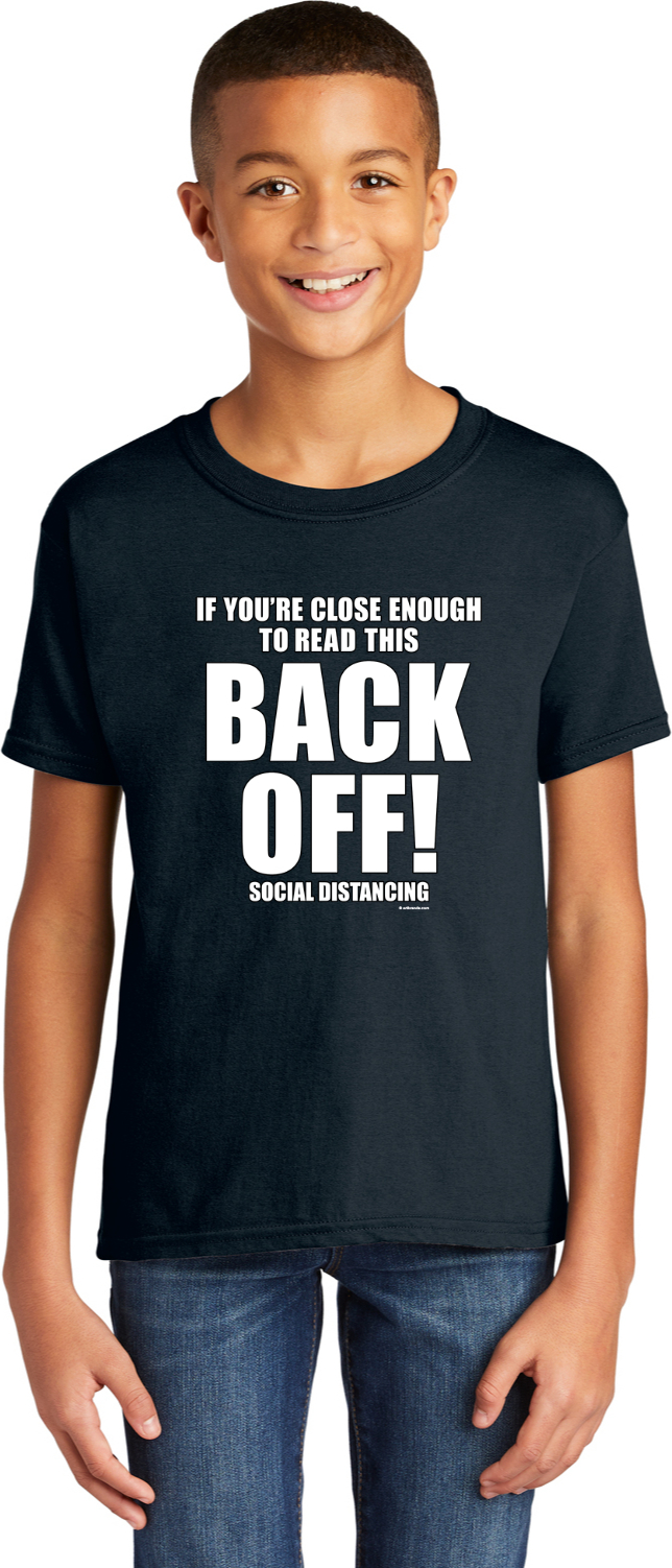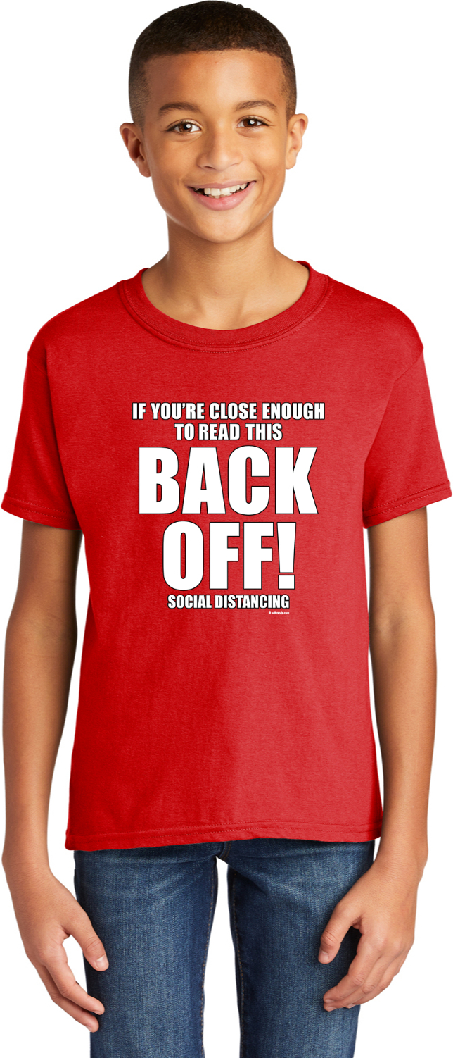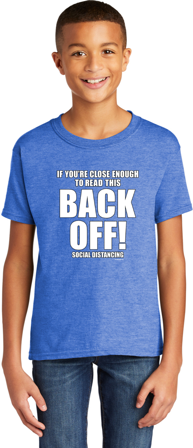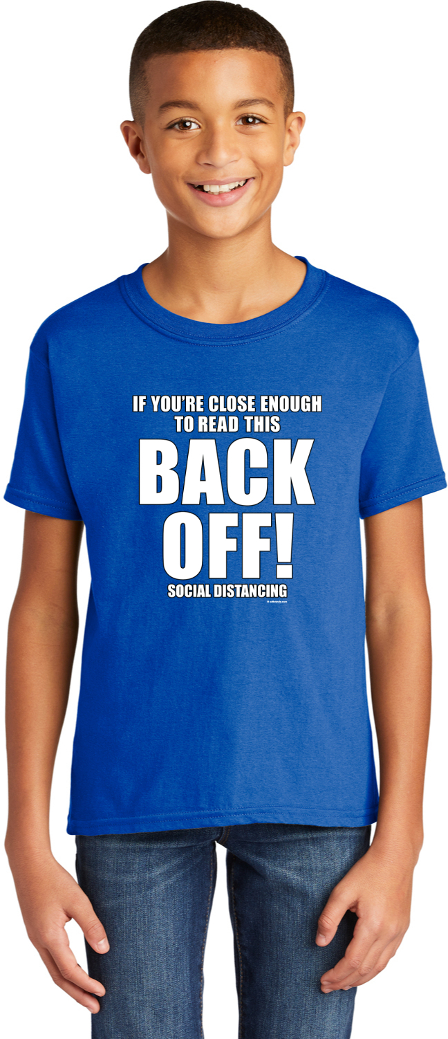 | | If You're Close Enough To Read This Back Off Kid's Soft Style T-ShirtIf You're Close Enough To Read This Back Off Kid's Soft Style T-Shirt If You're Close Enough To Read This Back Off. Social Distancing A 100% combed and ring spun cotton Heather colors are made of a cotton/poly blend Available in Small (6/8), Medium (10/12), Large (14/16), & XL (18-20) Also available in colors Black, Charcoal, Graphite Heather, Heather Royal, Navy, Red, and Royal |
