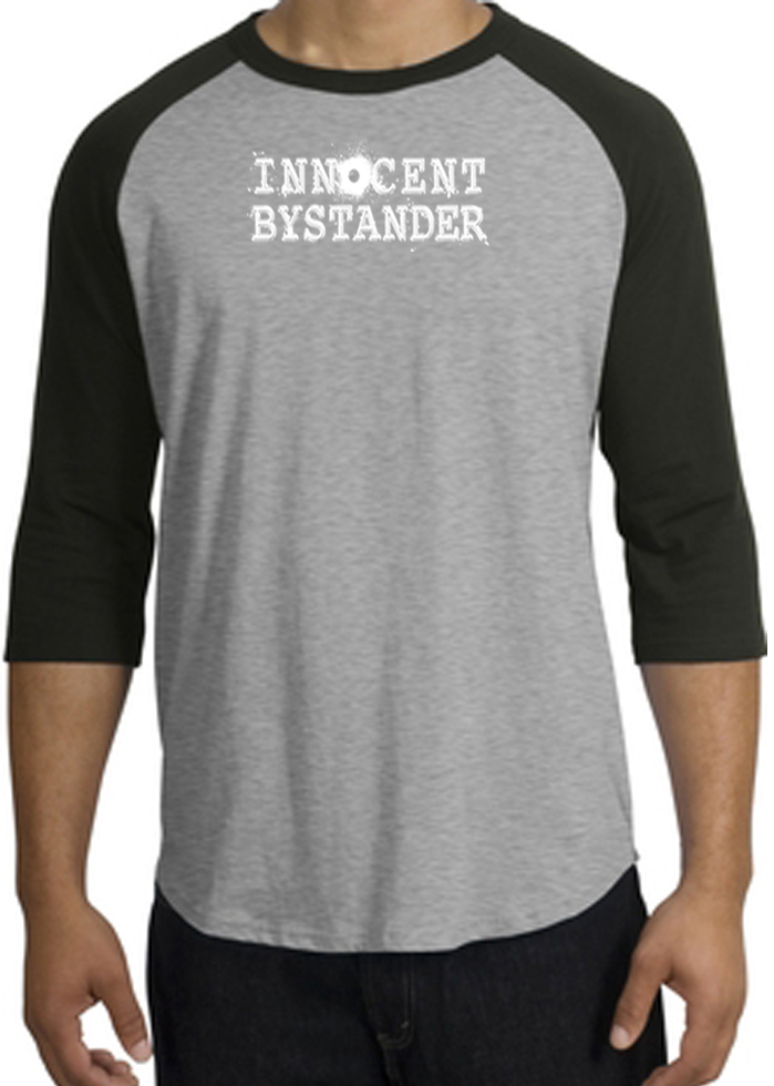 INNOCENT BYSTANDER BLACK Funny Adult Raglan T-shirt - White/Black